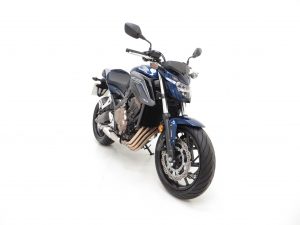 Steel diamond frame with twin elliptical spars, ABS, Honda Ignition Security System, fuel injection, electric start, engine kill switch, EURO 4 Compliant, side swept 4-1 exhaust, LED rear light, cast aluminium wheels, lockable seat with toolkit stowage, pillion seat, lockable fuel filler, neutral indicator, multi-function LCD instruments with rev counter and fuel gauge, digital readouts for speed, odometer, trip, clock and MPG. Dealer accessories; Datatag anti-theft security, pillion seat cover.