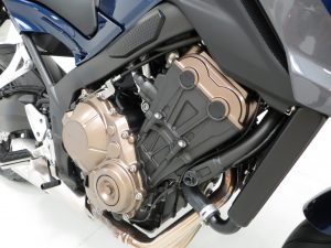 A liquid cooled 649cc 4-cylinder 4-stroke DOHC engine produces 89.8hp and 64Nm maximum torque. Weighing just 208kg, this commanding machine achieves 0-60mph in 3.7 seconds and a top speed of around 130mph with smooth performance delivery and an awesome exhaust note. The engine and all ancillaries are immaculate and exactly as the it left the factory. The stacked 6-speed synchromesh gearbox with short gear ratios will ‘Fire you off the line and howl through the mid-range’ in the words of the Honda marketing department. This is a very capable machine.
