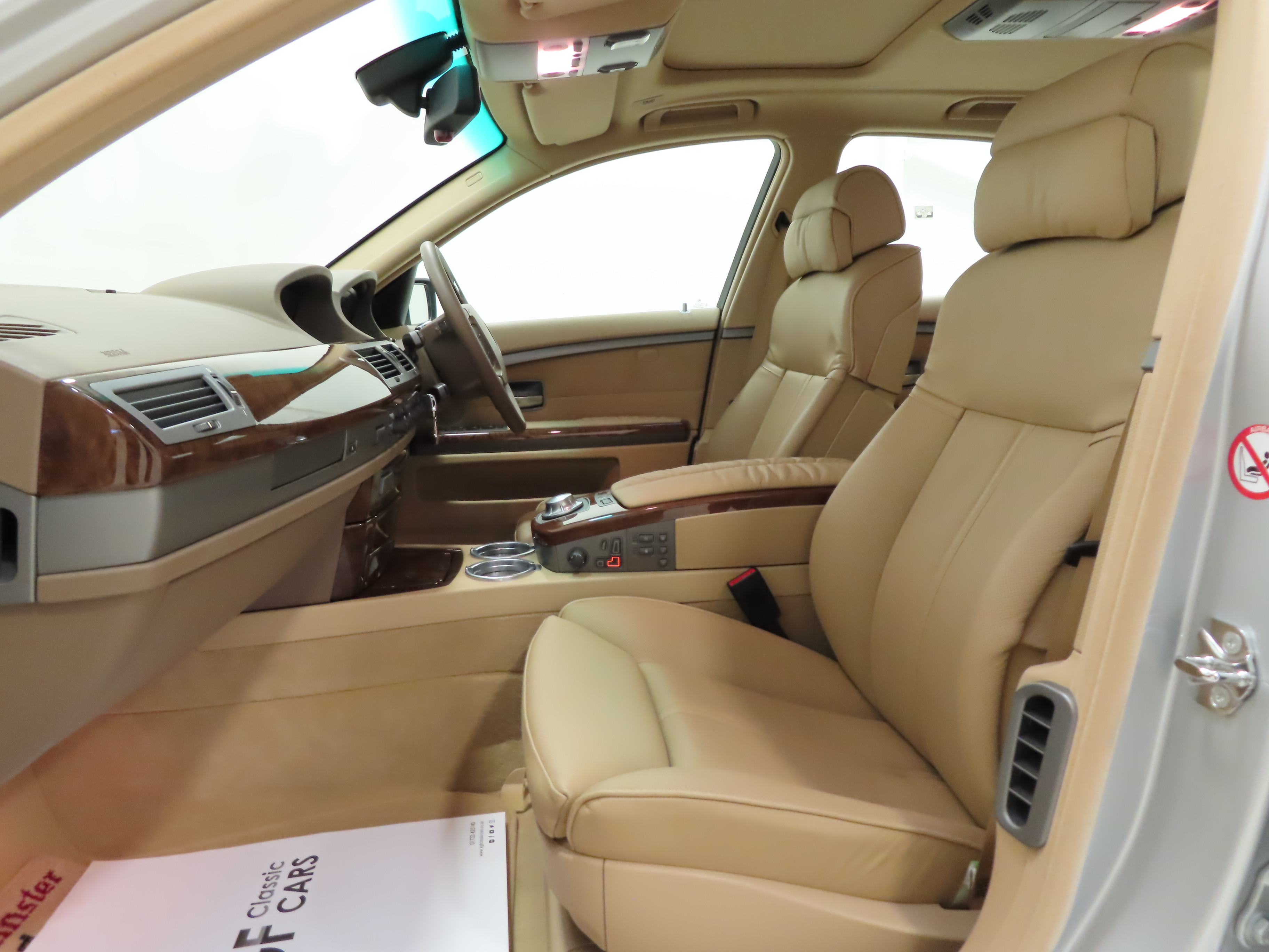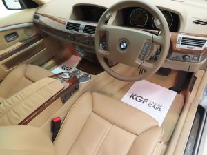 This top specification example was ordered with £9,287 worth of optional equipment, the one lady owner wanted her 7-Series just right! Trimmed in luxurious Beige Nasca Leather, (Code U6BA), the interior is justifiably described as pristine and commensurate with the ultra-low mileage. Exceptionally sumptuous, the factory optional upgrades to the seats alone cost £2,450 when new and include the highly desirable Comfort Seat option. Furthermore, the beautifully made interior trim and light-grain ash wood cappings, (Code 437), are as new along with the perfect headlining and carpets. All equipment, except the 6-disc, functions and displays operate precisely as they should including the iconic iDrive system. The glovebox torch is working and the full toolkit and first aid kit in the boot holder are present. A deep pile Axminster of Devon town crest carpet mat lies in the passenger foot well. Absolutely flawless in every respect.