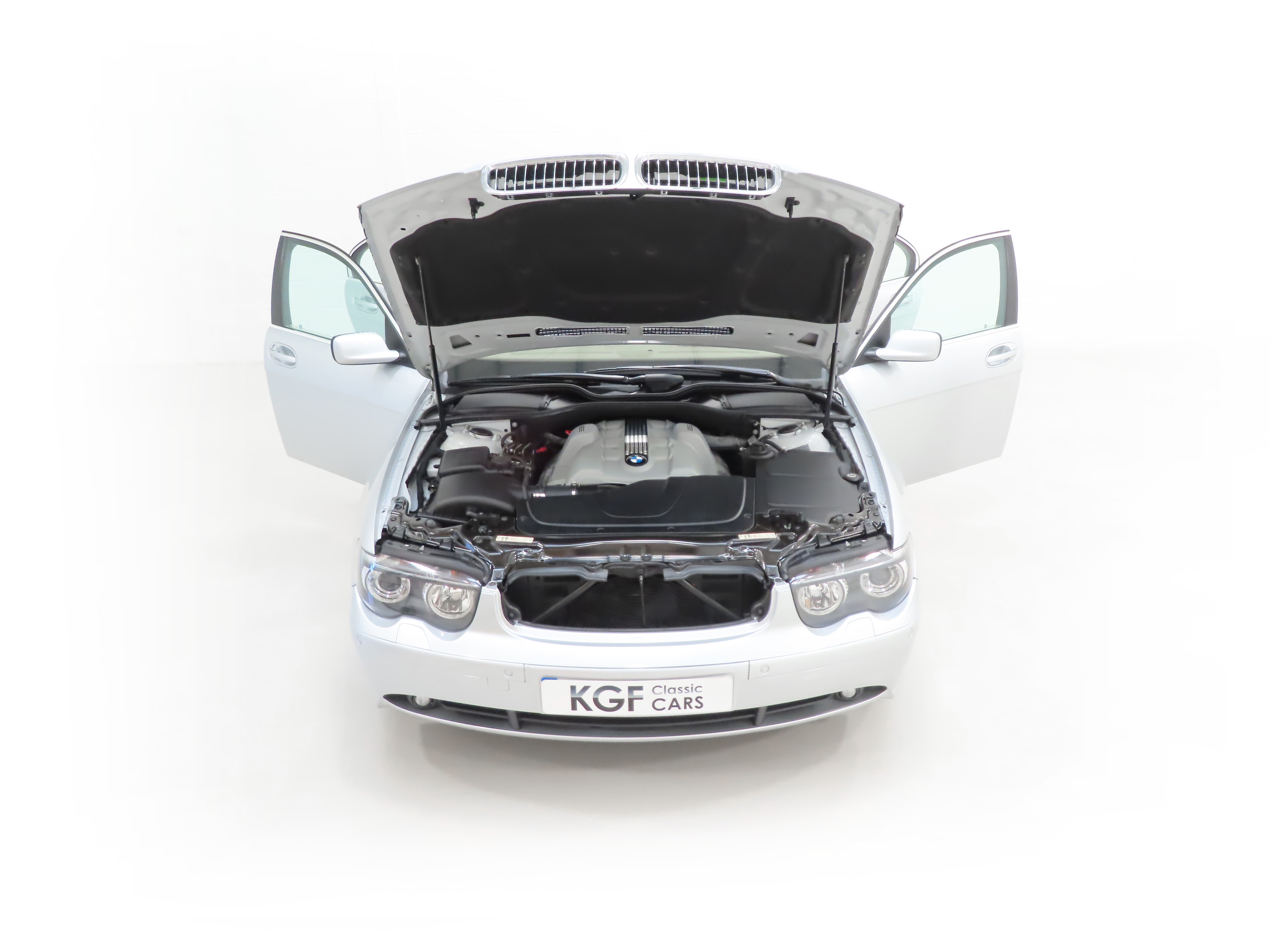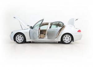 Supplied new on 23rd May 2002 by Westerly BMW of Exeter, this exceptional example has had one owner from new and covered just 8,366 miles with full service history from the supplying BMW main dealer. The new vehicle sales invoice breaks down the eye-watering purchase price of £65,587 which included £9,287 worth of factory and dealer options! Clearly huge BMW aficionados, the car was purchased to sit along side the owners BMW X5 and a 1997 E38 740i with 17,000 miles was taken in part exchange. This stunning 745i has remained in the owners care for over 20 years and lived in a heated triple garage next to the indoor swimming pool at their mansion. The full BMW service history speaks for itself with 16 documented visits to Westerly BMW for servicing and maintenance. Furthermore, the car has only ever been taken to Westerly BMW for MOT and the most recent service carried out by them was in October 2022 at 8,064 miles. All paperwork, service invoices and previous MOT certificates dating back to the first in 2005 is neatly filed chronologically and the owner has even kept all welcome letters from BMW along with every single tax disc from the first to last. The original BMW leather wallet holds all handbooks, dealership literature and stamped service book and both smart keys are present with 7-series accessory key rings. Completing the history file is the original 7-Series brochure and specification booklet. With one owner, 8,366 miles and full supplying BMW main dealer service history, it is difficult to comprehend finding a more superior example. Exemplary in every respect.