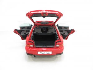 The unique styling of the first generation Impreza in roadgoing form bears all the resemblance to the ultimate superpower in 1990’s rallying. This incredible 2.0 Sport AWD has covered just 16,983 miles from new with two family owners. Finished in factory original Bright Red, (Code 559), the uniform paint finish is simply stunning. All factory panels are pin straight with uniform gaps and only a touched in mark to the front bumper. All trim sections, glass, lights and badges are superb and the huge round fog lamps and the all-wheel drive system are a direct descendant from the Subaru’s rallying heritage. This preserved road-going example is simply remarkable.