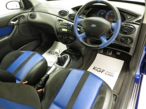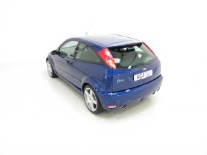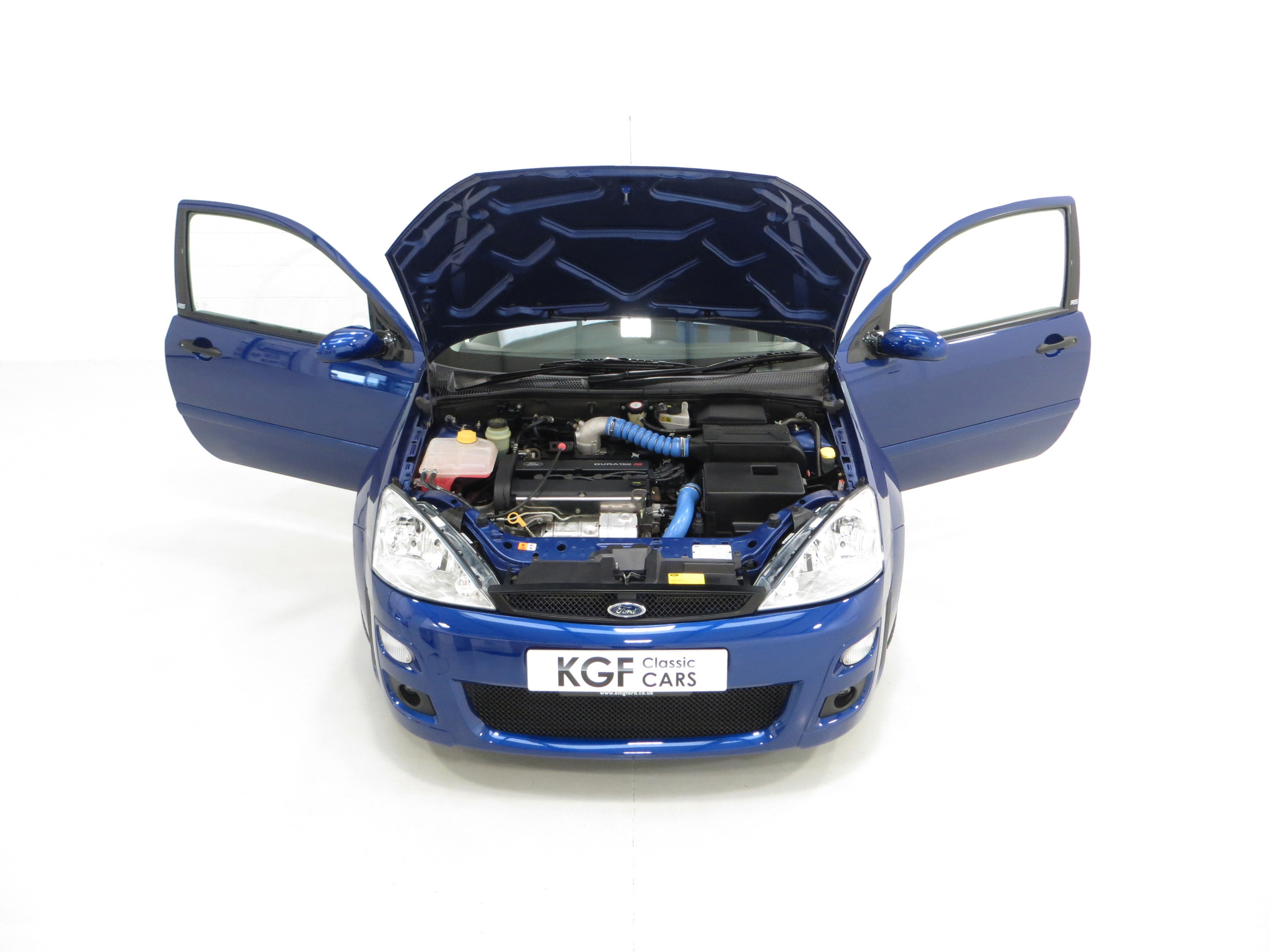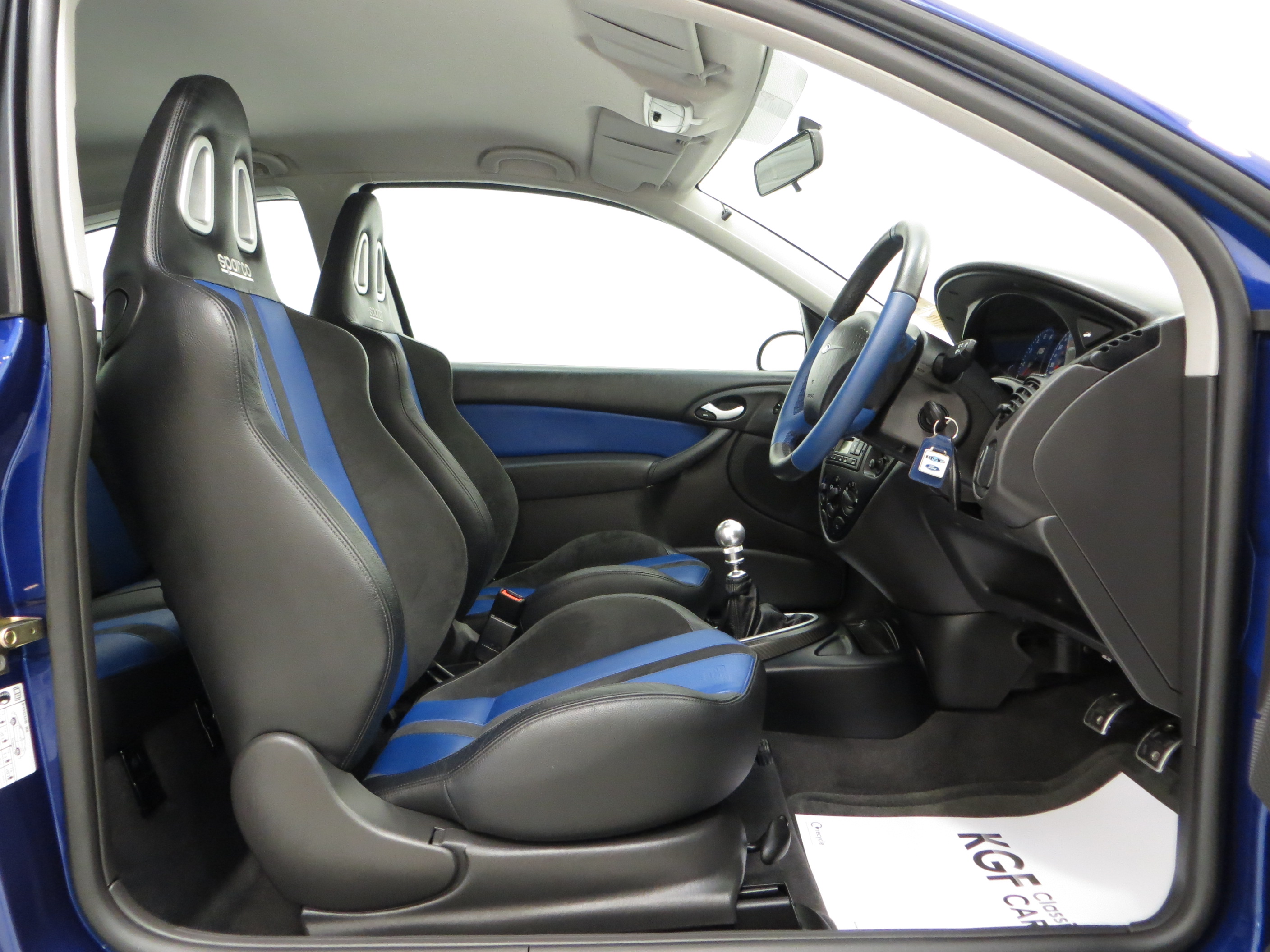 This ultimate road-going Focus model is finished in Imperial Blue Metallic, (Code Q2), the only available colour. The electrifying deep blue finish is simply astonishing and despite the soft paint finish associated with this model, a perfectionist will struggle to fault. There is a miniscule mark to the rear bumper and a couple of tiny chips to the inner wheel arches. All the glass, plastics and light clusters are preserved and originality seekers will be pleased to see supplying dealer number plates and tax disc holder as well as factory stickers in the door apertures. The underside is fabulously clean thanks to the ultra-low miles covered and indoor storage and displays all factory markings and part component labels still visible. Owned by the same Ford fanatic enthusiast since it was just one month old, this perfect example will delight the next Blue Oval fan.