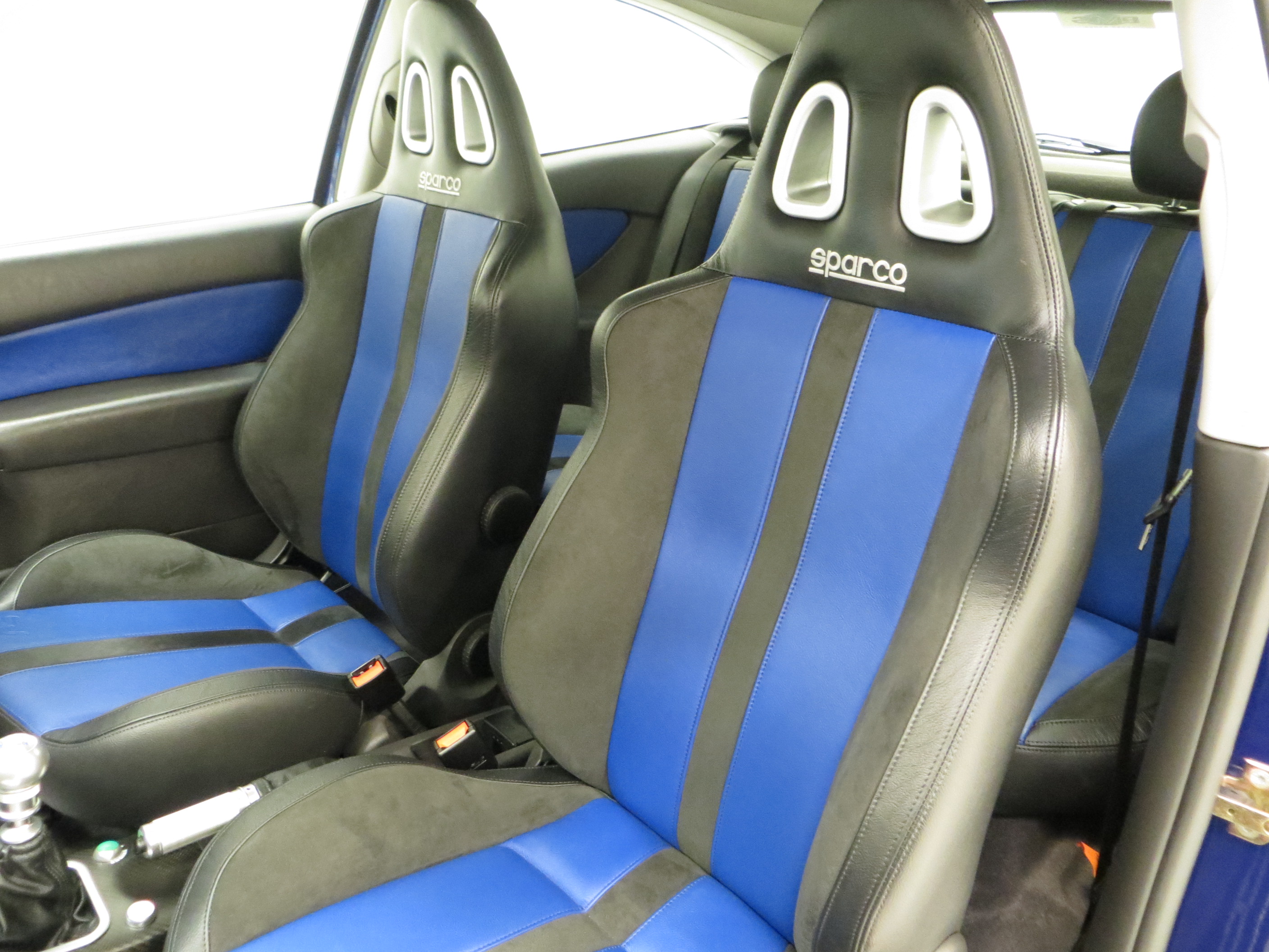 Computer optimised unitary welded steel body, rigid occupant safety cell, energy absorbing crumple zones, wider front and rear pressed steel wings, auxiliary air intakes, aerodynamic splitter and rear wing, mounted side sills, modified lower rear apron, driver and front passenger airbags, air conditioning, leather sports steering wheel with blue inserts, carbon fibre centre console with start button, limited edition number plaque, Sparco aluminium handbrake, gear knob and pedals, boost gauge and ‘change up light’, bright metal tread plates with RS script, stereo radio/6CD model 6006E, Thatcham CAT 1 alarm. Dealer options; RS floor mats.