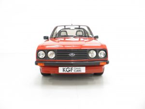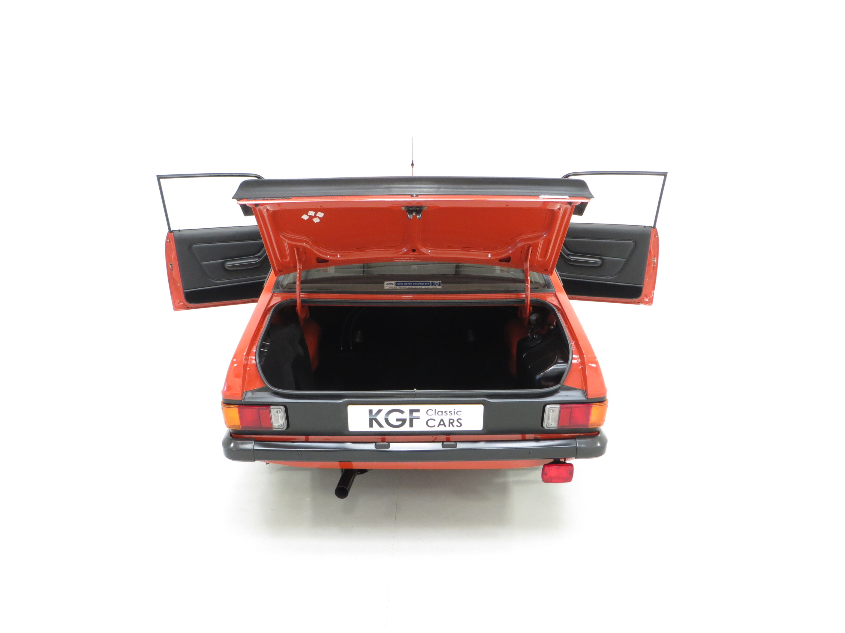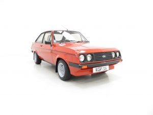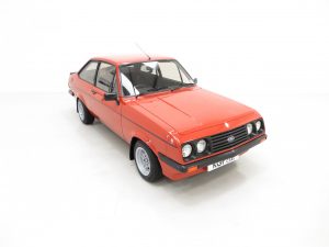 Finished in the factory correct and rare Terracotta, (Code D), this standard looking RS2000 is a wolf in sheep’s clothing and presents in immaculate original condition thanks to fastidious care and attention to detail. The paintwork has an immense shine and glossy coat with wheel arch apertures and the underside spotlessly clean and colour coded. Genuine parts can be seen throughout from the matching set of four Cibie 60/55W quartz-halogen headlamps and Altissimo rear light clusters. All trim, bumpers, decals and bronze tint glass are perfect. Be prepared to be amazed not just with the show winning appearance but with the exhilarating power too.