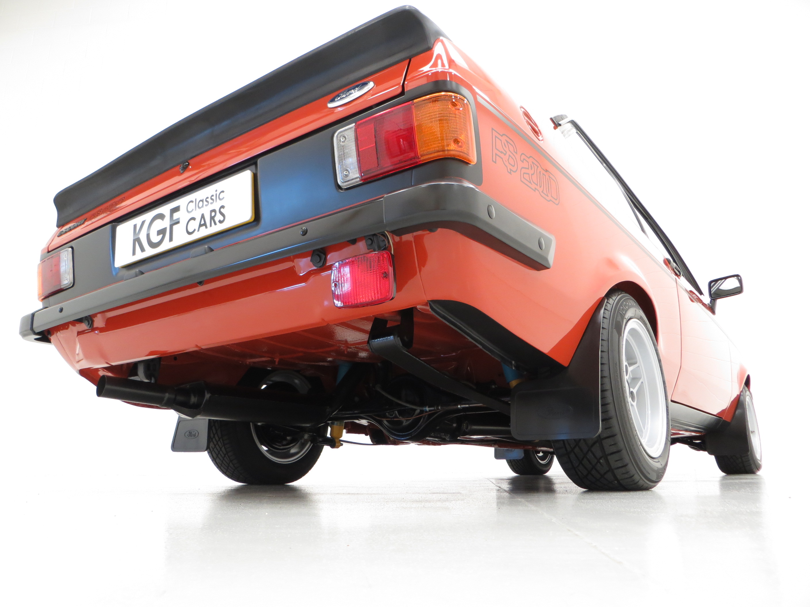 Polyurethane front end incorporating four Cibie quartz halogen headlamps, front air dam, rubberised tail spoiler, twin bodyside coachline, RS2000 decals, black door mirrors, laminated windscreen, hazard warning flashers, heated rear window, separate fuel, water temperature and oil pressure gauges, padded sun visors, two-speed heater, aeroflow ventilation with eye ball vents. RS Custom features; Recaro front seats with fishnet headrests, centre console, glovebox, quartz clock, remote control drivers door mirror, bronze tinted glass, full trimmed door cards, Custom badge, cut pile carpeting, vanity mirror, alloy road wheels. Brief Specification; 2.1 Pinto Warrior twin-cam 16-valve head with 205 Cosworth Block, forged 92mm pistons, billet steel crankshaft, forged steel conrods, DA10 cams, Weber-Alpha 45mm Throttle Bodies, Emerald K6 Pre-configured ECU, RS2000 alloy sump, Flowtech stainless steel exhaust manifold, Type-9 Quaife heavy duty gearbox, semi-helical gears, rose jointed quick shift, AP Racing uprated clutch, English Axle with Quaife LSD and two-piece half shafts, Bilstein coil-overs and dampers, anti-dive kit, Wilwood Superlite 4-pot calipers.