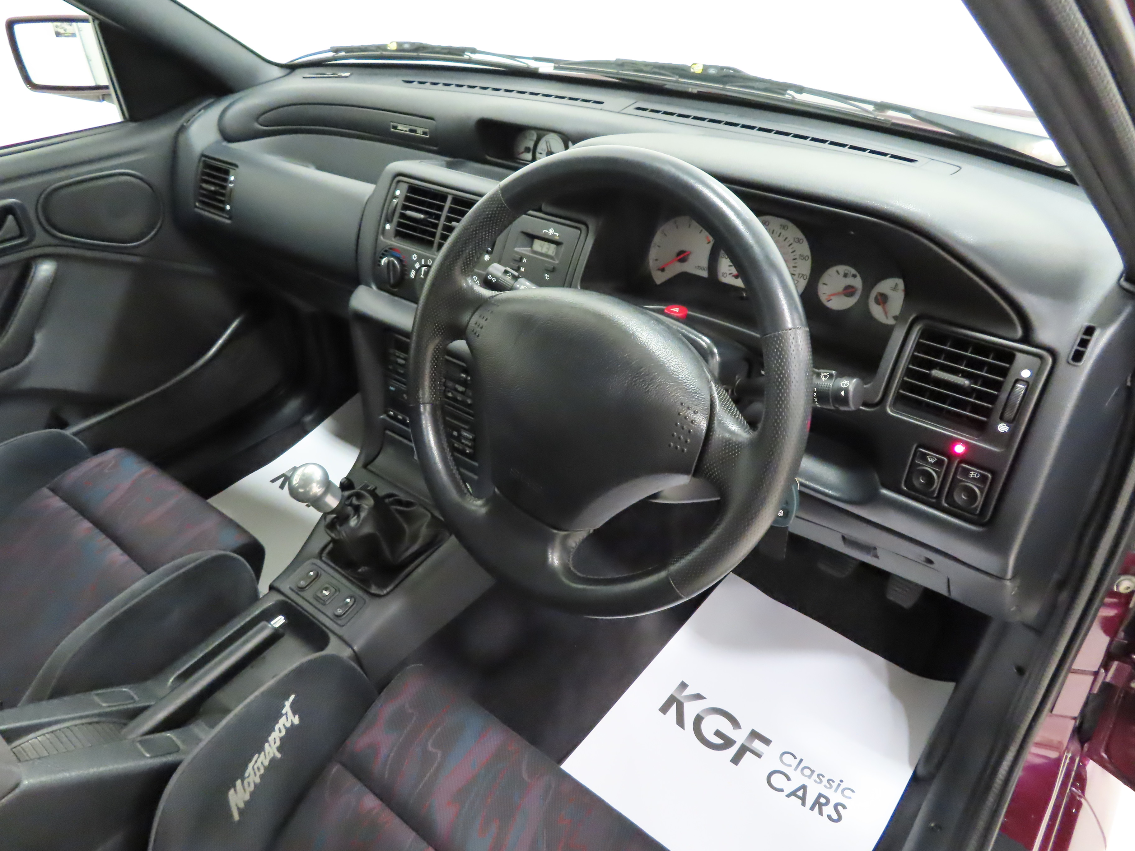 Built by Karmann alongside the regular Escort Cosworth, the Monte Carlo was named in tribute to Francois Delecours’s victory on the 1994 Monte Carlo rally. Available from February 1994 in a numbered limited run of just 200 examples. The Monte Carlo was offered with or without the Aero Pack and in a choice of three colours: Mallard Green, Ash Black or Jewel Violet. A mere 73 RHD Monte Carlos were made for the British market of which just 12 are in Jewel Violet. (Source: Factory-Original Ford RS Cosworths by Dan Williamson and the RS Owners Club).