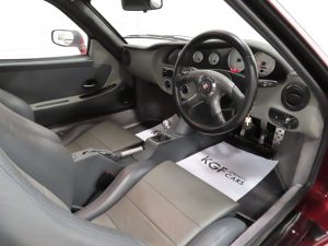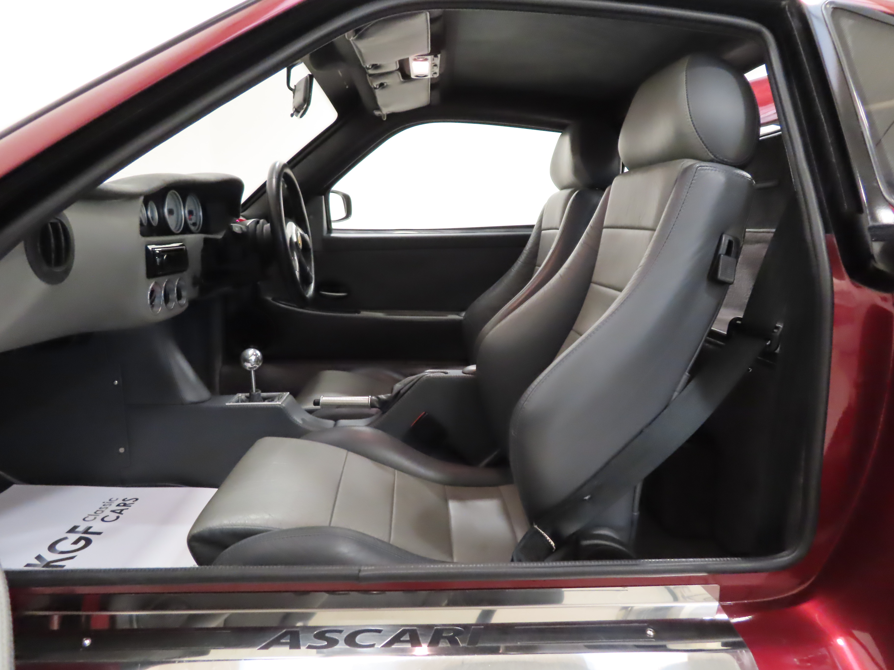 The design and ingenuity from the pen of a prolific designer Lee Noble, the Ascari Ecosse was a pioneering 200mph supercar. The beautiful composite body finished in cost optional Burgundy Red metallic sits atop a steel-tube spaceframe weighing just 1250kg. The slippery lines flow from nose to the tail with necessary scoops and a purposeful wing creating downforce at the rear and just 0.31Cd. A few minor stone chips to the front do not detract from the factory original colour. This is a hand built rare UK supercar that was hailed as a cut-price McLaren when new, allure and exclusivity is guaranteed!