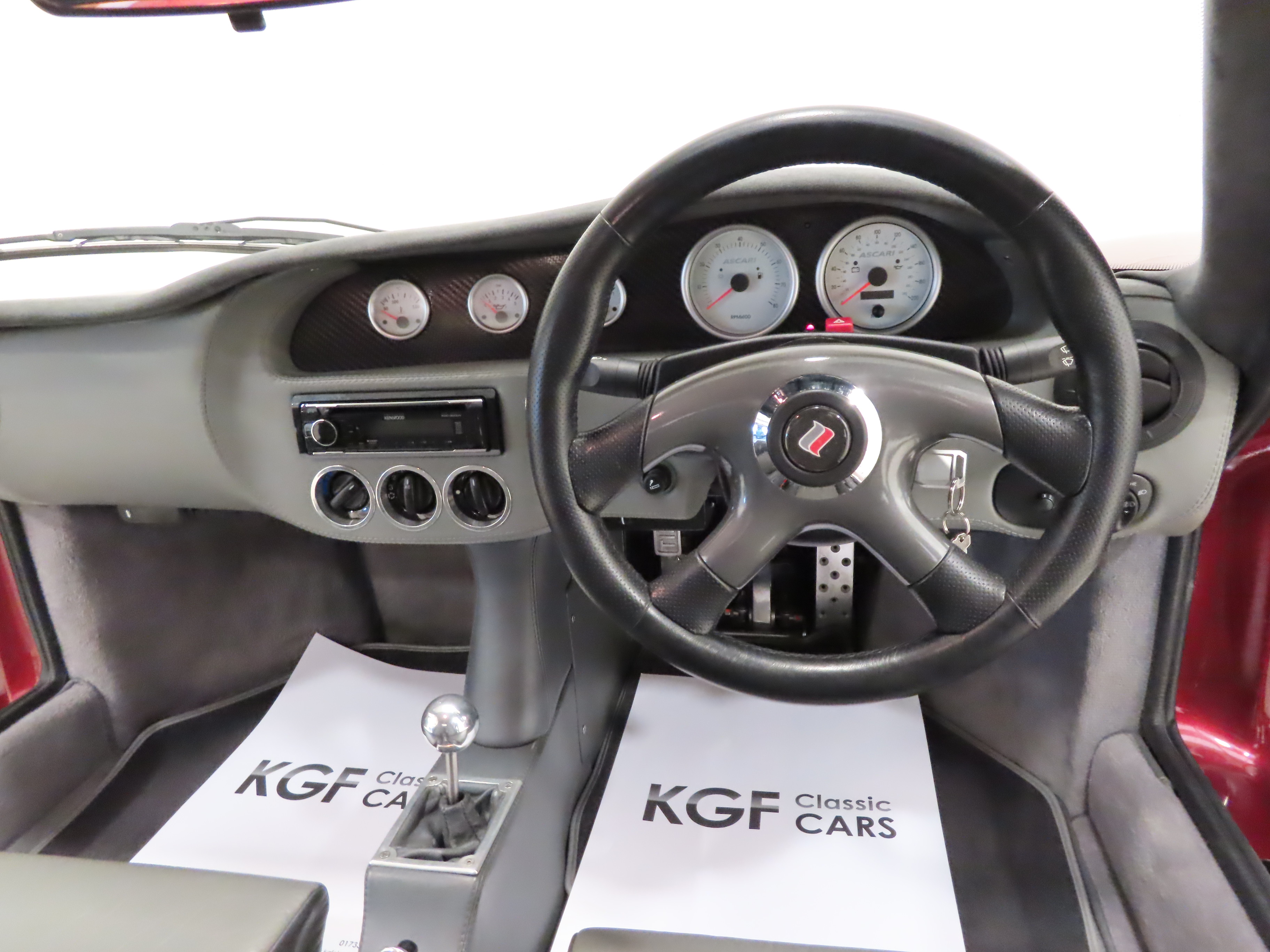 Ultra lightweight composite body, steel-tune spaceframe chassis, double unequal length tubular wishbones, anti-roll bars, front and rear co-axial spring/damper units, variable power steering, alloy spherical shift-knob, alloy handbrake lever, floor mounted Tilton racing pedalbox, height and reach adjustable steering wheel, air conditioning, electric windows, electric mirrors, 12v power outlet, hazard lights, fire extinguisher, Kenwood radio/CD, 6-disc changer, remote central locking, Thatcham Cat1 immobiliser and alarm, NavTrak system. Factory Options; Multi-spoke two piece alloy wheels, multi-coloured leather.