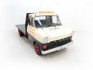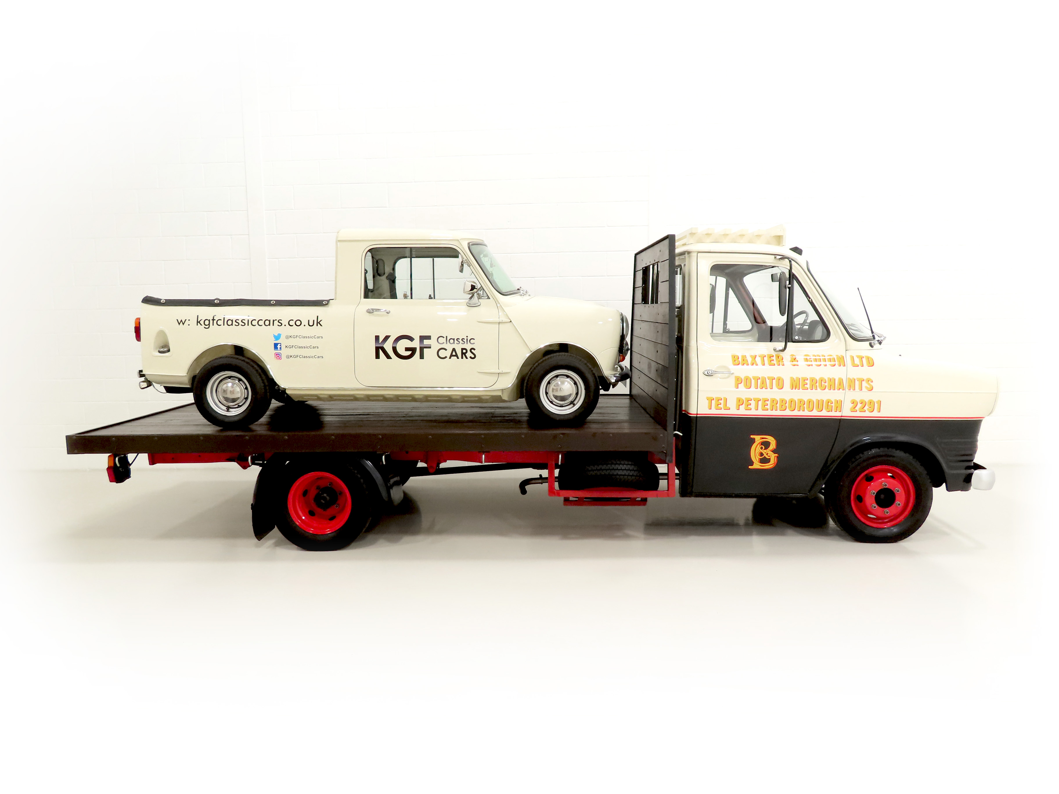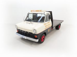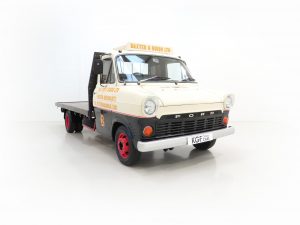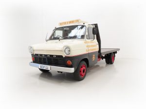 The Mk1 Ford Transit certainly needs no introduction having earned the accolade of ‘The Backbone of Britain’ and gaining iconic status since its launch in 1965. This example is a homage to what was one of the largest Potato merchants in the country, Baxter & Guion Ltd of Peterborough. The firm ran mostly Foden lorries which were painted in the distinguishing cream over black with gold and red lettering. They also ran a Mk1 Transit flatbed to which this example has been built to celebrate by a former employee! The cab is very presentable having had a full historic restoration whereby all structural body work was prepared prior to painting. The result is a structurally superb example requiring no remedial work whatsoever but not cosmetic or factory perfect. The superb bespoke flatbed was made by the previous owner using knowledgeable techniques and the highest quality materials. The Keruing timber wood for example was purposely laid and fixed while wet to ensure that upon drying there would be shrinkage to create a small gap between the boards to allow for re-expansion in poor weather. The vinyl lettering looks superb, as do all trim and light fittings the latter of which although mostly genuine Ford fitment, strict afficionados will note for example that the front repeaters are of the post 1971 type as opposed to half repeater/half side light. Massively nostalgic for those who appreciate years gone by!
