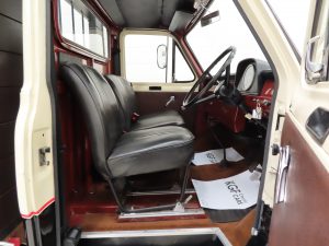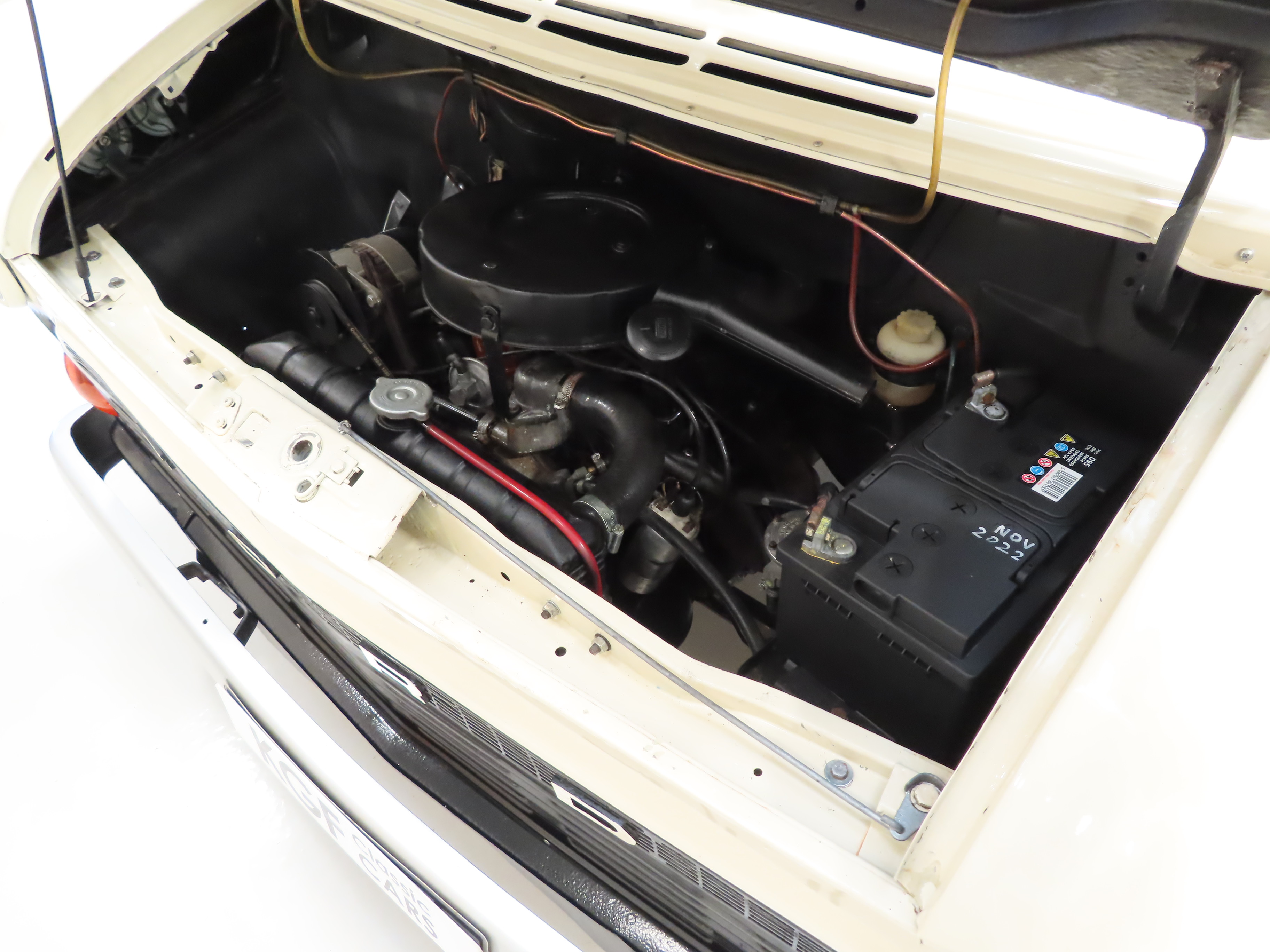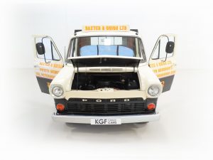 The four-cylinder Essex V4 sits snugly behind the flat front grille, correct for this engine and as opposed to the ‘bull-nose’ extended fronts required for the Perkins/York diesels and Essex V6 petrol variants. This simple and reliable 2.0 unit has been maintained to a good standard to deliver capable if not overly rapid performance. The four-speed manual gearbox operates well requiring familiarisation with the long gear lever a long-lost feature in vans!