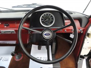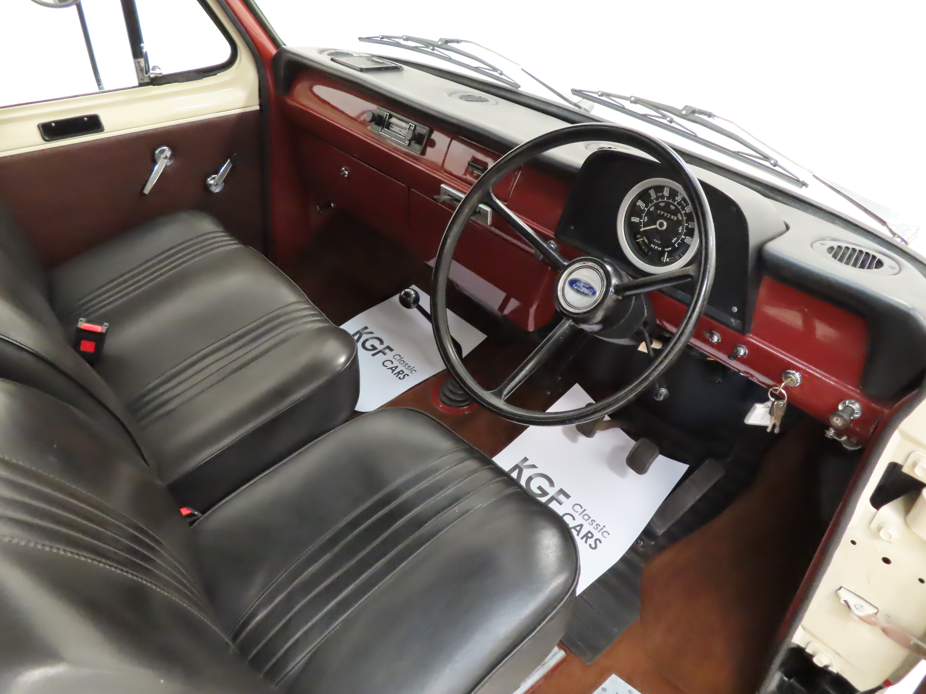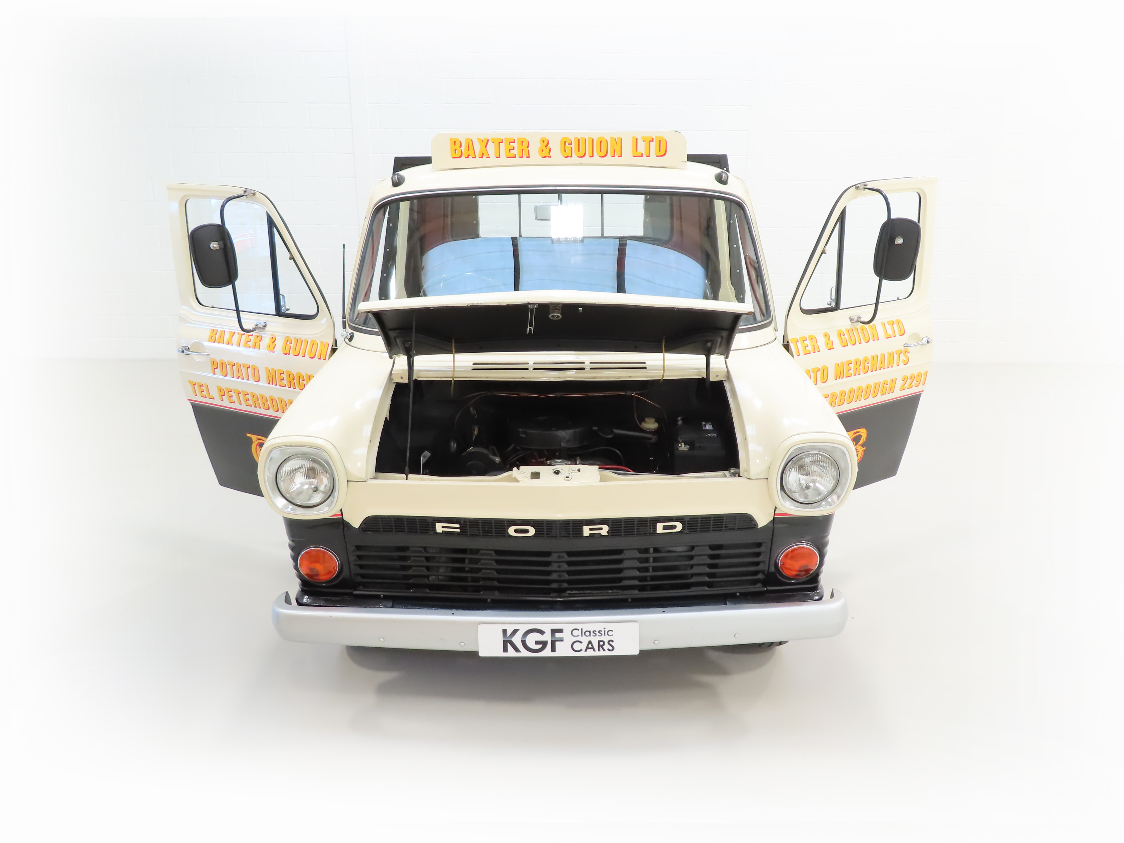 Supplied new on the 1st May 1968, the supplying Ford Main Dealer was Halls of Finchley, North London. Remarkably, the original Halls of Finchley supplying dealer plaque remains fixed to the nearside inner A-pillar! The previous owner, Mr Howard Gosland, purchased the vehicle in 2010 with one aim in mind, to recreate something that he held special to him. This was to be a vehicle that played homage to a long established Peterborough firm that gave him a ‘big-break’ as a young self-employed haulage contractor. Baxter & Guion Ltd were primarily potato merchants and indeed one of the biggest in the country. The firm offered Howard parking facilities as well as sub-contract work and their Black and Cream vehicles were for many years a familiar sight around Peterborough and their city centre-based premises. Now retired but not before a fascinating career which Howard feels was helped kickstarted by Baxter & Guion Ltd, the Transit truck seen here replicates the firm colour scheme and livery. Owned now for twelve years, six of which it took to restore the vehicle, this delightful classic commercial was bound to attract attention and indeed occupied a five-page feature in the September 2018 issue of Classic Van and Pick-up. It was even the main cover feature and thankfully a pristine copy of the magazine is held in the history file. The history file itself holds a vast collection of receipts and invoices pertaining to the build as well as an original operator’s manual. There are detailed accounts of the history of Baxter & Guion Ltd and even email exchanges from Mr A E Baxter’s Great Nephew who himself and his father worked for the firm!