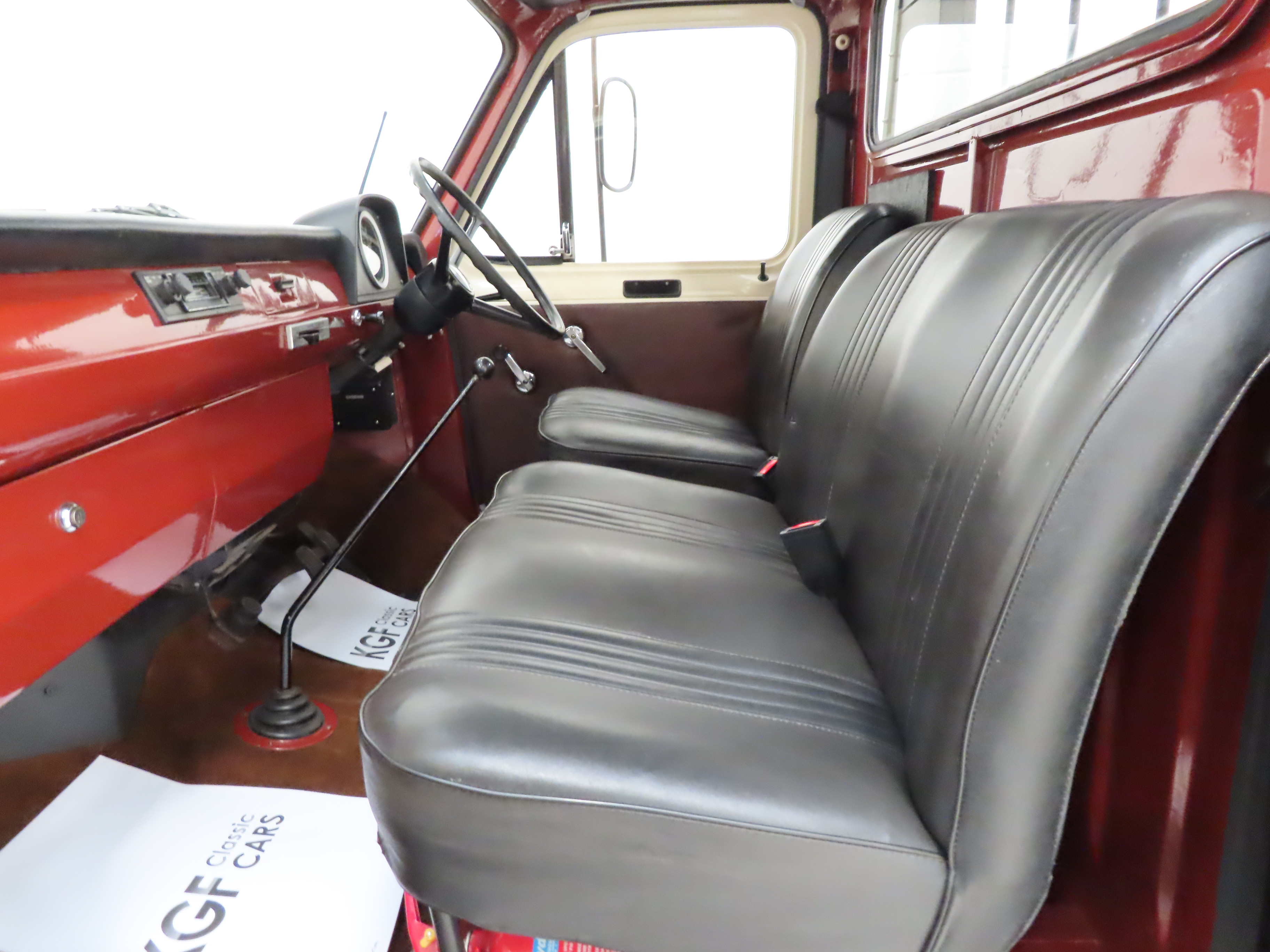 An interior that underlines just what commercial vehicles used to be, a work horse equipped with just what you need and not much else! The clean and functional cab features black vinyl seats in fantastic condition free from rips and a fully fitted carpet. The interior metal work is painted to co-ordinate with the exterior colour scheme. The black headlining is intact and all functions and controls operate including the period aftermarket radio cassette. Custom features and elements such as incorrect style door cards have never concerned the previous owner and the next should appreciate this truck is certainly not standard or perfect in condition, albeit altogether very presentable and a true commercial!