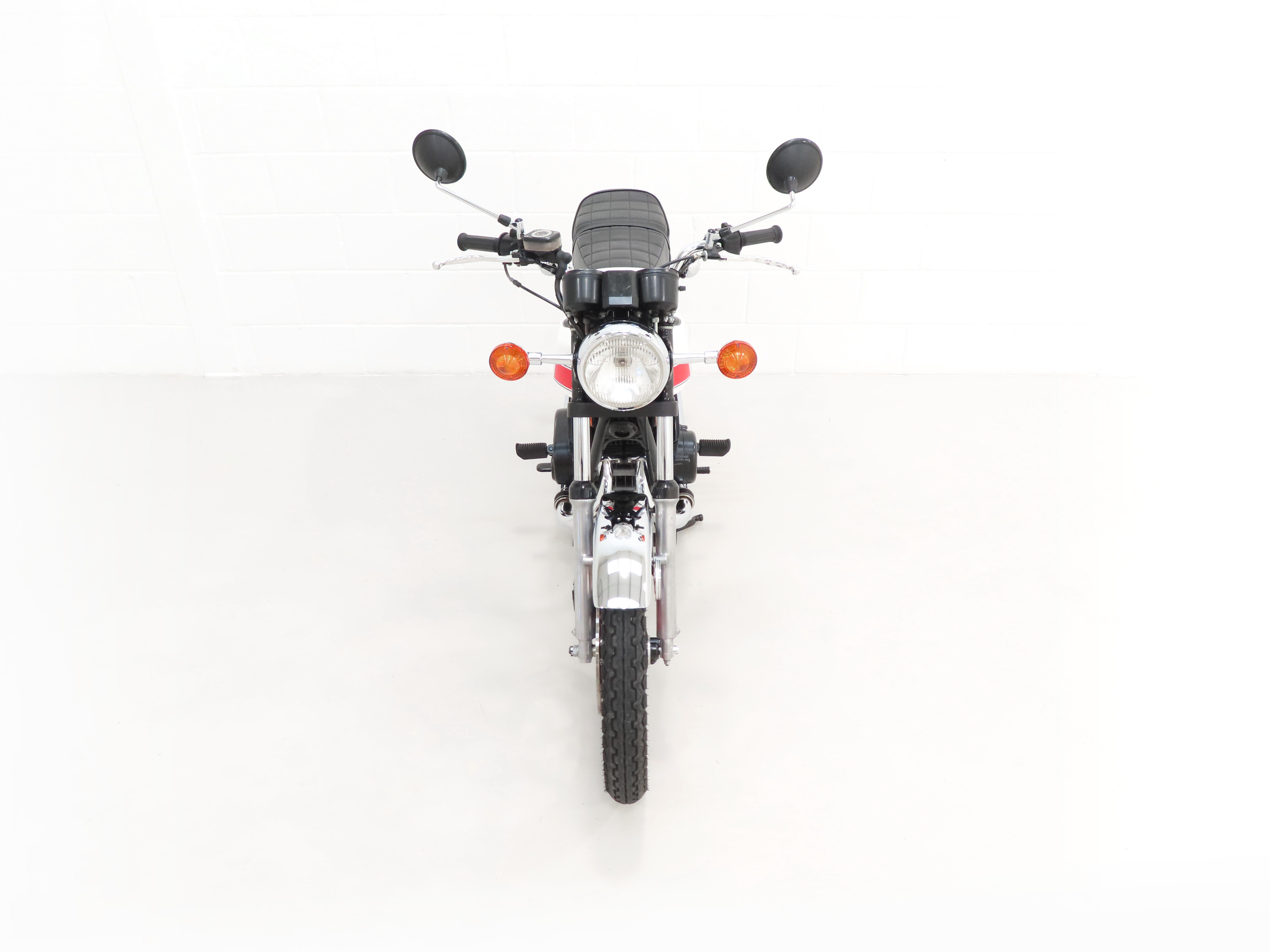 The RD400F is fitted with stylish cast-alloy wheels with red detailing and are presented in fabulous undamaged condition. Matching Dunlop K82 tyres 3.00.18 front and 3.50.18 rear have masses of tread. Hydraulic 267mm disc brakes front and rear with single piston callipers are fitted. The desirable and original brake master cylinder remains fitted all of which help stop this iconic machine effectively and safely.
