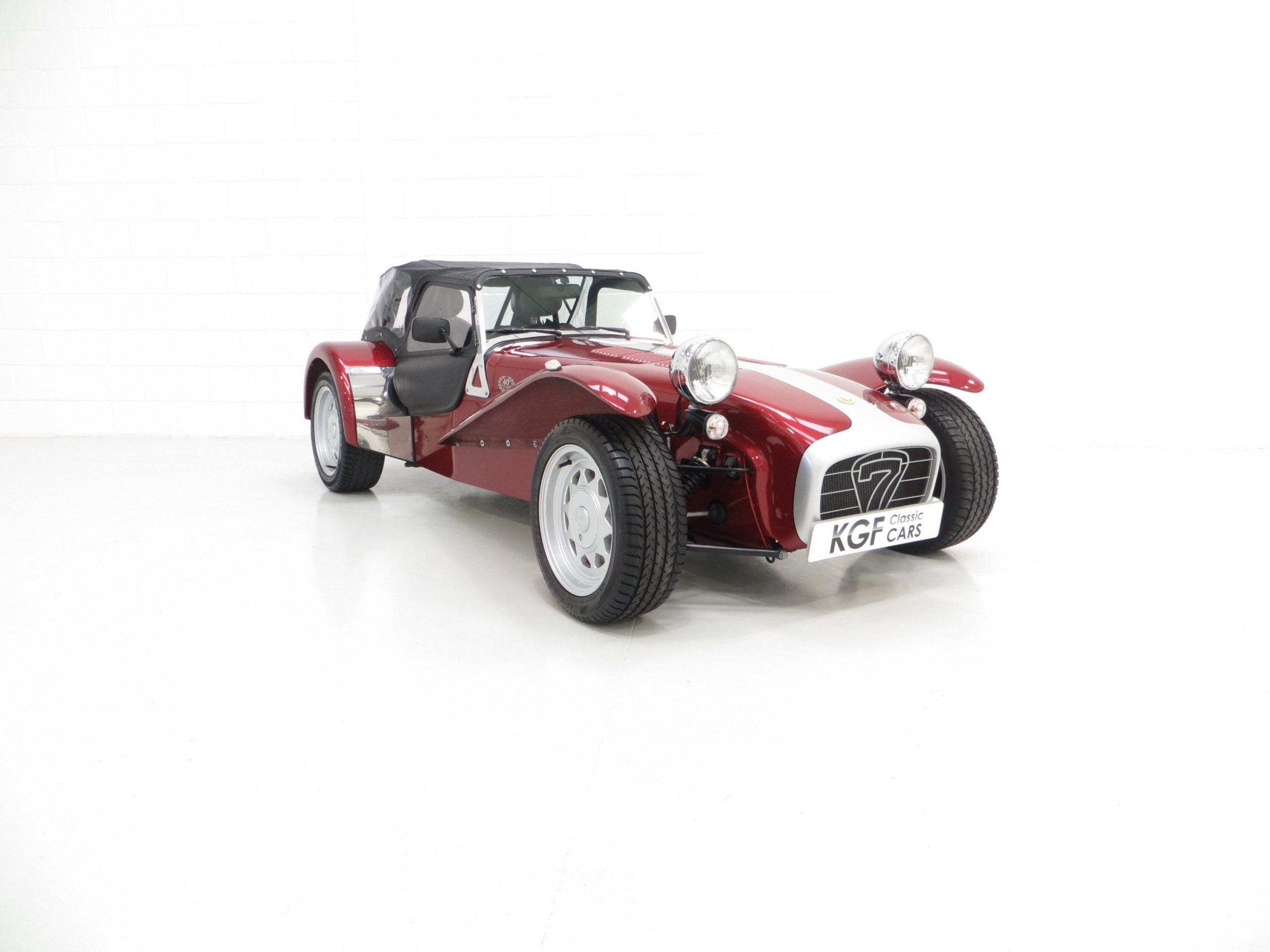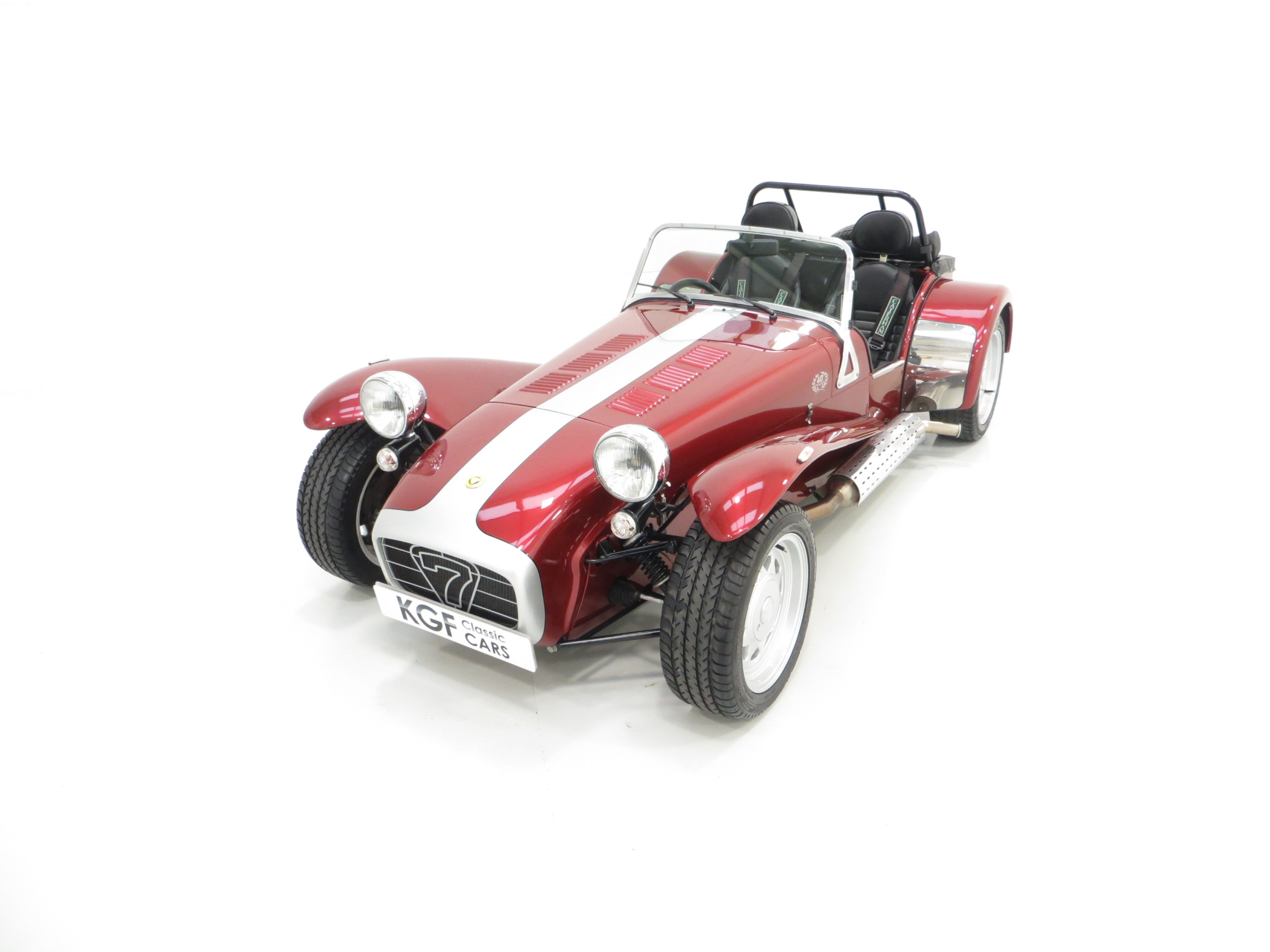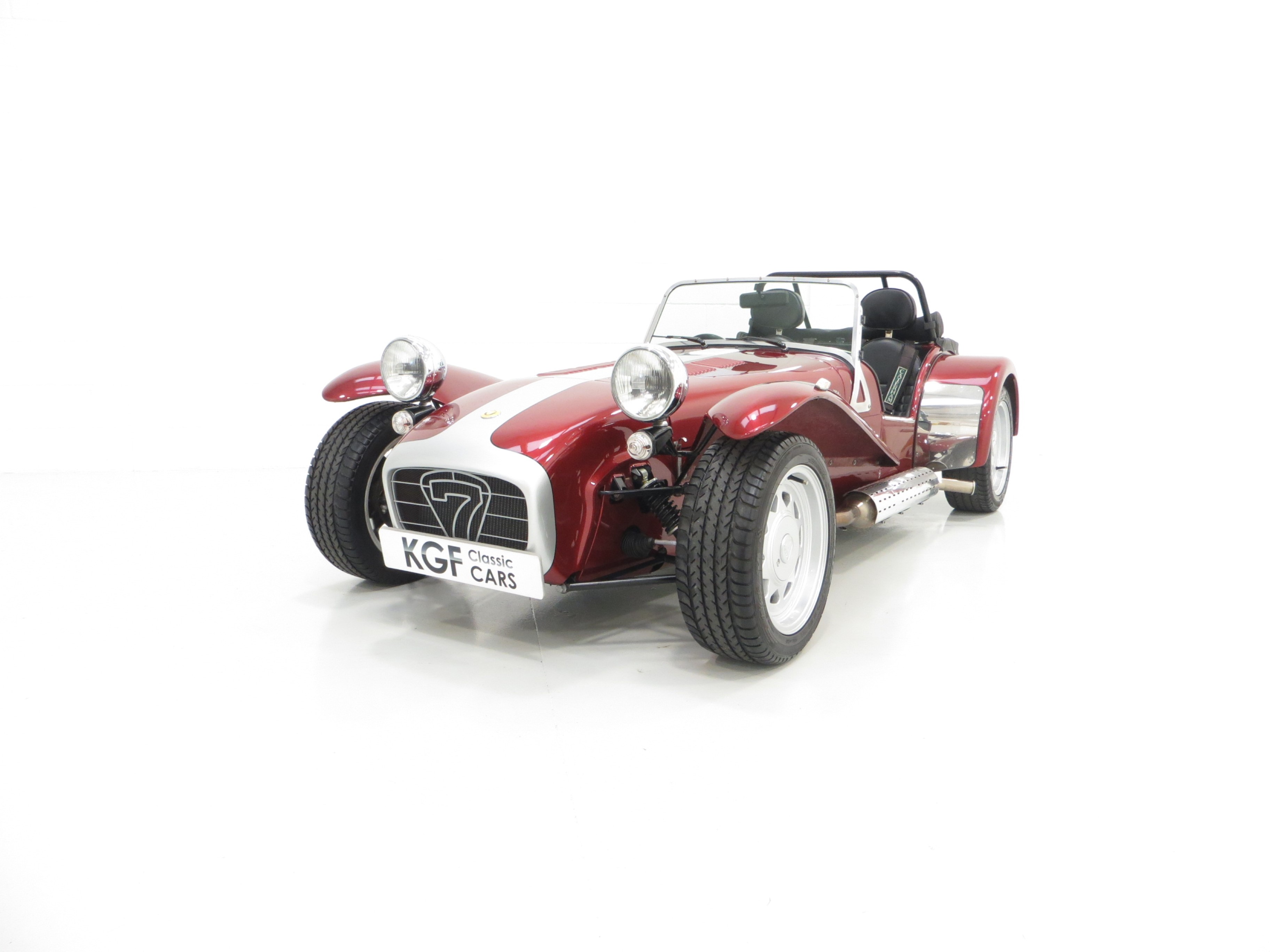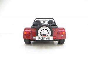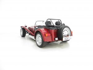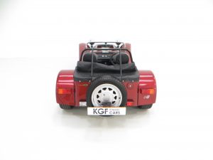 The Super Seven was first exhibited at the London Motorshow in 1957 and to celebrate forty continuous years of production and development the 40th Anniversary Special Edition was available. Just 67 were produced all in distinctive Ruby pearlescent paint with a Silver bonnet stripe and black coachline to give the Anniversary Seven a unique finish. Each was fitted with a numbered plaque on the cars dashboard, this example being number 23. The model was available with the K-Series or the 2.0 Vauxhall engine and at nearly £20,000 for the latter it was one of the most expensive 7s produced at the time. A sought-after and very rare Caterham.