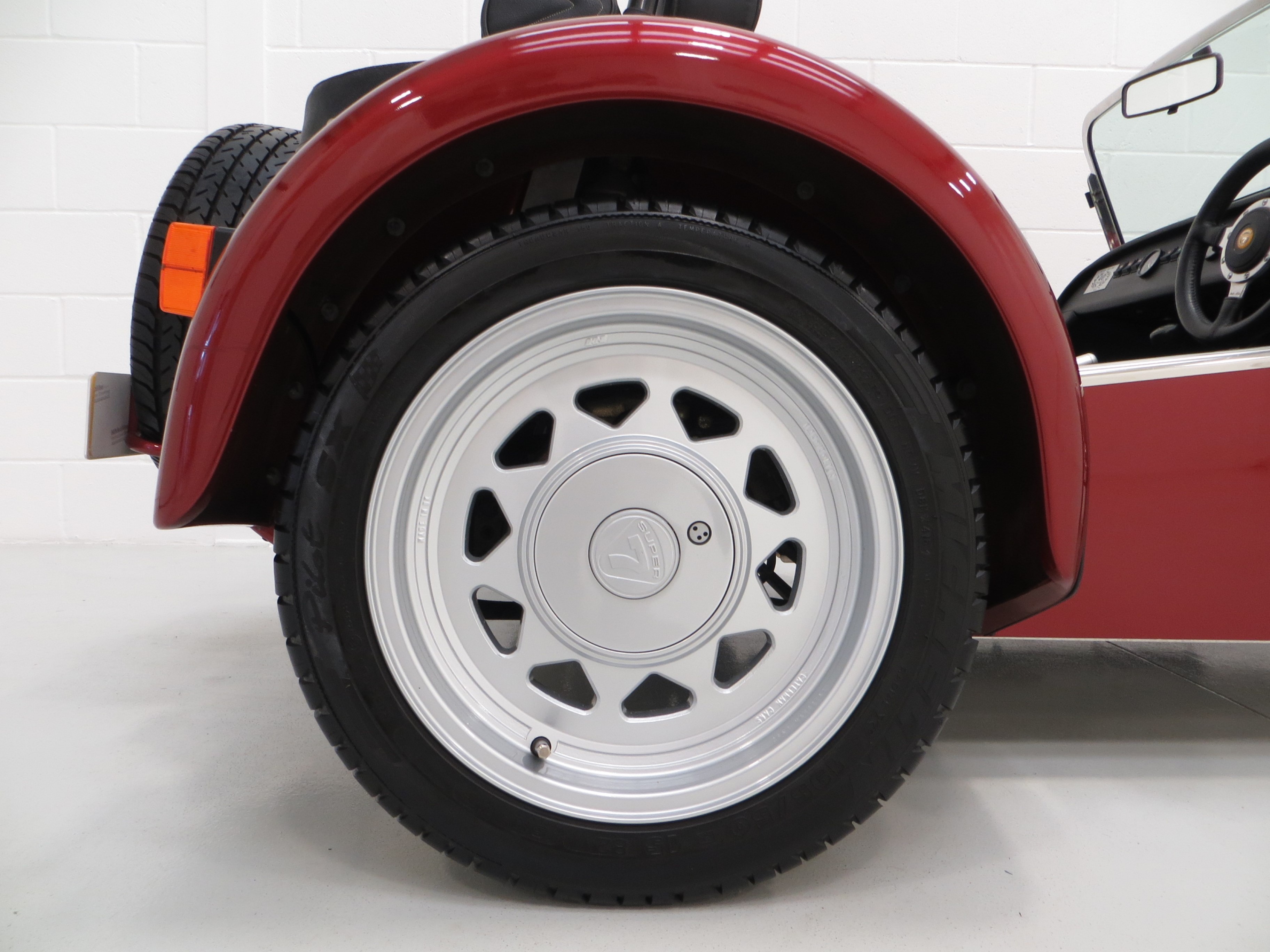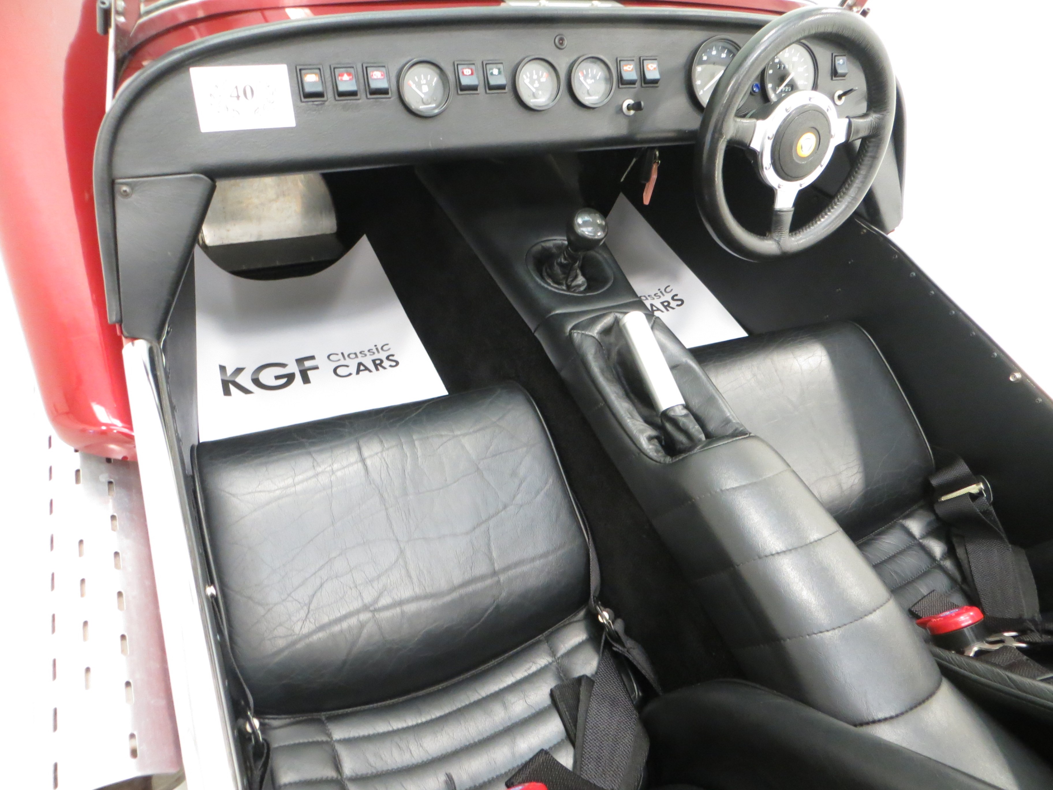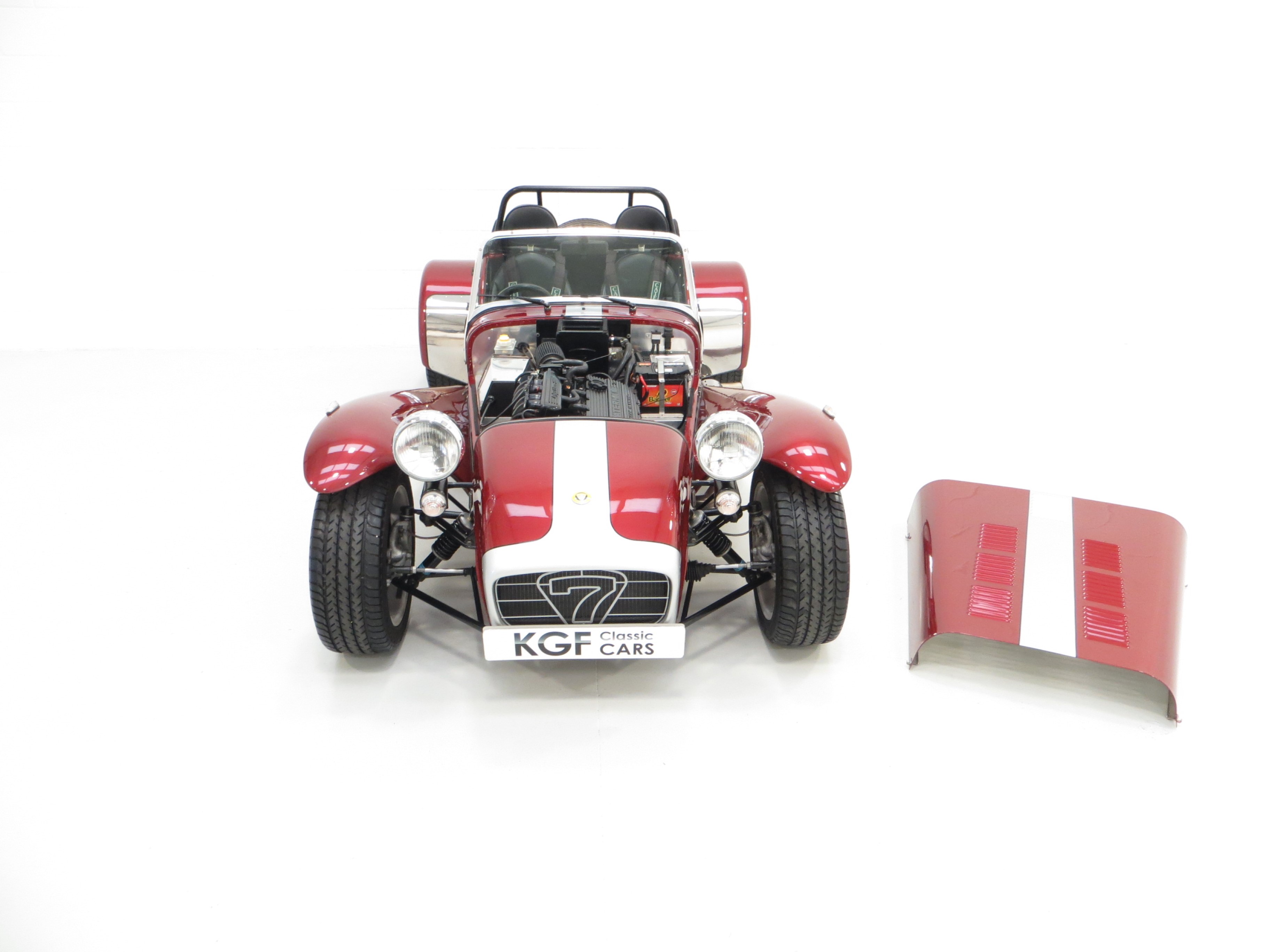 Tubular space frame with aluminium honeycomb cockpit stiffening, aluminium panels and composite nose cone and wings, front adjustable double wishbone with anti-roll bar, rear De Dion axle with adjustable anti-roll bar, Bilstein telescopic dampers, weather equipment, Seven grille, Motolita steering wheel, alloy handbrake lever, heater, full instrumentation, numbered plaque. Options; Clear indicator lenses, full S Type interior, four point harnesses, tonneau, handbag.