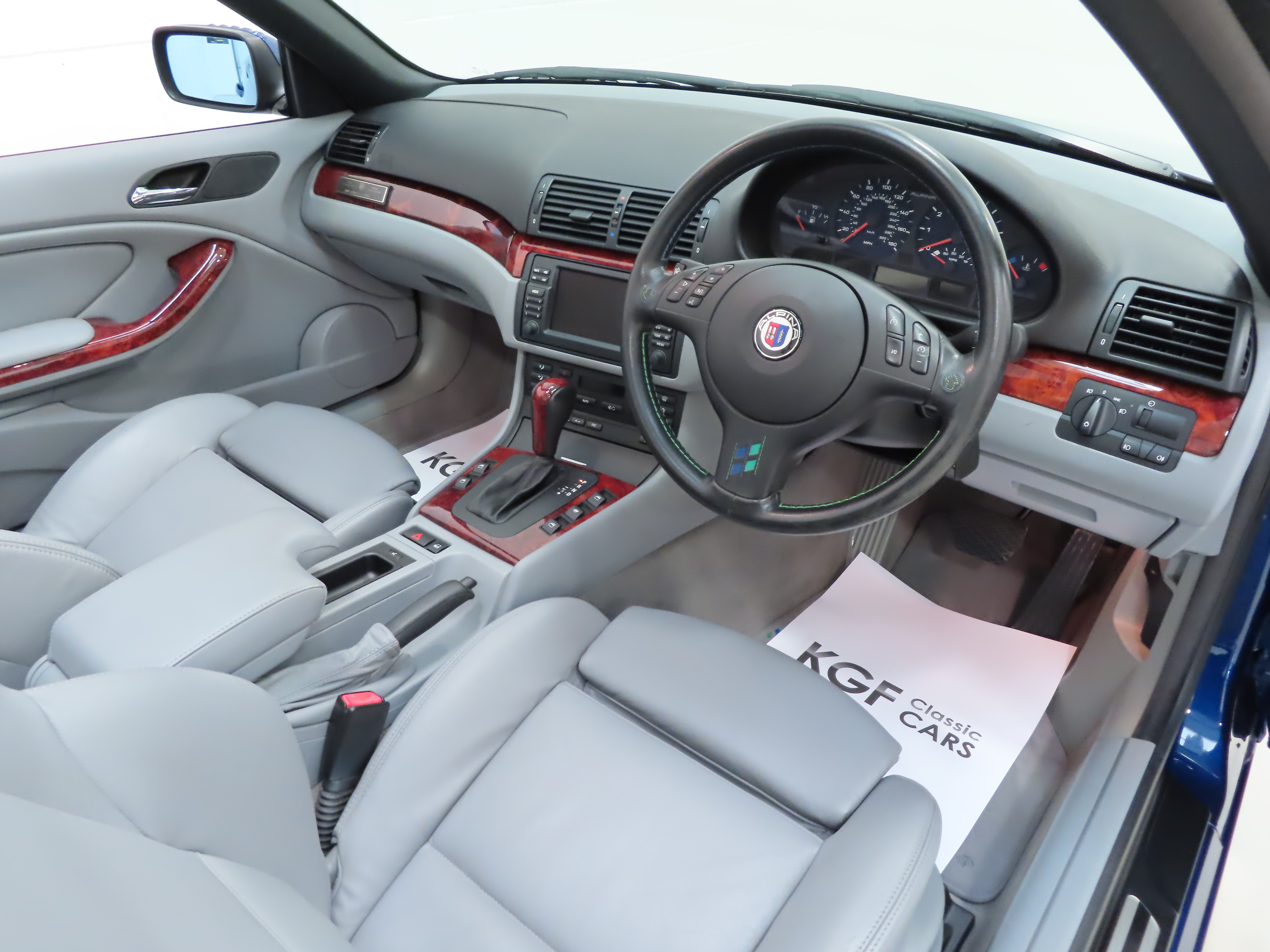 Established as a manufacturer of fine automobiles for the connoisseur, Alpina has thrived since the firm was founded in 1965 by Burkard Bovensiepen. Alpina to this day works closely with BMW and their processes are integrated into BMW’s production lines so that Alpina is recognised by the German Ministry of Transport as an automobile manufacturer. The building of special automobiles for demanding clientele in small numbers ensures exclusivity. The total UK production of the BMW ALPINA B3 S convertible is 292 units with tis example being 229.