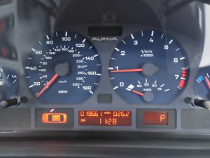 The inline 3.4 litre is an evolution of the B3 3.3 litre engine which places much emphasis on reducing the movement of free masses so extremely light pistons, a bespoke crankshaft and a reworked intake system result in a thumping 300bhp and 362Nm of torque. With a raft of other engineering changes expect 0-62mph in 6.7 seconds and an electronically limited top speed of 160mph. The incredibly clean engine bay proudly displays the manufacturer’s information plates, Alpina stickers and both the BMW and Alpina chassis numbers. The revolutionary Alpina Switch-Tronic 5HP19 transmission developed in a joint effort with ZF and Bosch operates flawlessly.