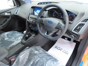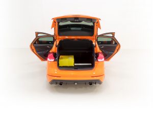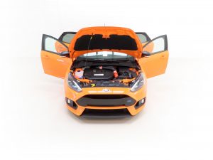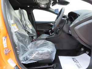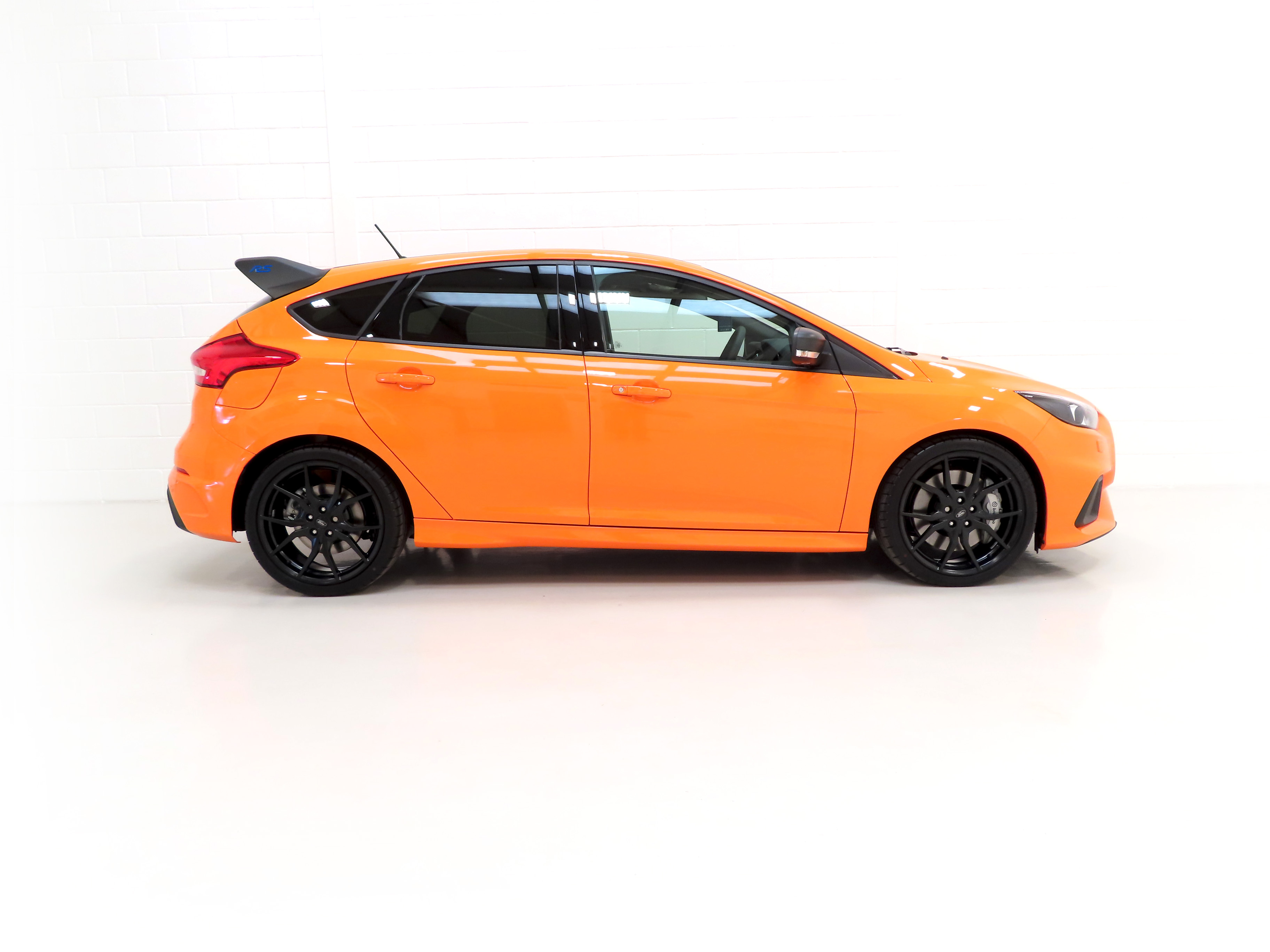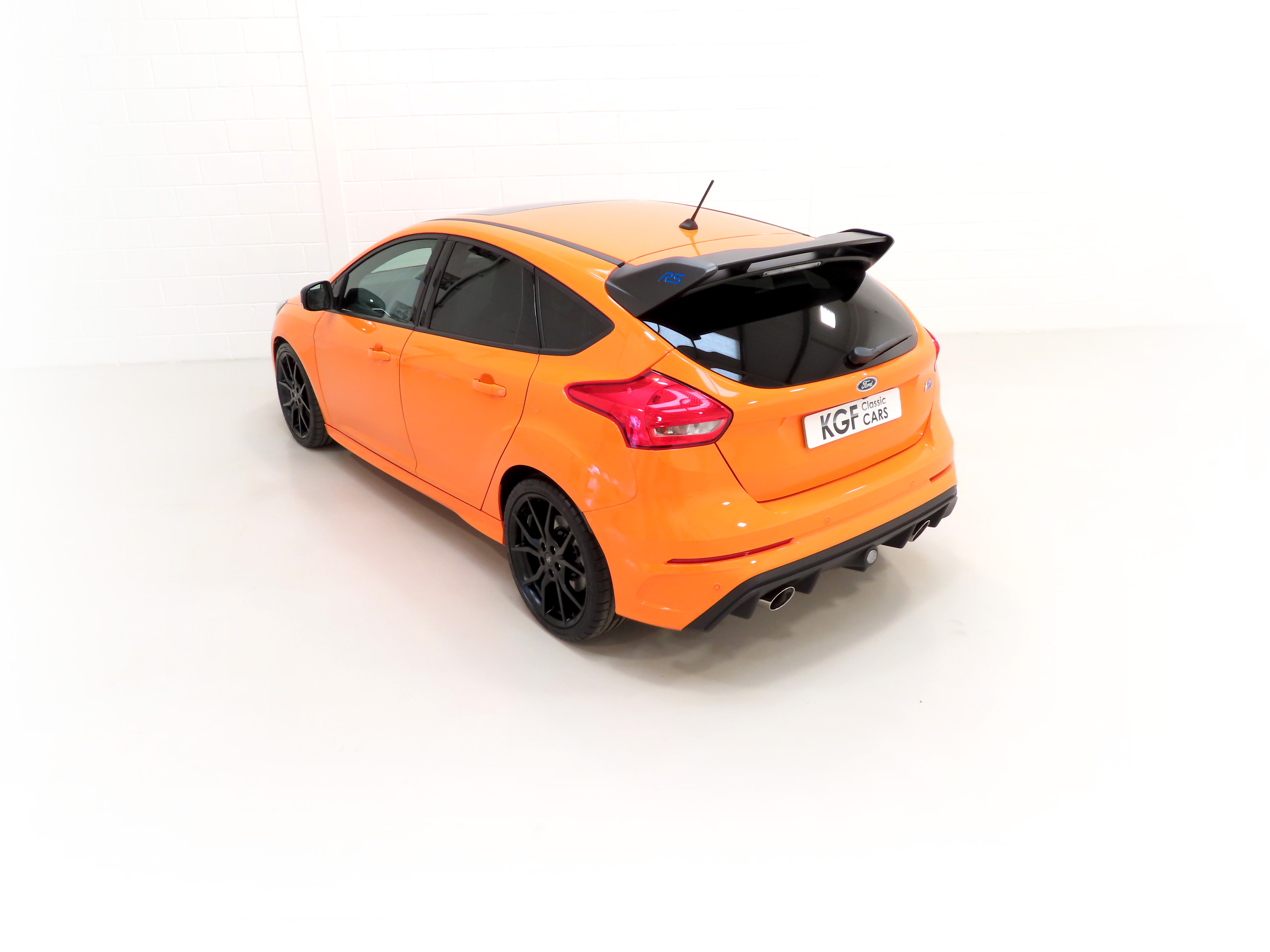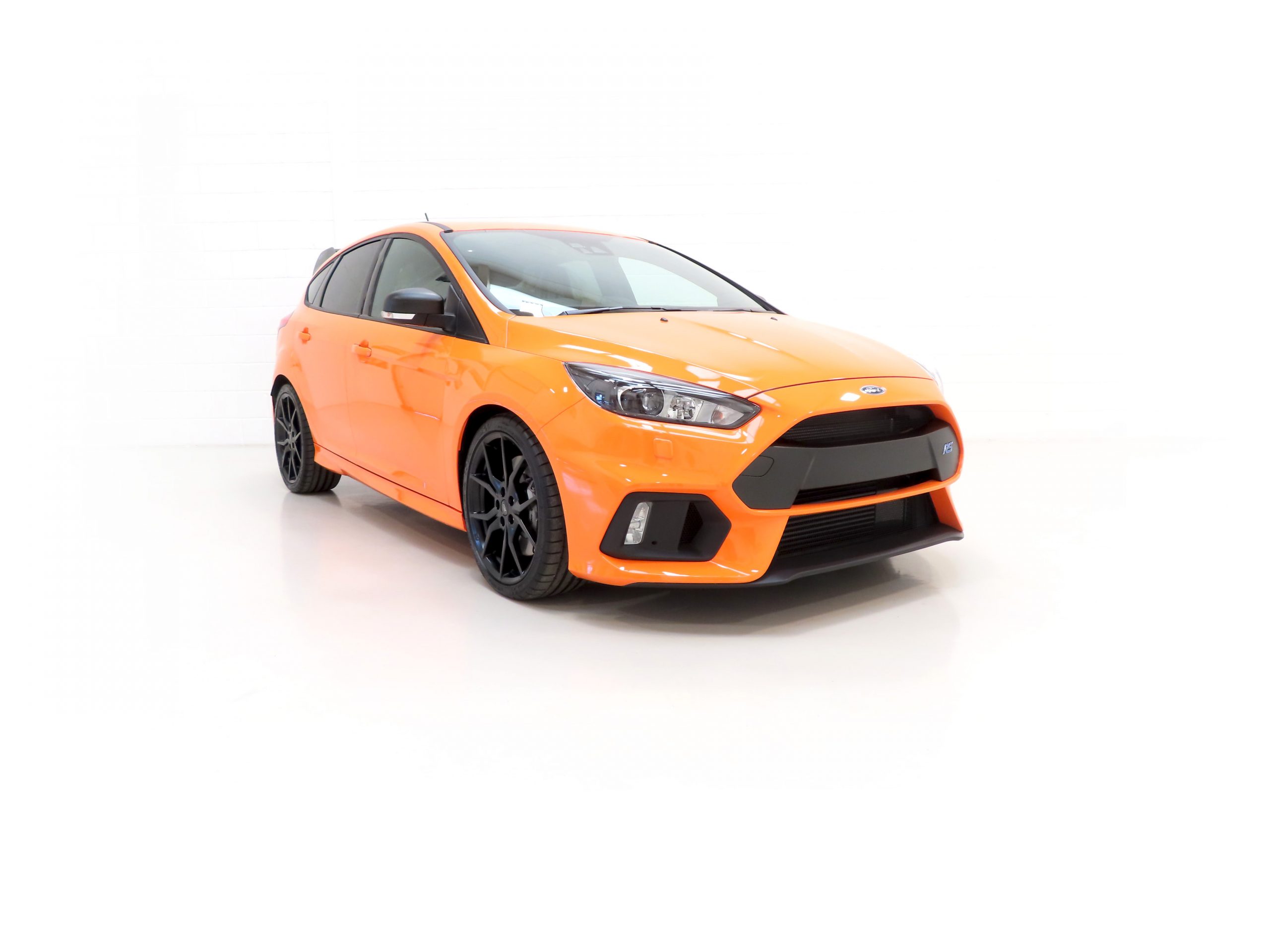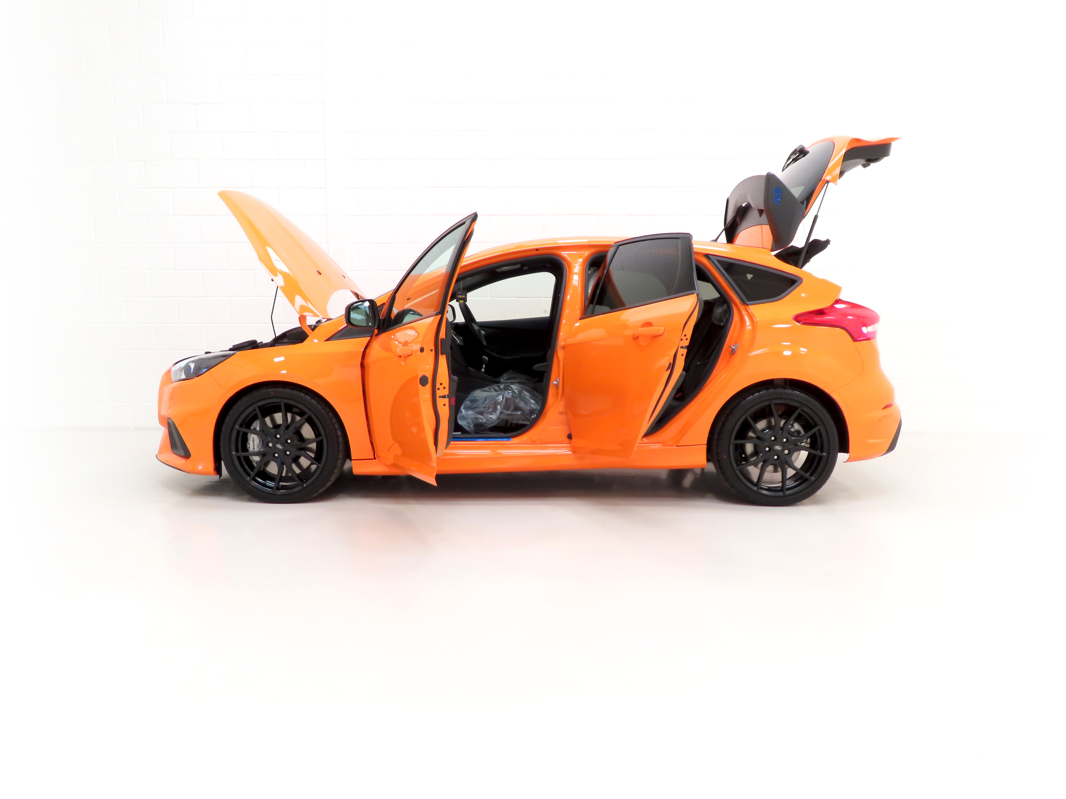 All-Wheel Drive with Dynamic Torque Vectoring, four selectable drive modes, SYNC3 8” touchscreen DAB audio nav system, Bi-Xenon HID headlamps, Ford Power Starter button, Tyre-Pressure Monitoring System, Performance gear-shift light. RS Heritage Special Equipment; Tief Orange paintwork, black forged alloy wheels, grey-finish brake callipers, contrasting black door mirrors and rear spoiler, privacy glass, sunroof, rear parking sensors, partial leather Recaro Race moulded seats, carbon fibre trim, power-fold door mirrors, cruise control/speed limiter, heated steering wheel, mechanical Quaife limited-slip differential, FPM375 Mountune power upgrade. Dealer accessories; Ford tailored carpet mats.
