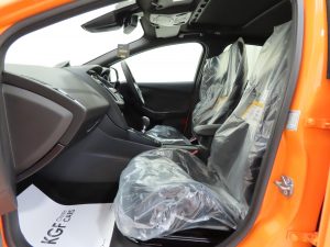 A lifelong blue oval enthusiast, Mr Davis has owned many RS Ford cars in the past and he was able to secure the order for this RS Heritage Edition. The approach by Mr Davis to his ownership of the car was set out from the start that the car should be preserved, and his mindset to this aim was beyond fastidious. The car itself was to be prepared for handover upon which strict instructions were that all factory applied labels usually removed and discarded during the PDI were to be kept. They indeed were and are laminated in the history file, as is every single page of the entire history folder! Interior upholstery covers and protective film were to be kept along with the original Mountune box holding the factory Ford parts removed during fitting of the FPM375 power upgrade kit. The front numberplate has never even had the film removed and RS Heritage show plates are made up for display purposes. Furthermore, absolutely every shred of paperwork has been retained starting from the new vehicle order form and sales invoice for £40,500. Mr Davis also insisted that all factory paperwork, dockets, build sheets and even the Mountune kit dispatch note were kept. Further handover documentation include the PDI sheet and disclaimer letter signed by customers to confirm they would not sell on their RS within the first year of ownership. Throughout his meticulous ownership, Mr Davis has stored the car in a temperature and humidity-controlled chamber and the 92 miles has been accrued when the car has returned to Evans Halshaw Glasgow Ford every single year for servicing. Each annual service has been carried out within a four-day window of the anniversary of the previous ones and not satisfied with the online service record only, the owner acquired a physical service book which is fully stamped. Every service invoice and condition report has also been kept in the large box file and on the service job cards there is the strict instruction, ‘do not wash’ as standard service washes were deemed inferior for this car! Completing the amazing history file is original sales and promotional literature as well as a copy of The Sun Motors supplement where the new Ford Focus RS Heritage Edition was pitched against the equally orange new Ford Mustang GT. Both original Ford key units are present each with tags and dealer fobs.