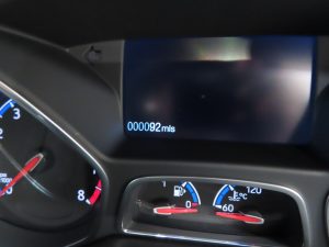 Upon opening the door of this volcanic Focus, you are instantly greeted with extrovert styling including the naked seat frame emblazoned with Recaro lettering, bright blue contrast stitching throughout and brushed aluminium tread plates with RS logo. Climb into the phenomenal Recaro Race moulded seats with huge bolsters and harness holes and you are instantly aware this is a cockpit like no ordinary Focus! The partial leather/Alcantara seat upholstery, (Code AR), is in perfect condition along with the entire cabin space as to be expected with a car that has covered just 92 miles! The fastidious owner from new was immediately aware after purchase that the car was to be preserved as close to factory as possible and as such has ensured that interior protective film to the sill plates and even the SYNC3 8” touchscreen has never been removed and the plastic Recaro seat covers and headrest sleeves remain. Flawless throughout.