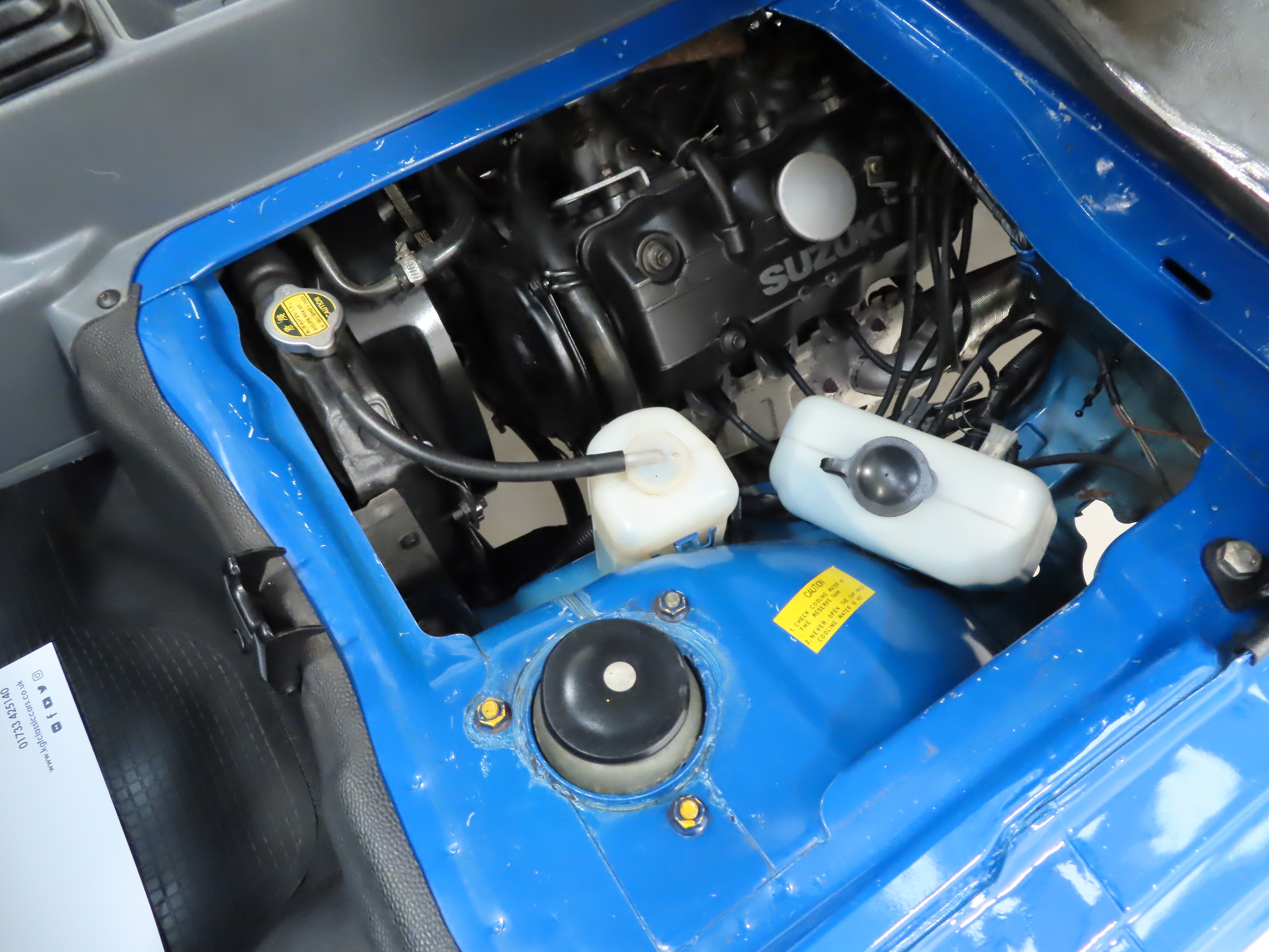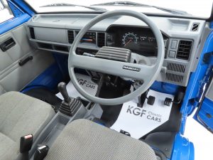 The simple and robust four-cylinder 970cc Suzuki sourced engine develops 45bhp to achieve a top speed of 73mph. This wonderful little engine offers simplicity and economy with both seats easily tilted to allow complete access to the engine compartment which is very clean with all stickers and plates intact. The original jack and wheel brace are correctly stored in the engine compartment and jack handle clipped to the front inner bulkhead. The five-speed gearbox is precise and driving this exceptionally low mileage Rascal is an absolute joy with smiles guaranteed!