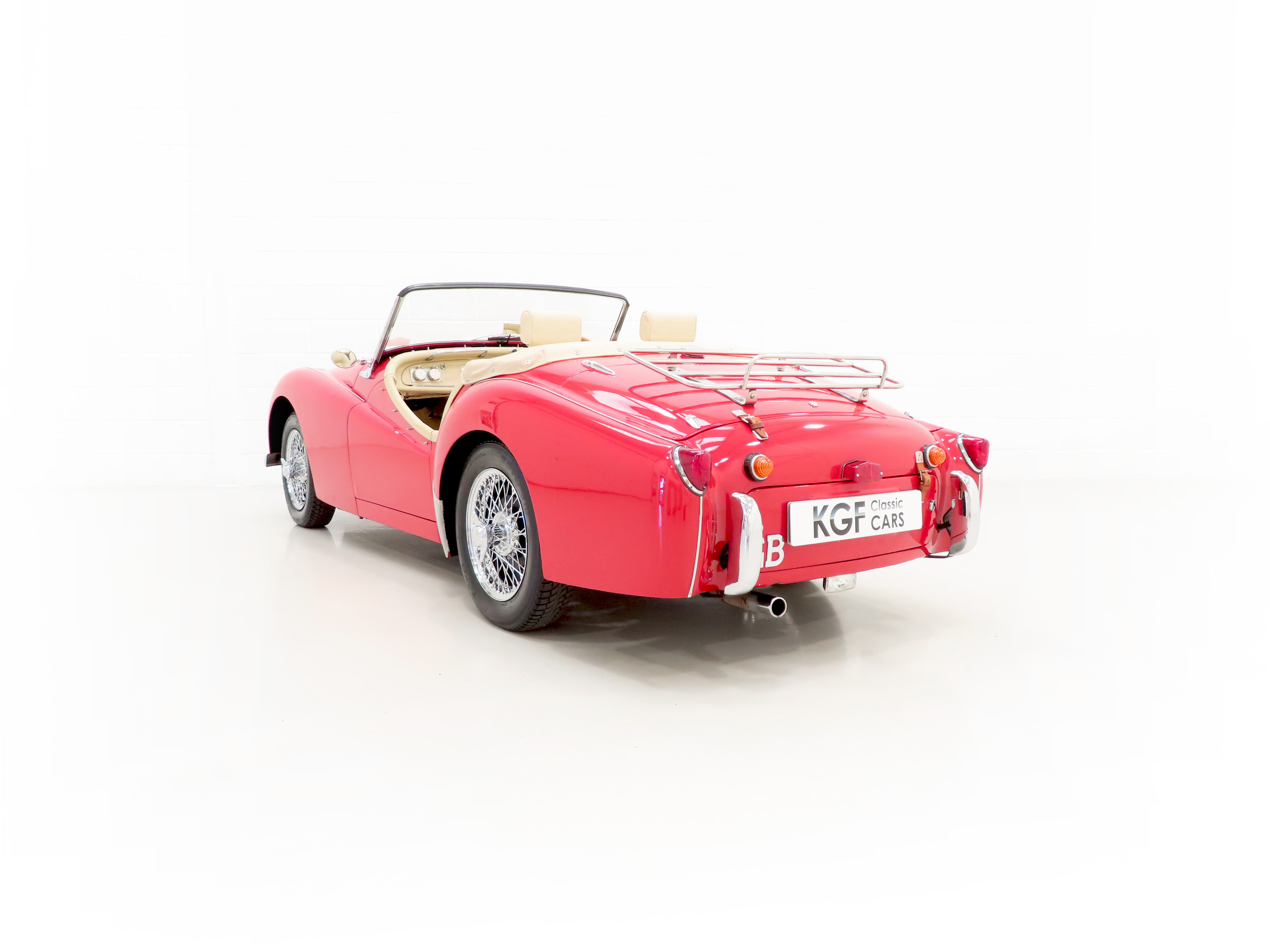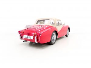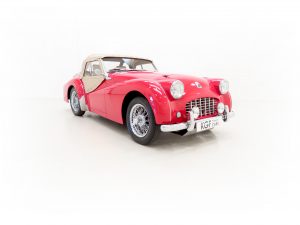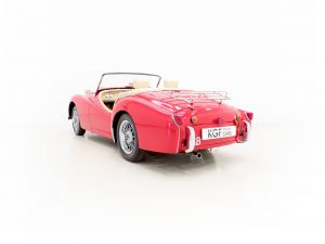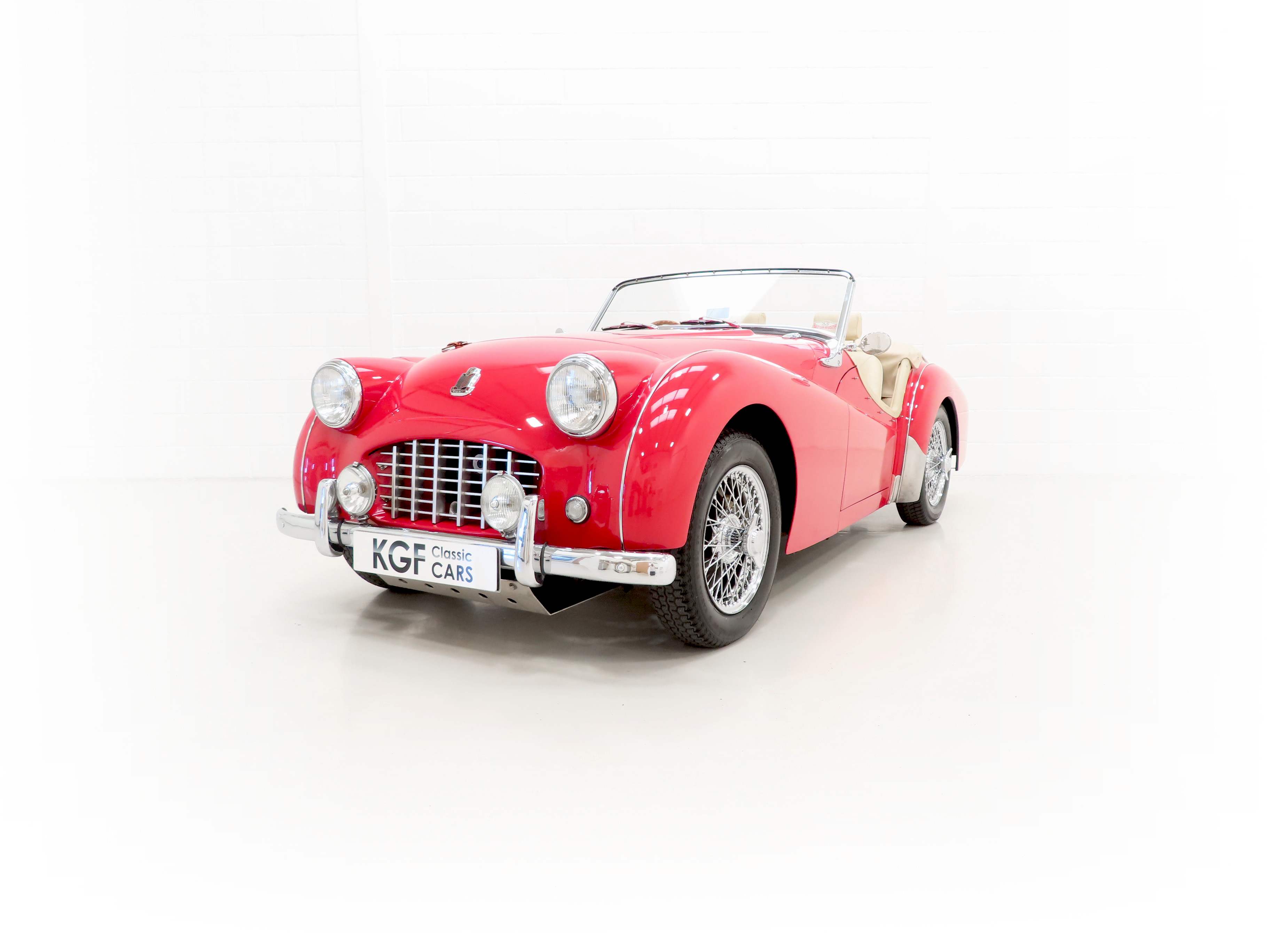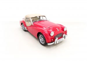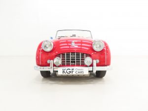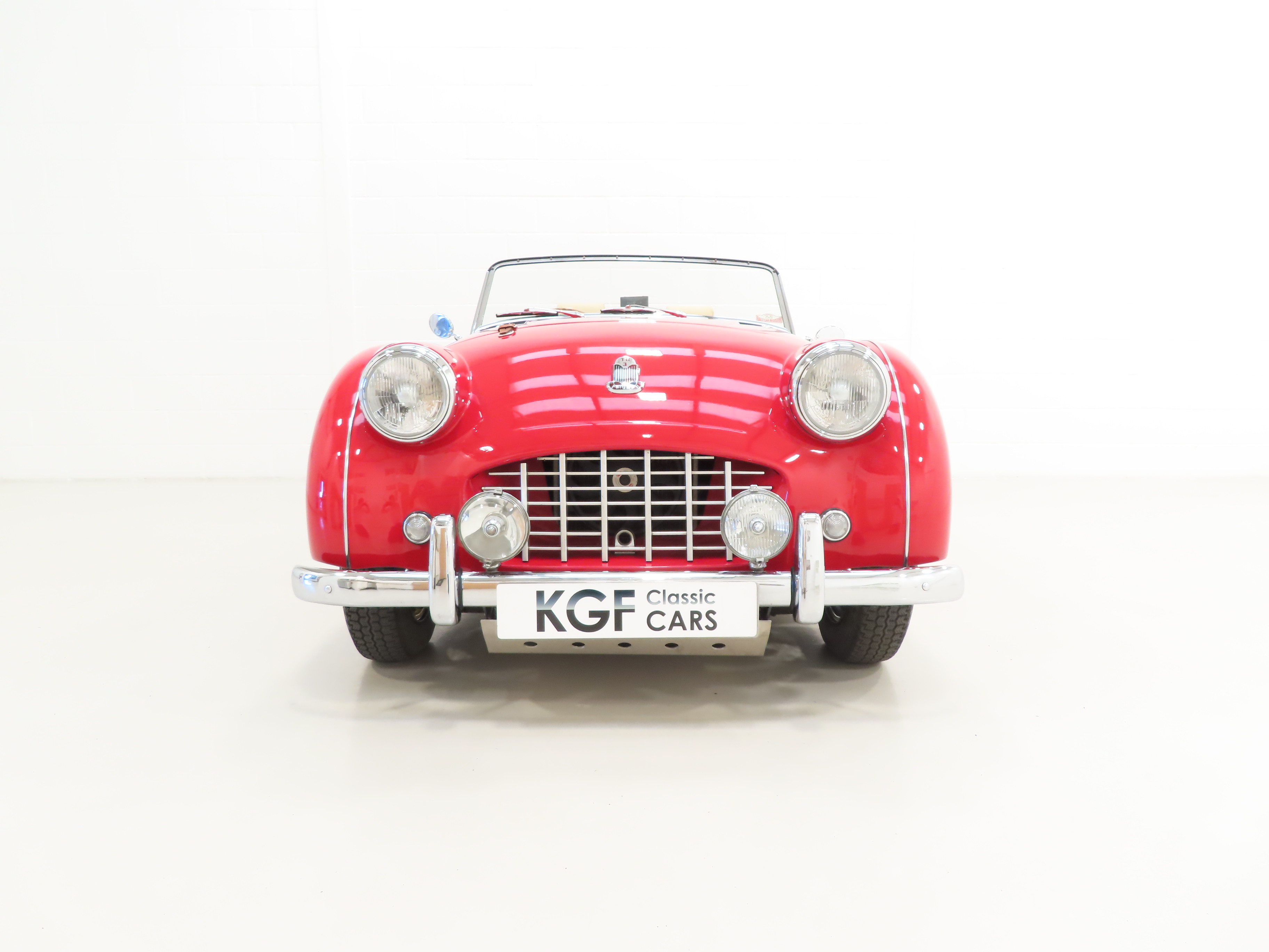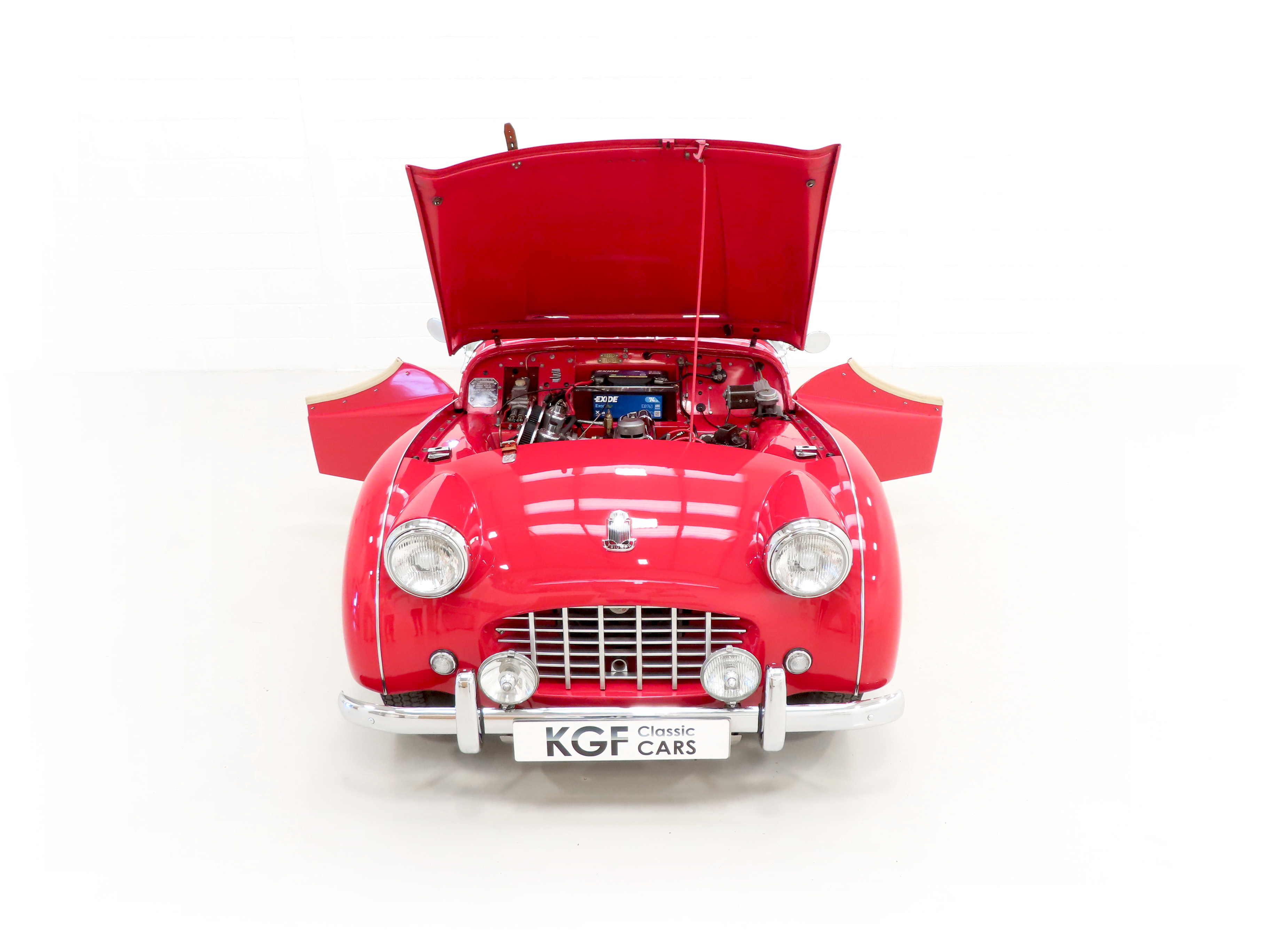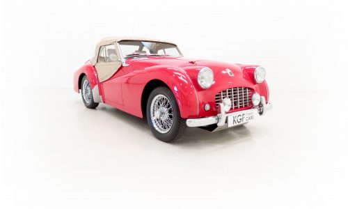 This highly collectable very early TR3 Works car is finished in Signal Red and looks fetching at any angle. All the chrome, accessories and very expensive mohair all-weather equipment is in excellent order. Enjoyed immensely for touring and top revival meets the perfection seeking owner will find signs of use but make no mistake, this car is very smart and used to the show circuit! Documented expenditure from its total restoration by the late Brian Lofts in 1988 totals £71,602.78 and reveals the care lavished on this show stopper. A remarkable established tourer.