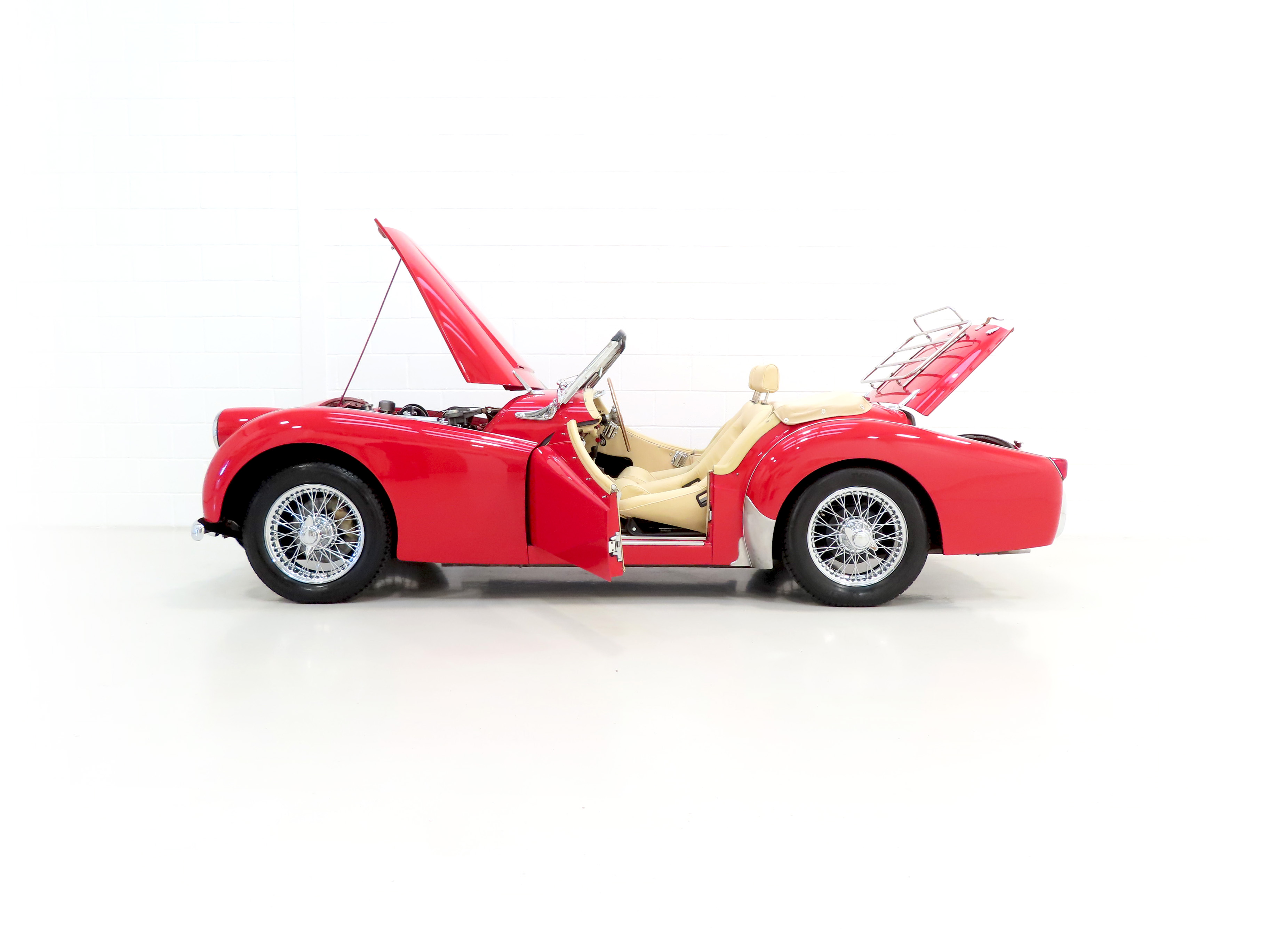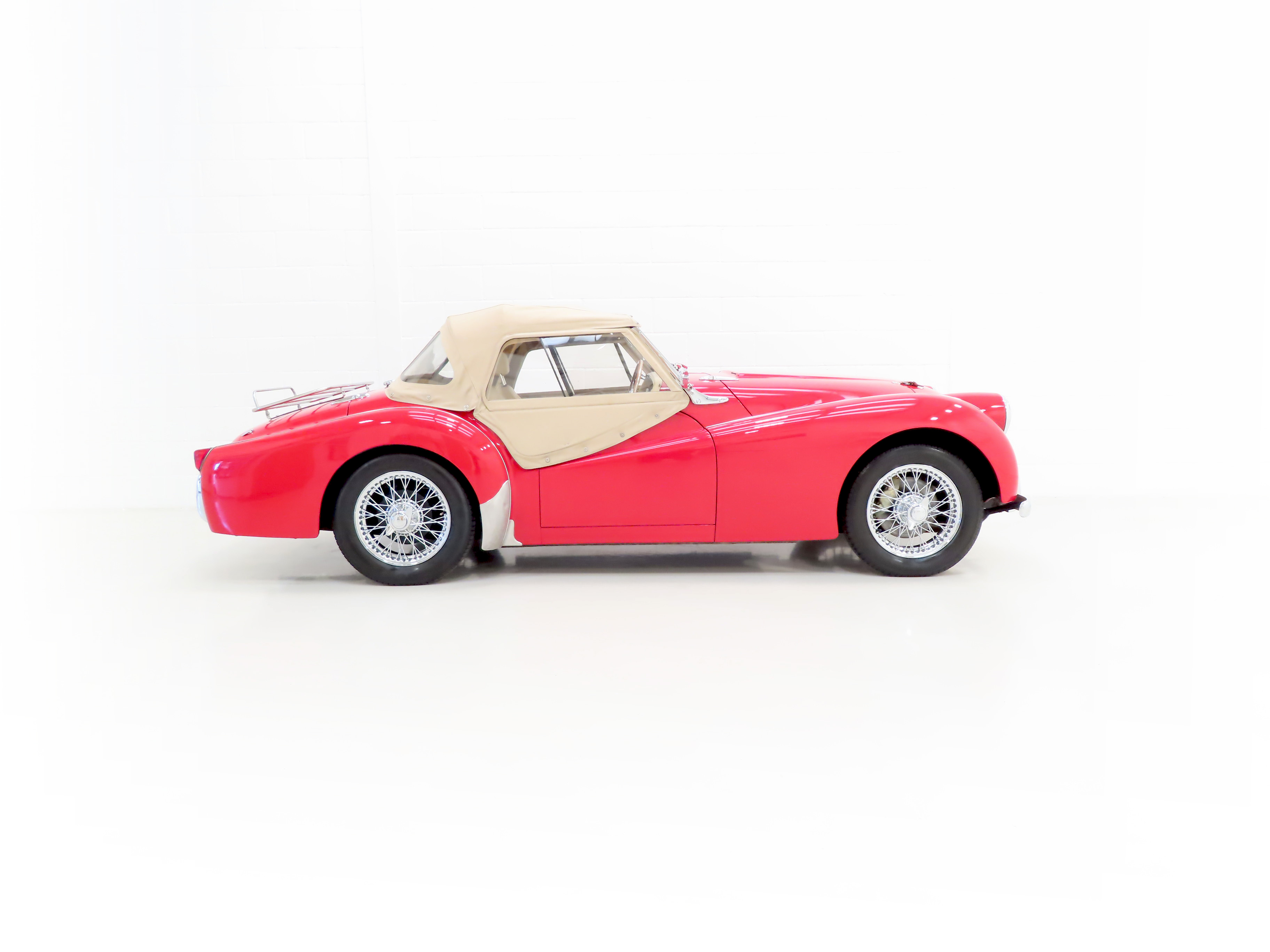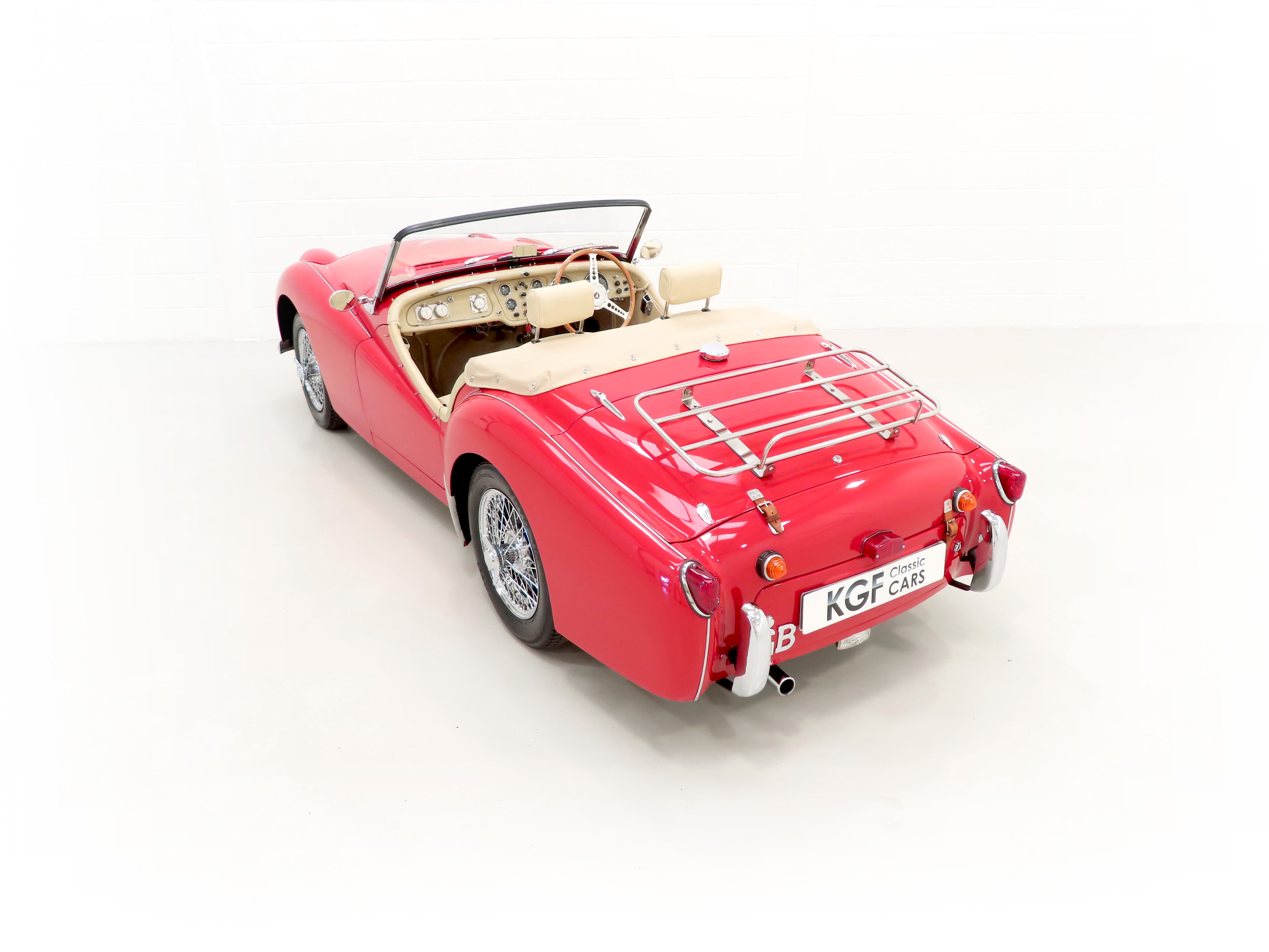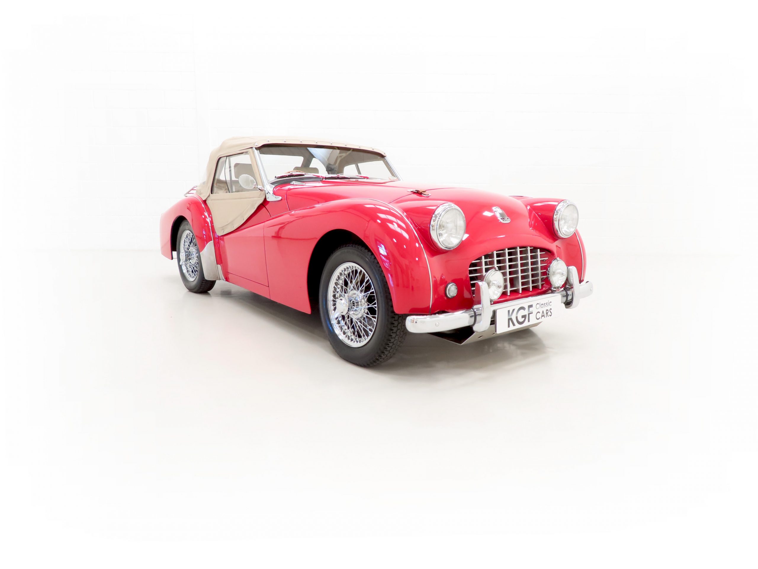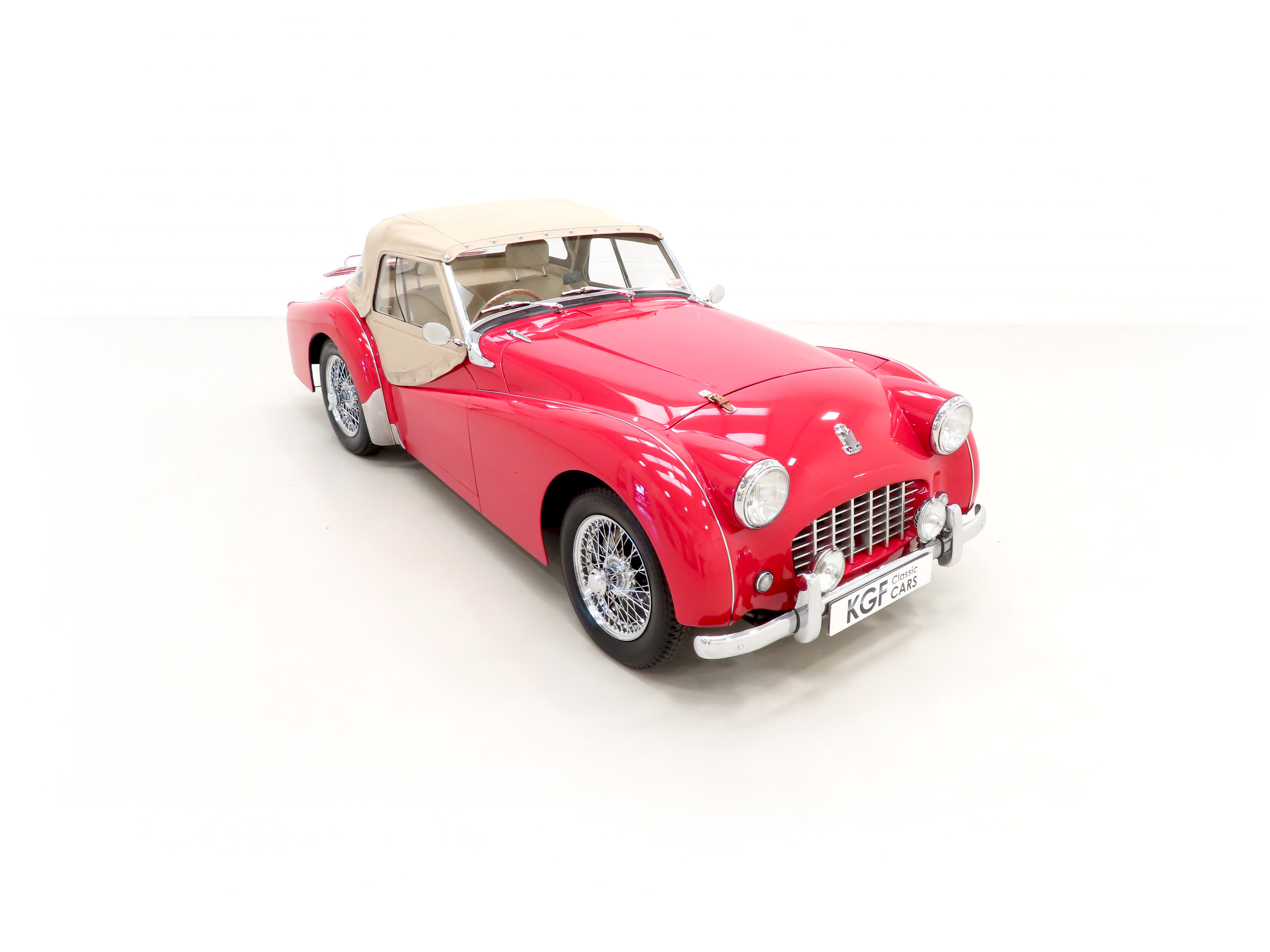 Truly exceptional. Built by the Standard Motor Company Limited on Wednesday 26th October 1955 at 11.30am, just 15 days into Triumph TR3 production, and sent to the works teaching and PR section. This matching numbers car registered as SWK 772 can be seen in early photos promoting the Stanley Baker motor sport-themed thriller, Checkpoint. An overwhelming, articulate and chronically filed history reveals ownership tales, competition foils, expenditure logs totalling tens of thousands of pounds and many literature entries. These include an extensive feature in the widely respected Triumph TR guru, Bill Piggot and his book ‘Triumph TR2, 3 &3A in Detail’, a copy of which is included. A previous owner who purchased the vehicle from Hurst Park Automobiles Ltd for £39,000 commissioned a hard copy book entitled, ‘A Car of its Time’ dedicated solely to this car and its fascinating past. Efforts in the making also traced the original owner who was reunited with the car some 55 years after purchasing it with photos taken in the same location both in 1957 and 2014! A brief outline of this cars timeline can be found on the following link. https://drive-my.com/en/retro-carss/item/1857-life-cycle-triumph-tr3.html