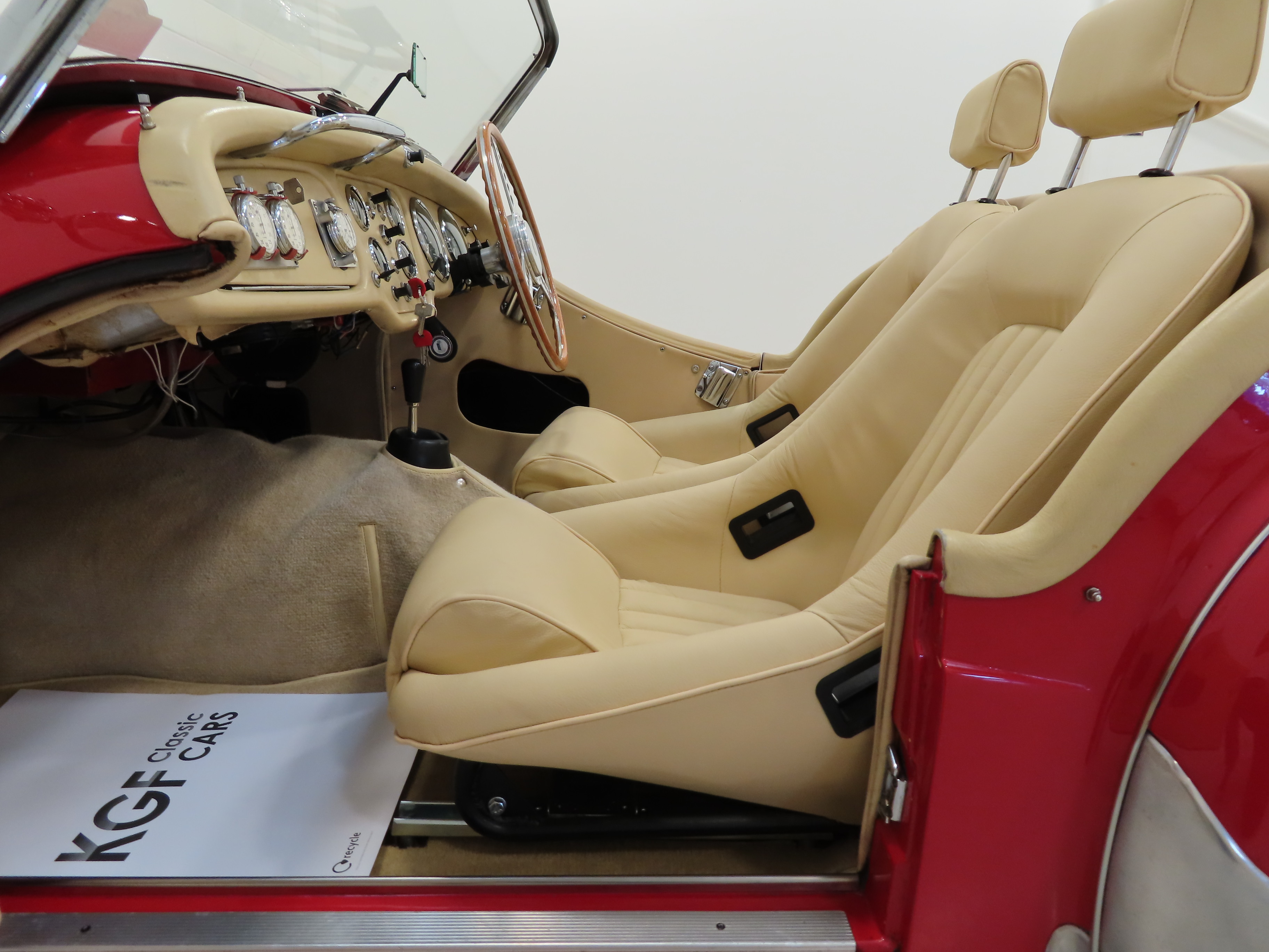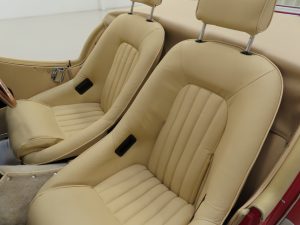 A well-appointed interior finished in Stone leather has all the qualities of a traditional sports tourer with bucket type seats, thick pile carpeting and working Jaeger instrumentation. The correct chromed grab handle and rear view mirror is supplemented by period accessories such as Agat stop watches and a Mike Lempert wooden steering wheel. Spotlessly clean, the seats have been upgraded by the previous owner at significant cost in 2021 and sourced from Ridguard Classic Seats, although the original seats and runners have been kept and are included with the car. A complementary interior used to publicity from new.