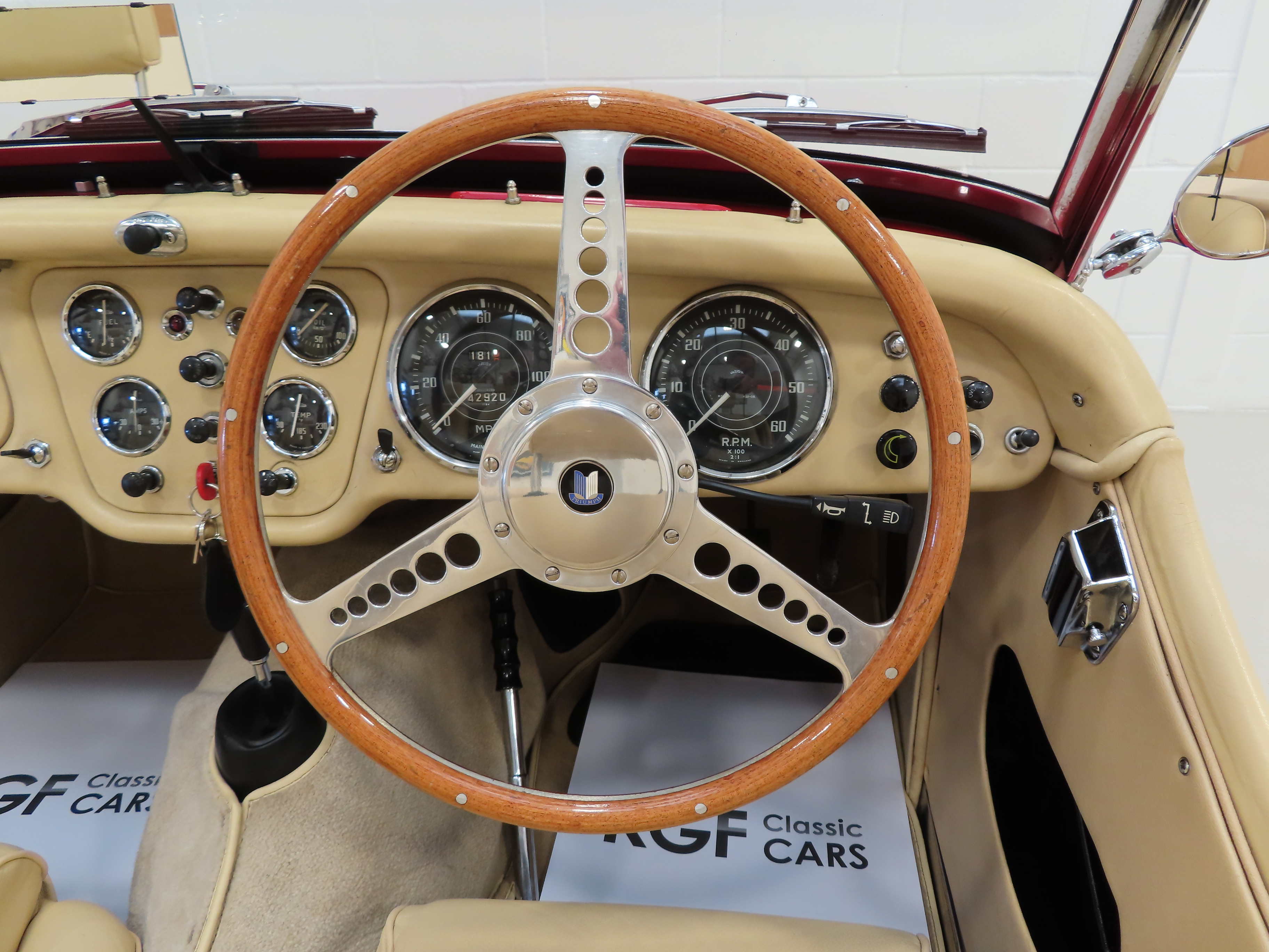 Mohair hood, side screens and full/rear tonneau covers, detachable front screen, central stop lamp, 5in tachometer and speedometer, fuel, water temperature, ammeter and oil pressure gauges, button starter, scuttle ventilator, panel lights, glove locker, door pockets. Optional Extras; Electrically operated overdrive, Lucas auxiliary lamps, Desmo chrome door mirror, stainless steel luggage rack, leather bonnet/boot straps, knock-on type wire wheels, 16 Jewel Ingersoll Triumph day clock, Agat stop watches X2, Mike Lempert wooden steering wheel.