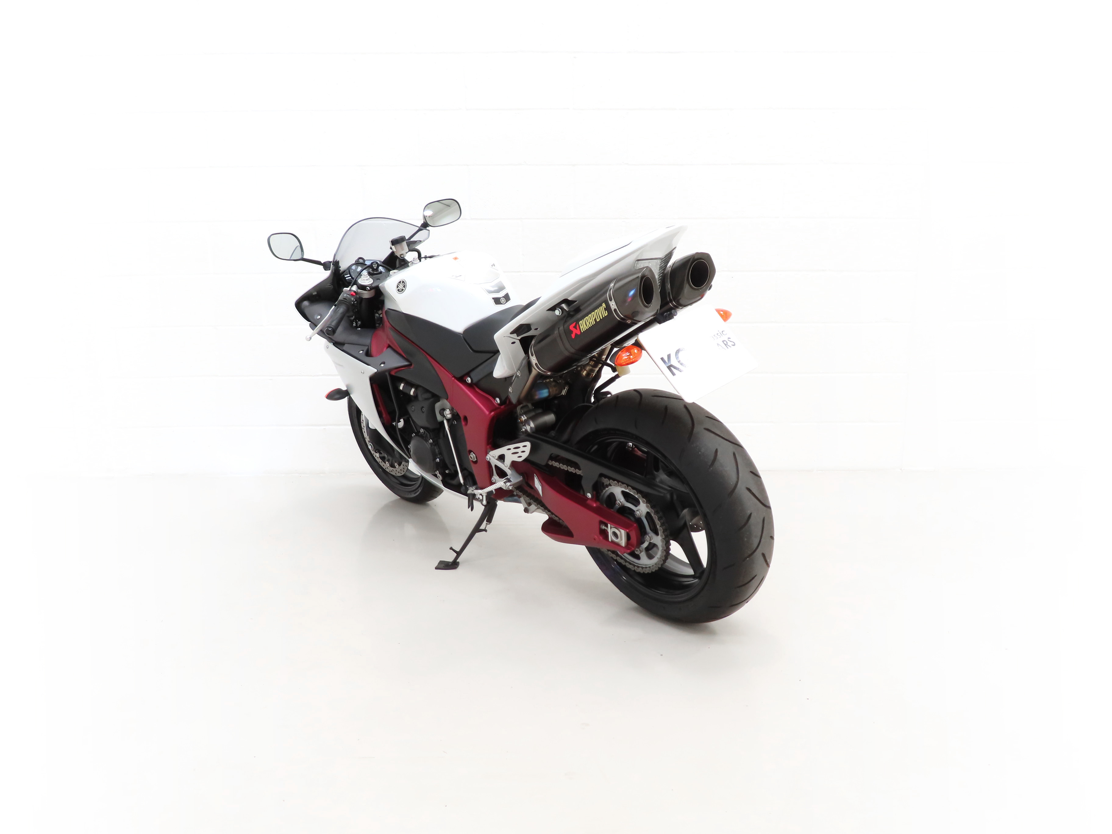 Cobra-eyed front end, aerodynamic outer skin faring, airflow advantage layered inner skin, aluminium Deltabox frame, sculptured 18 litre fuel tank, multi-adjustable suspension, 2-way adjustable Truss-Type swingarm, 43mm telescopic front forks, lightweight 5-spoke alloy wheels, twin projector headlights, 32-bit ECU, YCC-T (Yamaha Chip Controlled-Throttle), YCC-I (Yamaha Chip Controlled-Intake), instrument panel with D-Mode display, D-mode electronic control system, TCI ignition system, toolkit, pillion seat, lockable fuel filler, electric start, engine kill switch, neutral indicator, rev counter, gear indicator, digital readouts for engine temperature, fuel, speed, odometer, trip, and clock. Genuine Yamaha accessories; Race type single seat cover, tank protector. Accessories; Akrapovič racing line exhaust silencers, (original mufflers unused), electronic smart charger.