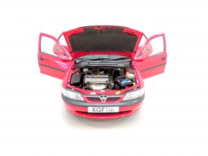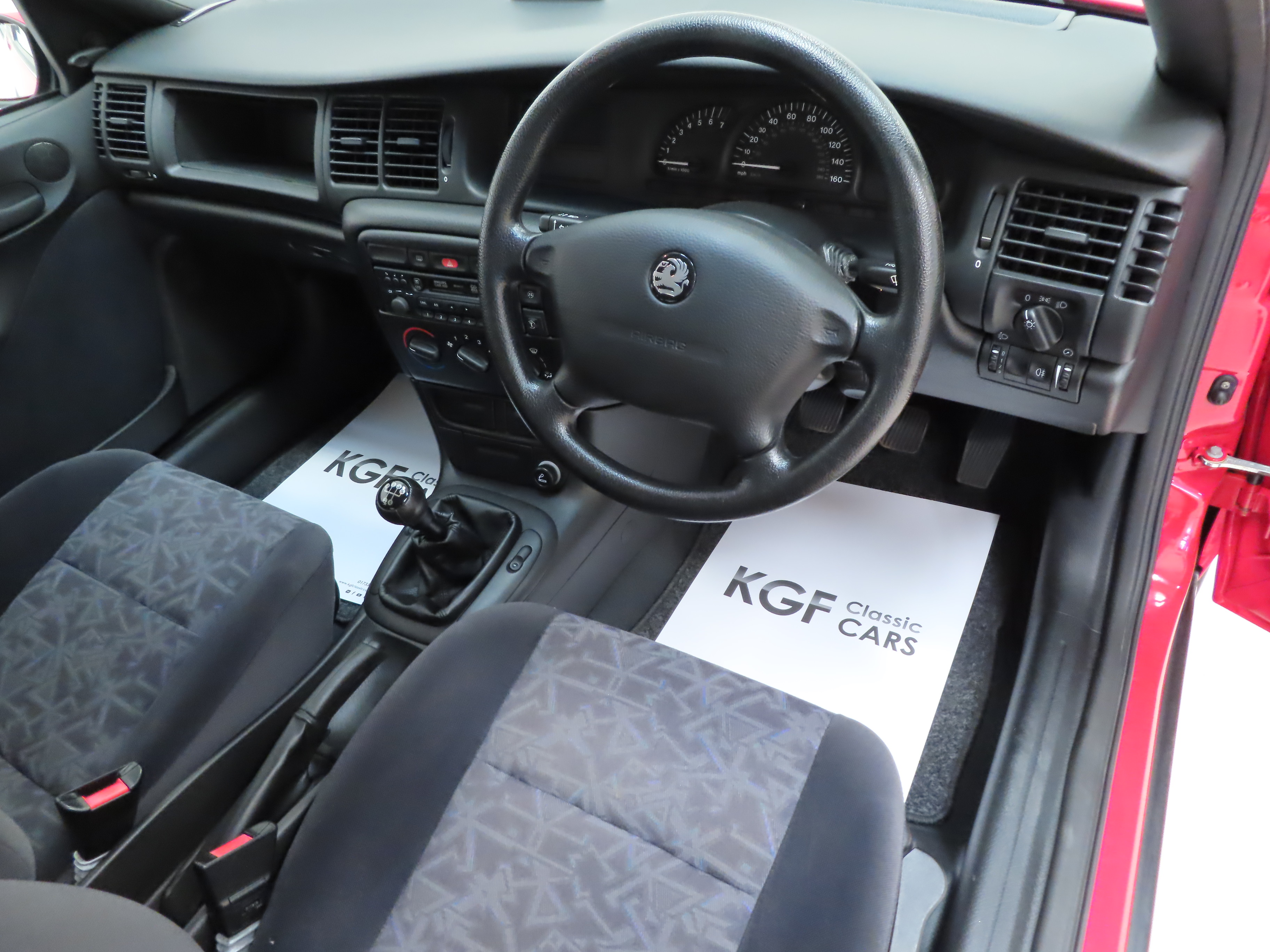 A spotlessly clean and period perfect Vauxhall interior is sure to delight fans of the Griffin badged cars! The original Traffic upholstery in Anthracite, (Code L98), is preserved with no undue wear to the fabric and seats bolsters are firm. The matching colour keyed door cards and headlining are pristine, and the fleece carpets are protected by tailored Vauxhall Dealer Sport carpet mats. All functions and controls operate perfectly including the Philips CAR400 stereo cassette and remote display with all pixels intact. Prominent natural veins to the steering wheel and gear knob are an obvious trait of such a low mileage example and even the gearstick gaiter has not degraded, almost unheard of for a Vauxhall of this era! The immaculate luggage area has the perfect carpet and parcel shelf and the side storage cubby has the original jack and wheel brace. Deliciously 90’s throughout!