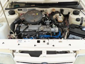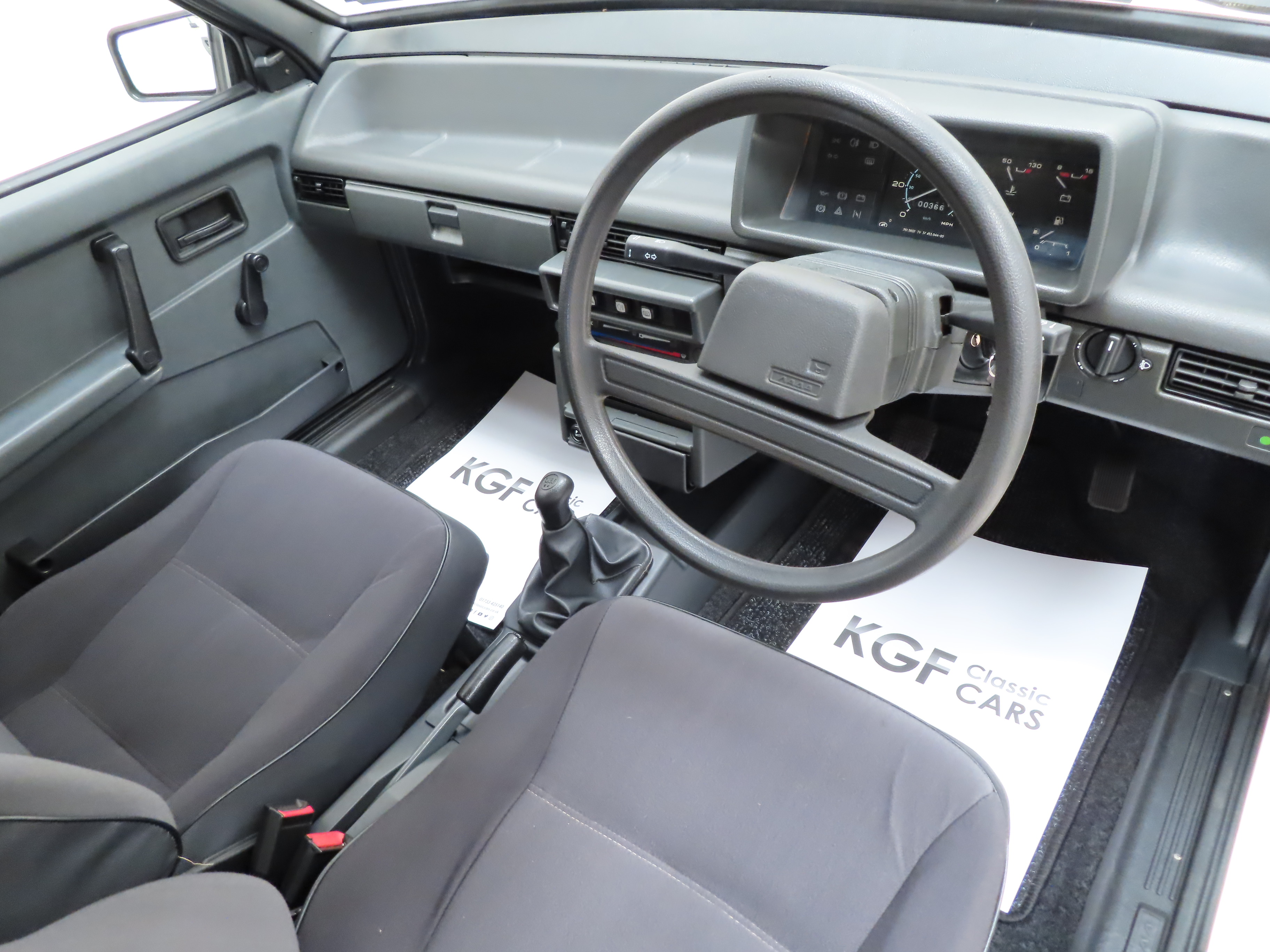 The 1288cc four-cylinder engine featuring twin choke carburettor and automatic choke set up allows for a top speed of 92mph and 0-60mph in 15.4 seconds. The untouched engine bay has original plates, fragile paper stickers and factory chassis stamp to the strut top clearly visible. The blue HT Leads remain fitted, and all fluids are clean and clear. Even the under-bonnet lamp with fragile cowl is fully intact and operational! Recently serviced to include a cambelt change, the engine is quiet and the 5-speed manual gearbox change feels brand new!