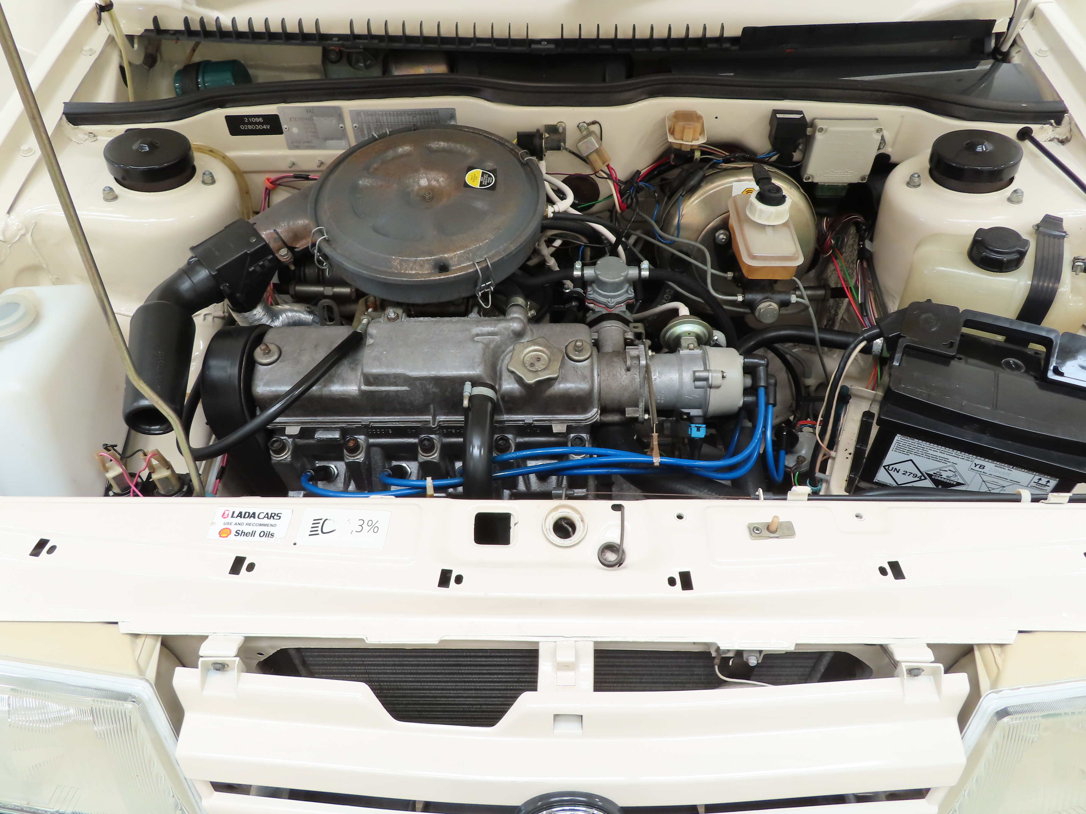 An interior entirely commensurate with a near delivery mileage car! Functional yet quite comically unrefined, this interior is plastic fantastic! The durable grey cloth/velour upholstery is perfect with no wear or markings whatsoever. The somewhat rudimentary fit and finish embodies the reputation Lada was famous for, yet this example is perfect in every respect with nothing out of place. All functions and controls operate perfectly and the common touch points such as the steering wheel and curiously unergonomic gear knob retain prominent factory veins. The luggage area boasts the flimsiest of parcel shelves, albeit in perfect condition, as well as the load space carpet, unused spare, tool bag and even factory build label still intact. Wonderfully preserved.