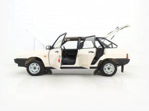 Finding any Lada Samara is a difficult task, although to find one with an astonishing and genuine 366 miles from new, this example is most likely to be the lowest mileage Lada Samara in existence! In factory original Champagne, the paintwork to all factory panels is quite incredible and boasts a uniform finish. The famously crude craftsmanship and somewhat questionable paint finish in some areas is quite amusing and exactly as is left the factory! Some very small touched in chips and marks accrued while in long term storage are visible upon close inspection. Supplying Lada Main Dealer number plates, rear screen sticker and tax disc holder remain fitted. This example is simply as it left the Lada/Proton showroom in 1996, with absolutely nothing replaced or altered. Truly a one-off museum piece and a Festival of the Unexceptional championship contender!
