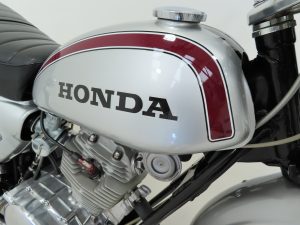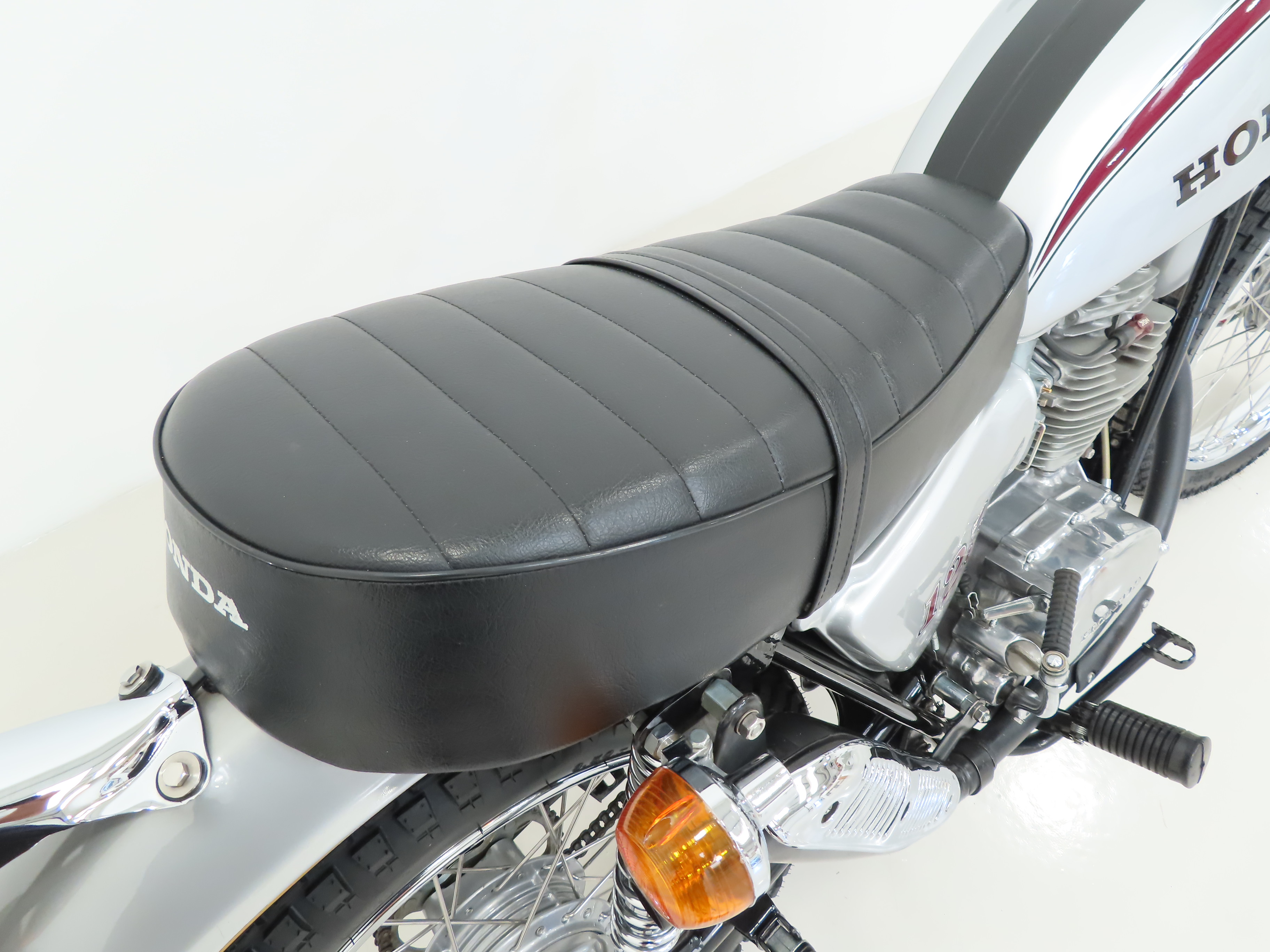 An all alloy 4-stroke single cylinder OHC 2 valve engine of 122cc produces 12hp at 7900rpm and performs with typical Honda precision. The engine casing is very clean with many carefully refurbished components to add to the overall fabulous appearance. The unique upswept muffler has some previous evidence of repairs but is very presentable and much preferred to aftermarket items. Both the engine number stamping and stock VIN match the V5 document and are in the correct range. The 5-speed transmission operates perfectly with a light clutch action and working neutral indicator. Great fun and very useable.