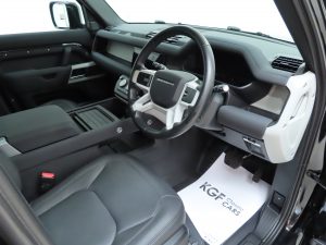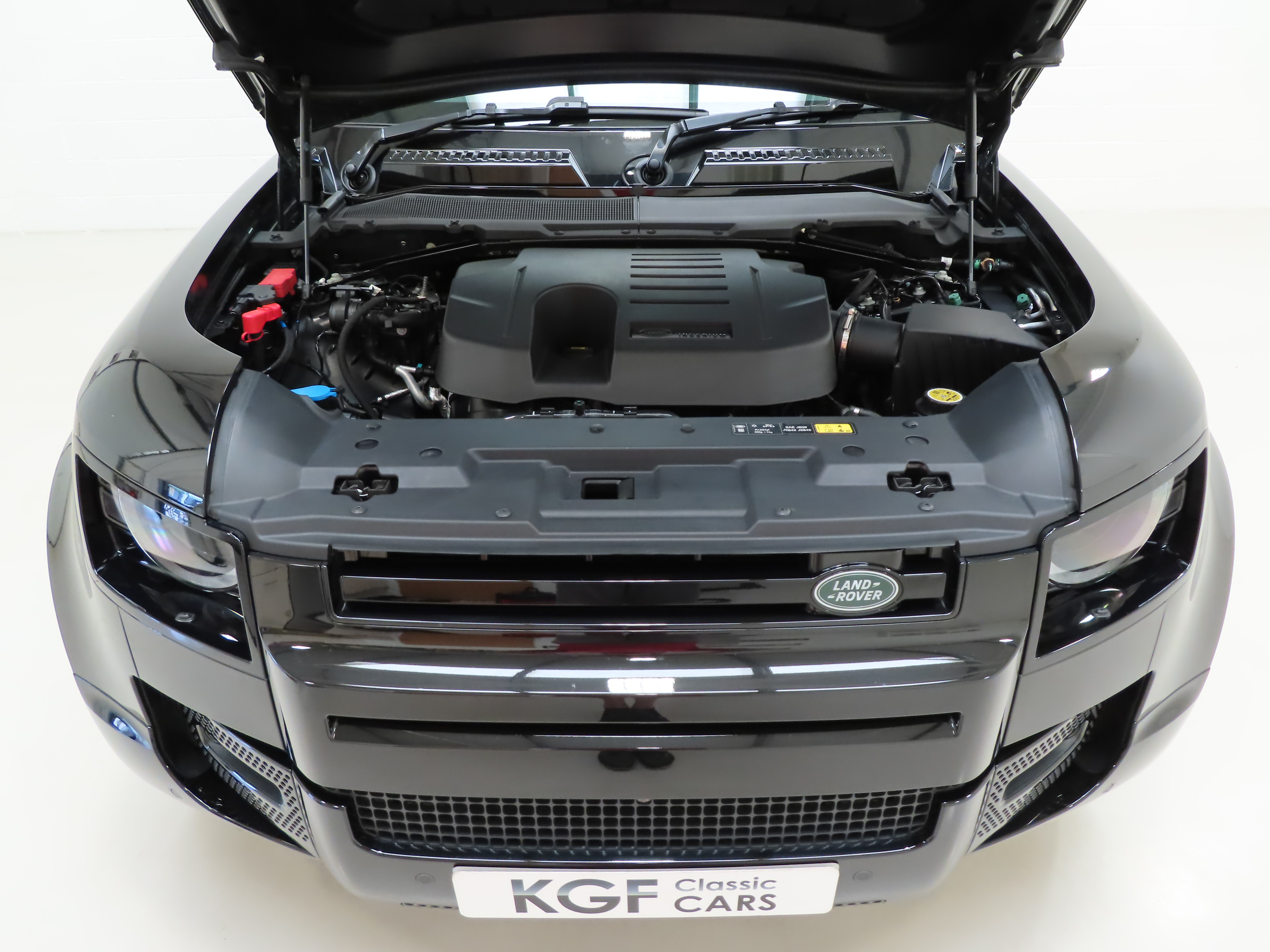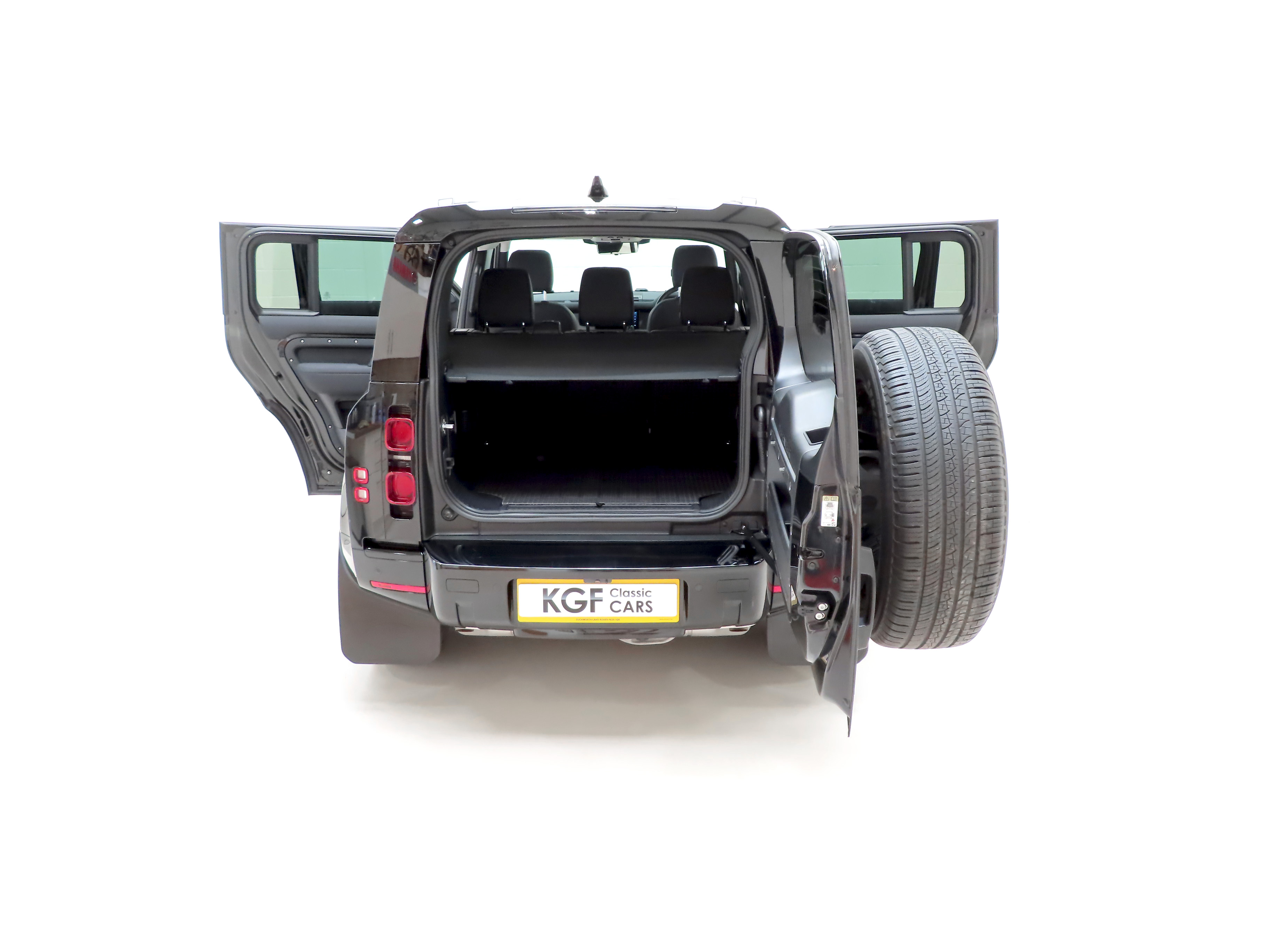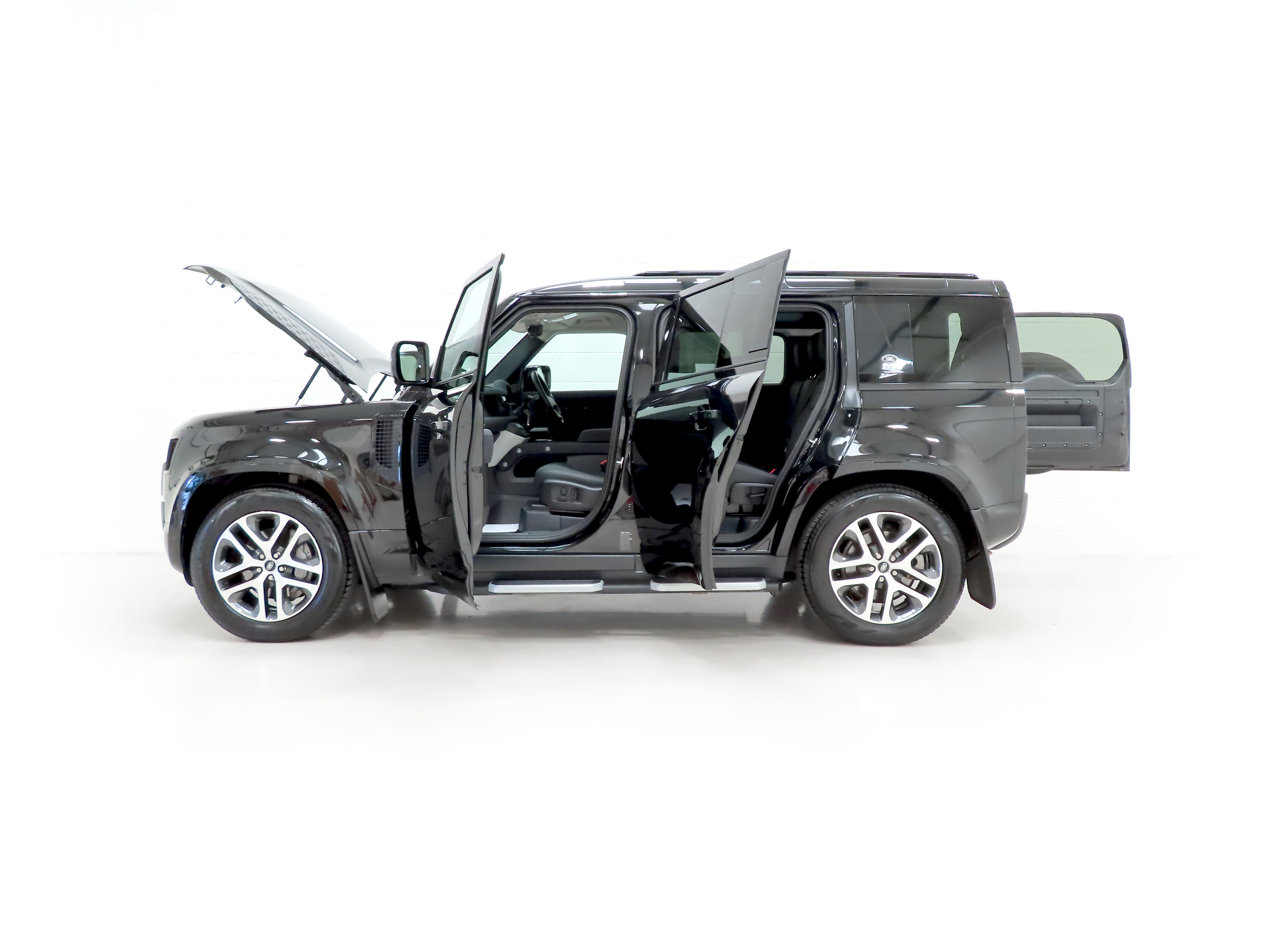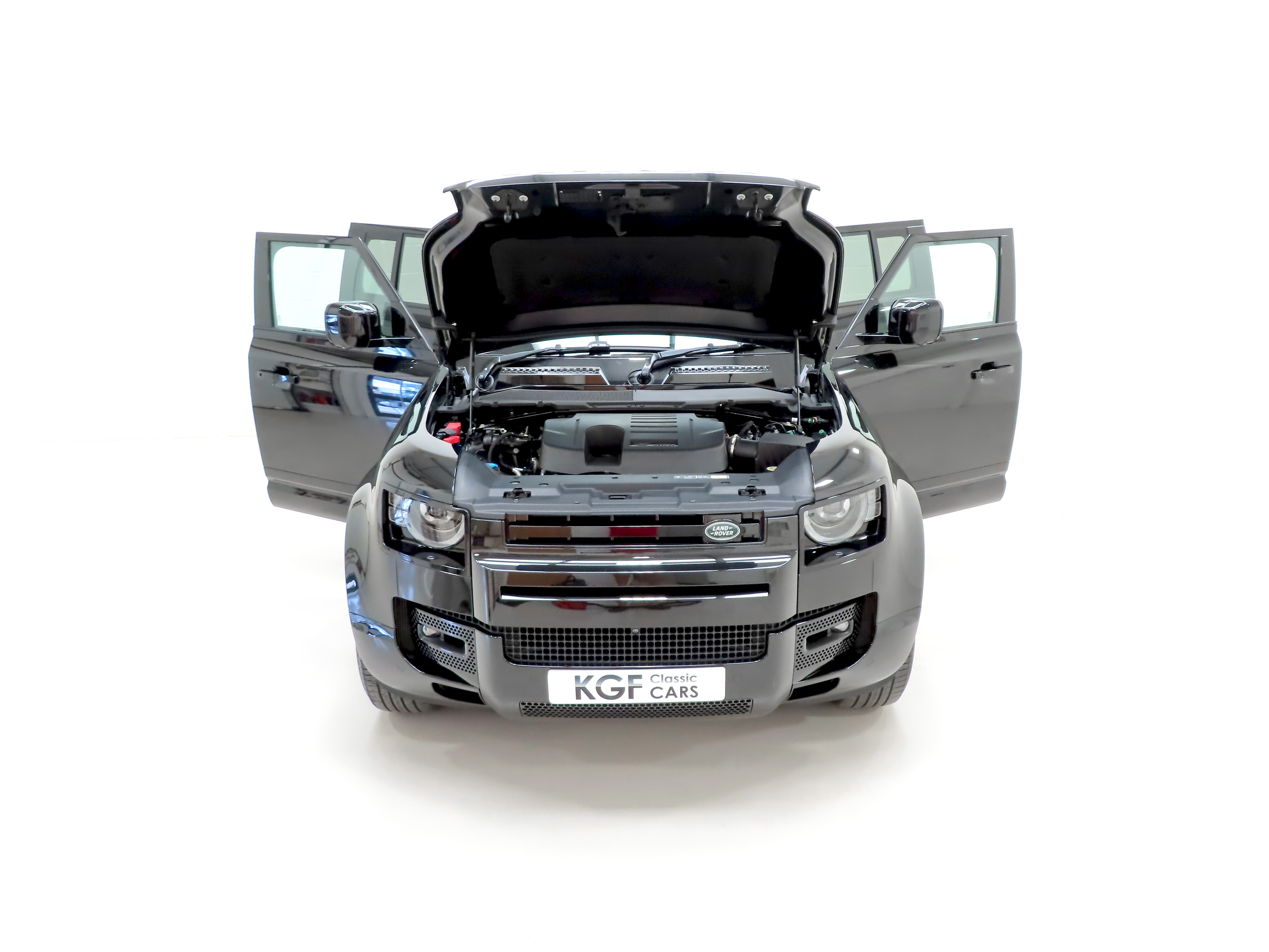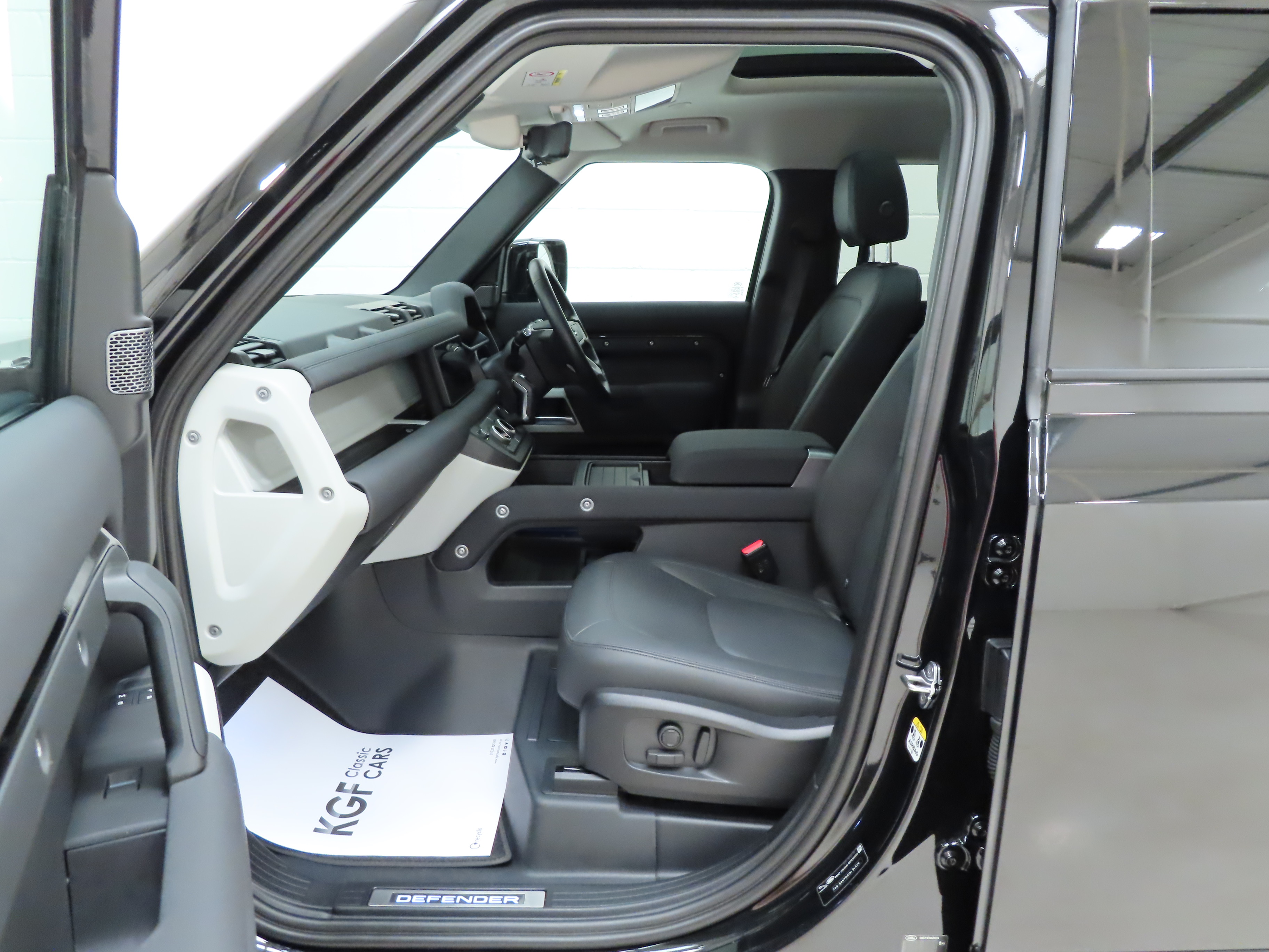 A huge specification interior in which above standard XS Edition specification, the rare Family Pack includes the seven-seat option as well as other desirable features and the owner also specified the Cold Climate Pack. To be expected, the interior condition is immaculate throughout and all features, infotainment systems and displays operate seamlessly. Ebony Grained leather seat facings with Ebony interior is pristine as is the Light Oyster Morzine headlining with matching panoramic one-touch electric roof blind. The durable rubber flooring remains protected by genuine Land Rover Defender over mats. A significant detraction from the traditional defender with every comfort and convenience feature you could desire, yet still holding the feel of a tough and utilitarian serious off-roader with a commanding view.