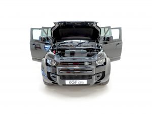 All-wheel drive with twin-speed transfer box, Hill Decent Control, sliding panoramic roof, floating pillars, Alpine lights, side-opening tailgate, externally mounted full size spare, black roof rails, Matrix LED headlight and LED rear lights, durable rubber flooring, interior exposed structural surfaces, Infotainment system with expansive 11,4” touchscreen, Meridian Audio System, six airbags, emergency braking, cruise control and speed limiter, front centre console refrigerator compartment, Lane Keep Assist, Blind Spot Assist Pack, Traffic Sign Recognition and Adaptive Speed limiter, 3D surround camera. Factory options; Family Pack; Consisting of 5+2 seating configuration giving 7 seat capacity, three-zone climate control, air quality sensor, cabin air ionisation. Cold Climate Pack; Heating to steering wheel, heated headlight Powerwash and screen washers. Electronic Active Differential with Torque Vectoring by Braking, electrically deployable tow bar, Secure Tracker Pro (12-month subscription).