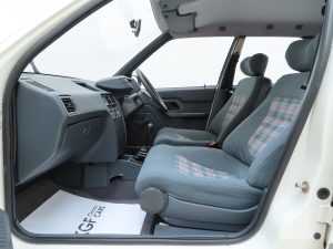 Typical Gallic soft furnishings and sumptuous comfort are found in this brilliant BX. The Chequered Cloth upholstery is beautifully clean with no rips or holes and only slight stretching to the fabric on the front seats has occurred. The fascia, door cards, carpet and headlining are all in super condition although one astray lid is missing in the rear door armrest. All controls and functions operate perfectly including the optional Sharp AN55 stereo cassette. The door and boot apertures are very clean with the factory stencilled codes intact and some touched in paintwork marks. A refreshing contrast to today’s firm seats, this plush and smooth-riding BX is an ergonomic indulgence.