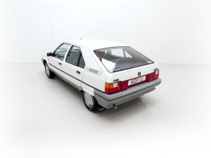 The boxy shape of this iconic Citroen BX, penned by Bertone, is the ultimate 80’s throwback and represents a time when Citroen just did everything different. The BX 14 Series featured a range of three cars with the 1.4 petrol engine, this Leader model being mid-specification. Finished in Citroen Blanc, (Code EWT), the bodywork is beautifully straight with a superb unform finish. The lightweight plastic body panels are completely intact as is all trim, glass lights and badges. The first owner requested the supplying dealer to remove the Leader decals from the sides as confirmed on the vehicle order form still in the history file. Some light imperfections to the rear bumper are visible along with some touched-in marks. Supplying dealer branded number plates, tax disc holder and Total rear screen sticker adds a lovely touch of authenticity. A marvellous slice of Citroen quirkiness!