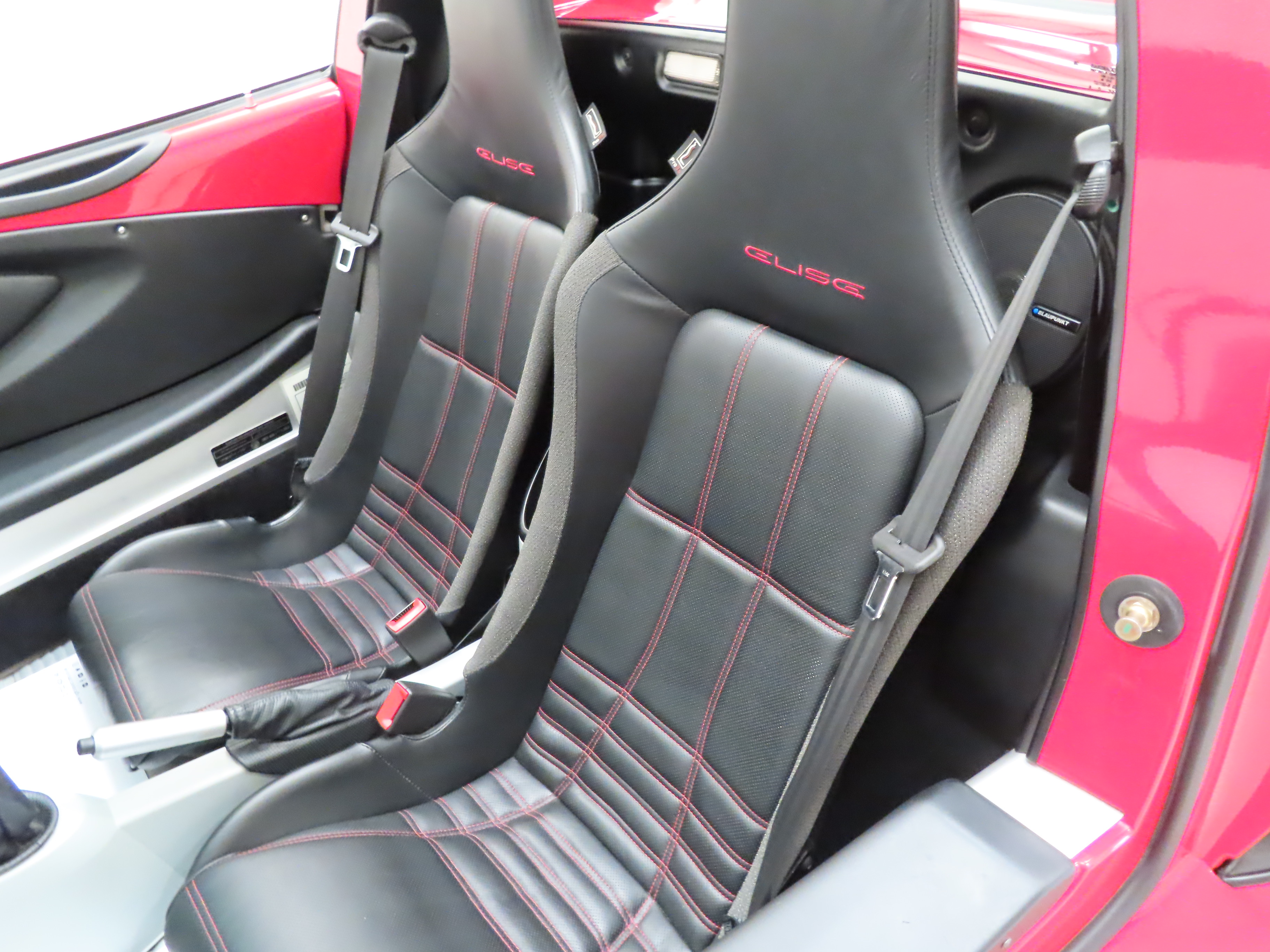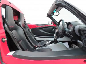 Engineering excellence is built into the interior with the aim to save weight and provide ultimate driver focused enjoyment with both the Sport Pack and Touring Pack included. Exclusivity with the unique leather ProBax sports seats add to the occasion with matching red stitching and Elise logo embossed in the headrest in red. The exposed aluminium chassis and Elise carpet mats are super clean and unworn. The wide inner-sills are unmarked and all controls function correctly including the ice cold air conditioning! An interior Colin Chapman would be proud of!
