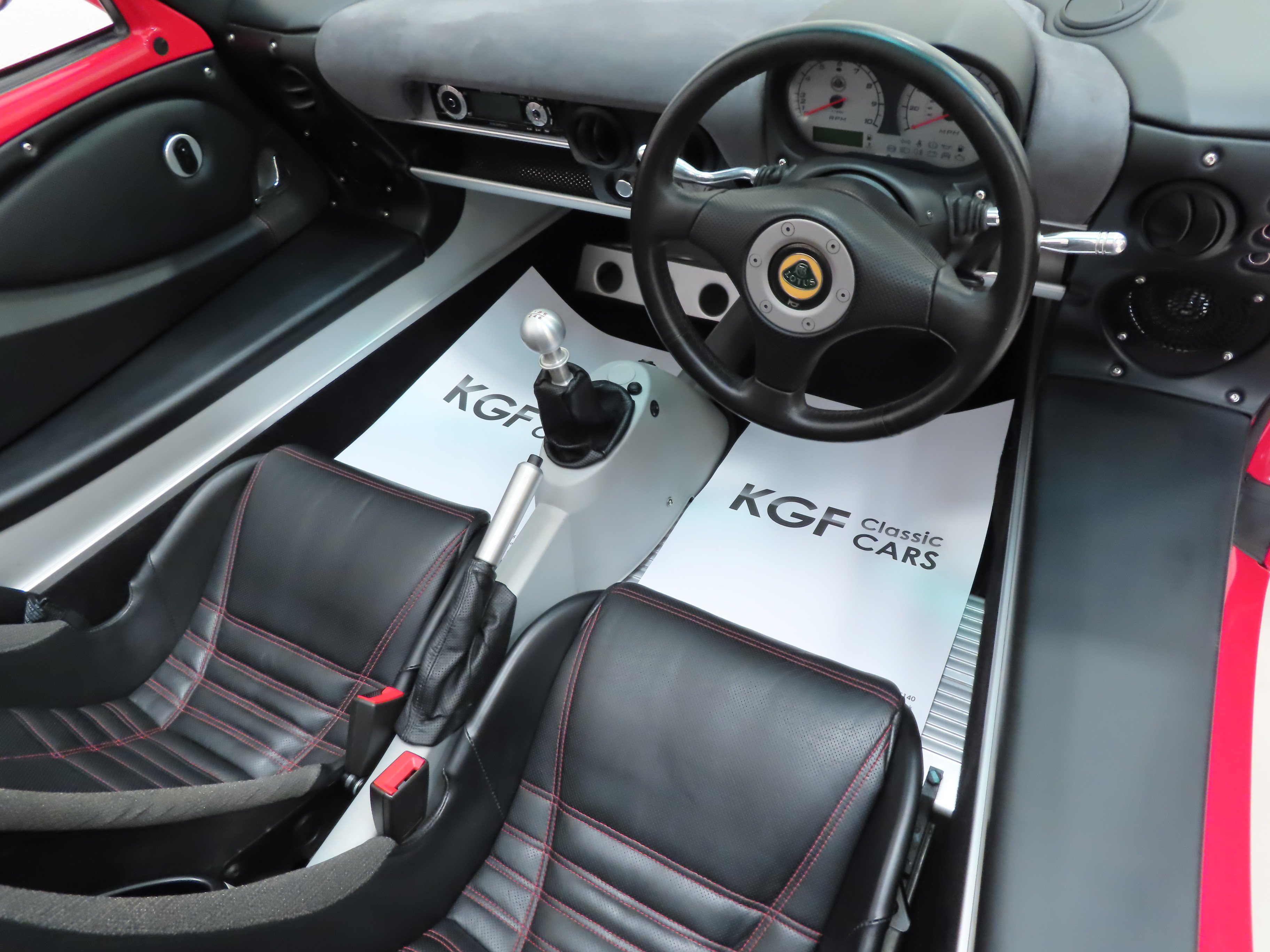 The engine is the heart and soul of the car – four cylinders providing 189 bhp at a dizzy 7800rpm. The advanced design uses variable valve timing and lift (VVTL-i) to provide high power without sacrificing economy. The engine bay is spotlessly clean with the desirable sports exhaust fitted to enhance the adrenalin-fuelled experience. A close ratio 6-speed gearbox compliments the engine’s character to ensure lightning responses and acceleration from 0 to 60mph in just 4.9 seconds and a top speed of 150mph. Absolute full Lotus service history ensures optimal performance and peace of mind.