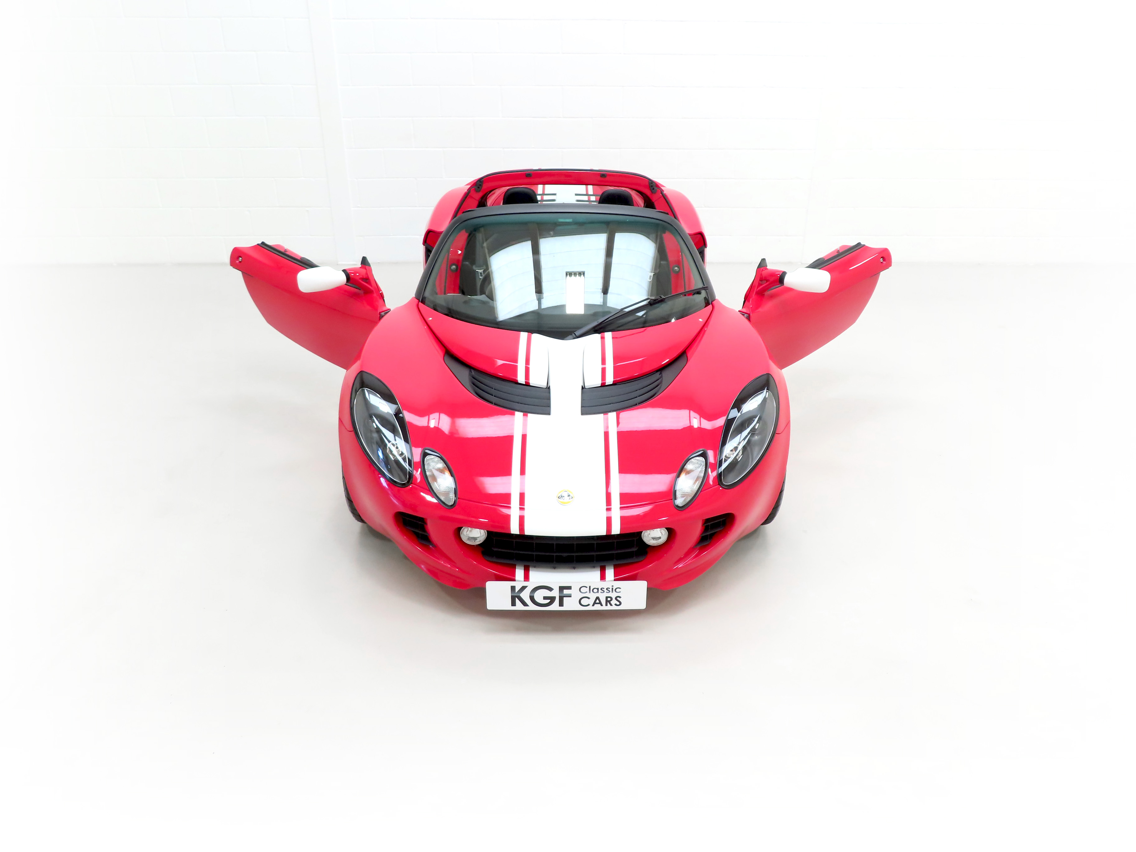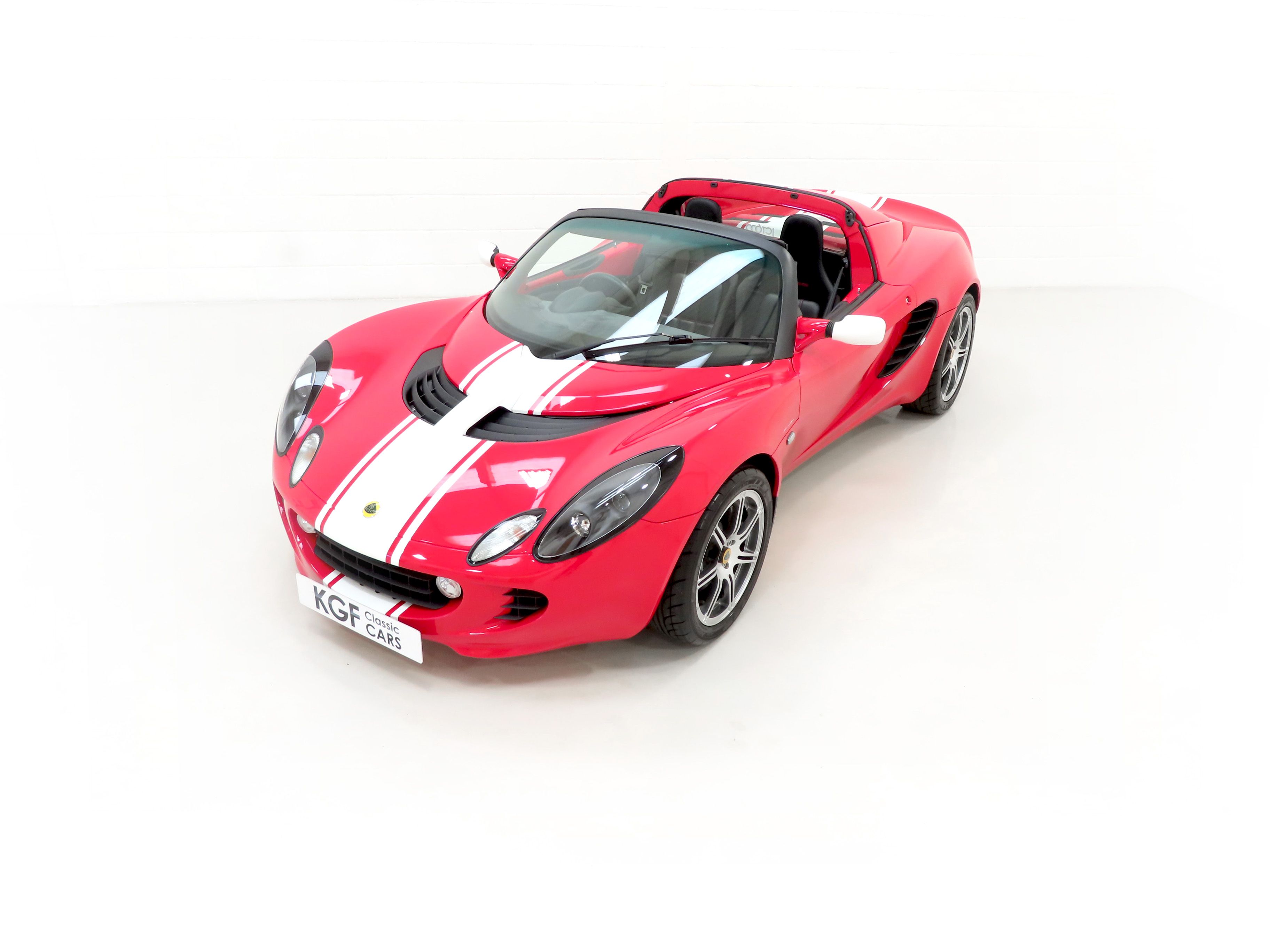This rare Lotus Elise Sports Racer is one of only 100 UK examples finished in just two colours, Ardent Red and Nightfall Blue, 50 of each. This example being No 72 in striking solid Ardent Red, (Code C94). A special edition model created to hark back to the classic racing days of the 1960’s the white painted stripe, door mirrors and Sports Racer decals instantly sets this model apart from the usual offerings. Pampered and garaged stored under a dust cover on a genuine approved Lotus battery conditioner, this example has only ever seen fair weather use by its long-term enthusiast owner since 2007. The muscular and aggressive lines are beautifully proportioned with only a few tiny touched in stone chips. The aluminium underside is bright and polished and even the fragile underside jacking stickers remain attached! Wheel arch apertures are immaculate and the hard top is unmarked with optional stowage bag included. This is a highly collectable Lotus Elise.
