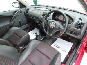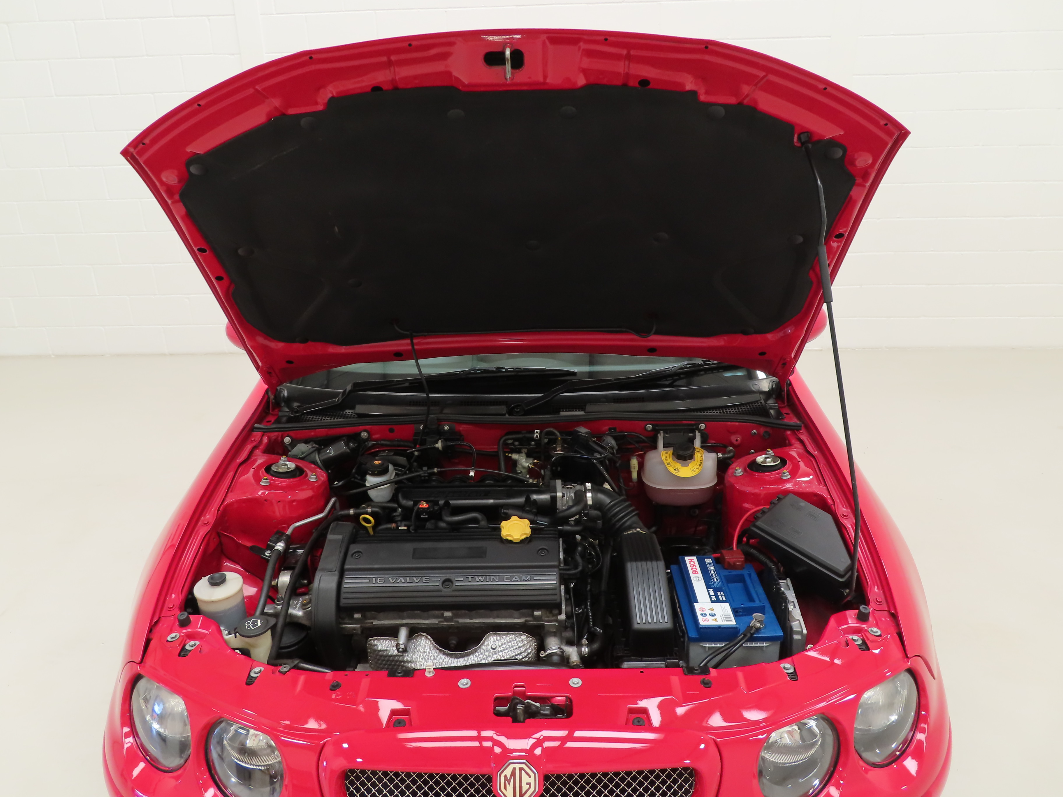 A beautifully clean and unspoilt interior with noticeable sporting appeal, a far cry from its traditional Rover origins! The figure-hugging part leather sports seats are a factory specified option, (Code WSP), and are in superb condition with none of the usual bolster wear as are the matching door cards. The sports steering wheel proudly displays the MG emblem and the carbon effect inserts remind the driver of the sporting credentials. The headlining and carpets are immaculate. All equipment and trim are factory original, seamless in operation including the original Kenwood stereo system. The boot area and parcel shelf are super clean and the space saving spare wheel and jack remain. A beautifully clean and unspoilt interior.