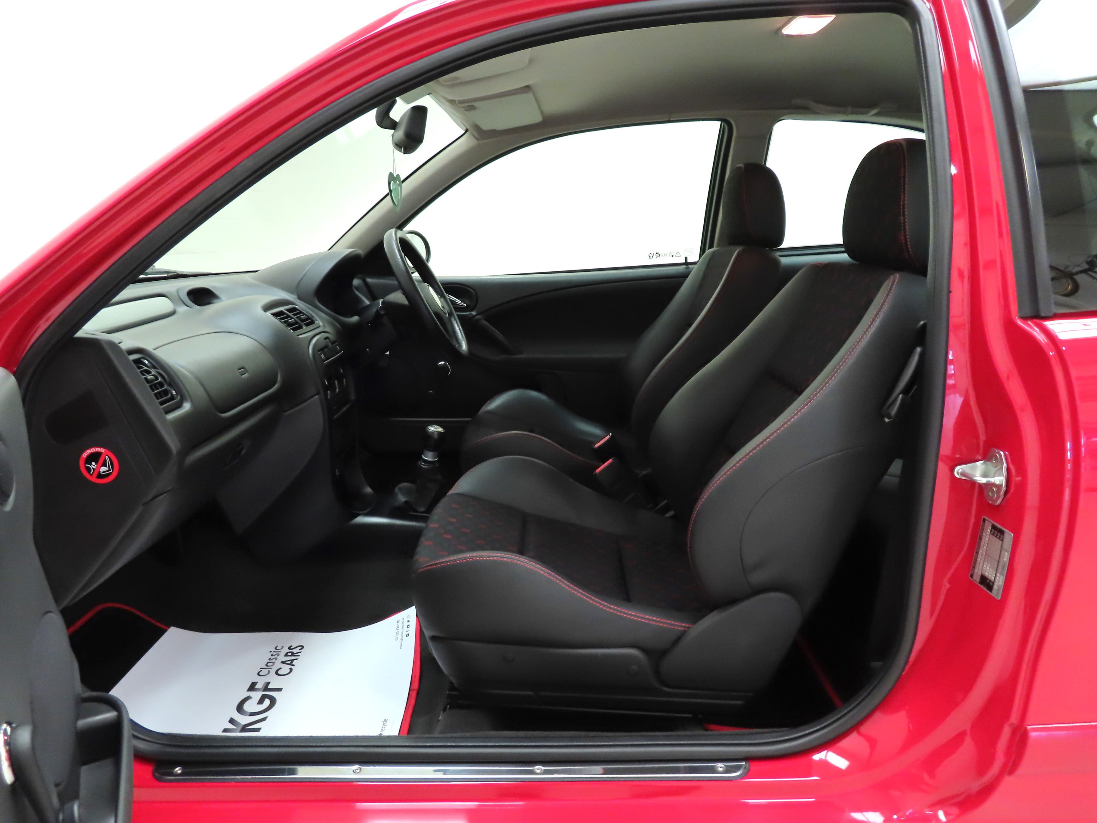Sports suspension, sports precision handling, 16-inch Hairpin alloy wheels, wide bore single bright exhaust, front and rear bib spoilers, body-coloured aerodynamic rear spoiler, body-coloured bumper inserts and side strips, bright mesh main and lower front grilles, styled twin halogen headlamps, MG steering wheel, technical finish interior features, sports dials, driver and passenger airbags, alarm/immobiliser, bright door sill tread strips, headlamp road-levelling, rear wash/wipe, digital clock, 60/40 split folding rear seat. Factory Options; Part leather sports seats.