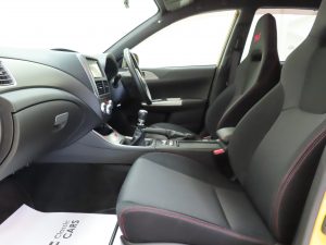 This Limited-Edition Subaru Impreza WRX STI Spec C is finished in rare and exclusive Sunrise Yellow, (Code C2Z). The gleaming paintwork boasts a vibrant detailed finish and helps enhance all the scoops and air intakes. A small ding to the lower driver’s door and two minuscule dings to the bonnet are visible and noteworthy imperfections. All trim sections, bumpers, scoops and special WRX STI Spec C features remain standard and originality seekers will be pleased to see factory stickers intact within the spotless door apertures. The aluminium bonnet and Laminar lighter weight window glass all remain fitted. Very special.