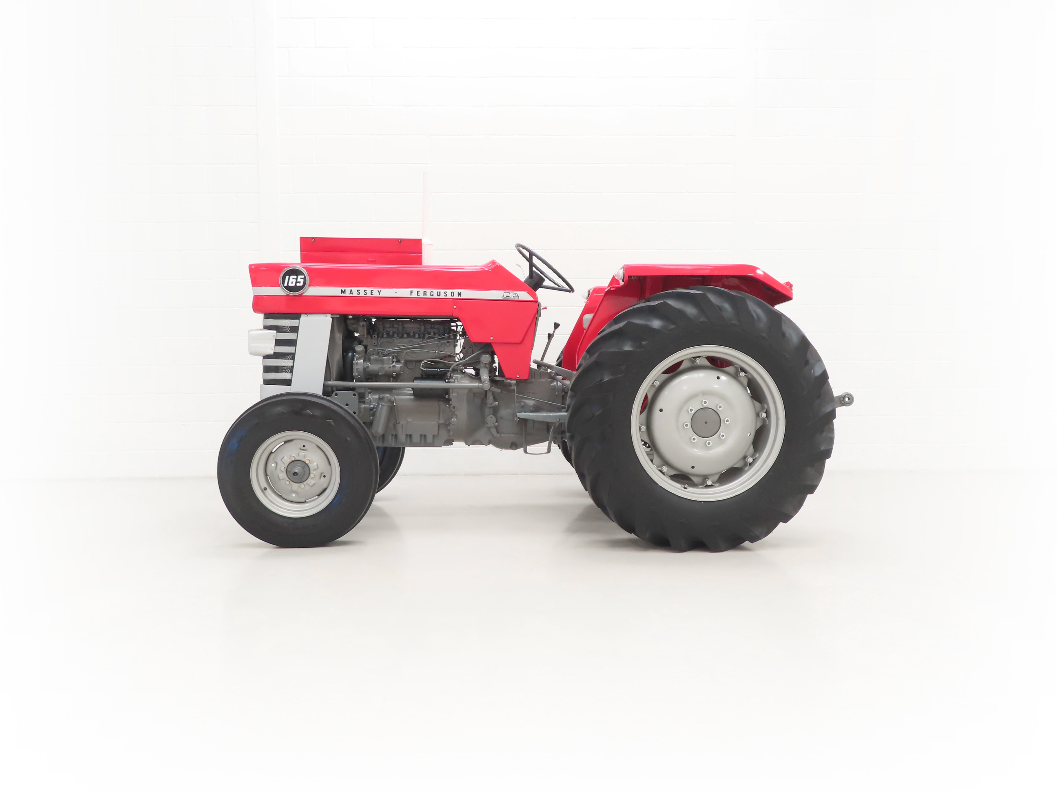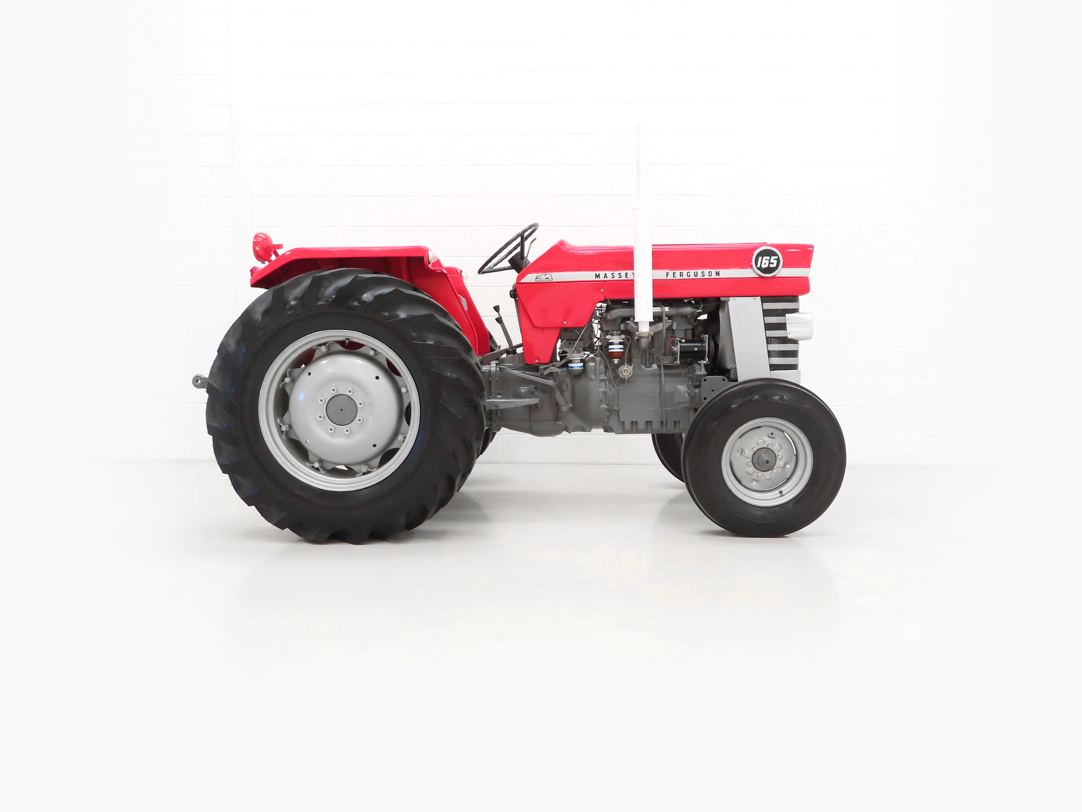 Founded in 1847 in Ontario, Canada by Daniel Massey, it was not until 1953 that the then named Massey-Harris merged with The Ferguson Company, founded by Harry Ferguson to become Massey-Harris Ferguson. The name was simplified in 1958 to Massey Ferguson to which it remains known today. Widely regarded to have revolutionised agriculture in the western world in the 20th century, it was the collaboration with and subsequent buy-out of Frank Perkins Ltd that later produced the Massey Ferguson 100 Series. The Massey Ferguson 165 (MF165) is a row-crop tractor that was built in Massey Ferguson’s Detroit, Michigan plant in the USA from 1964 and was discontinued in 1975. It was the most popular tractor in the market during its time.