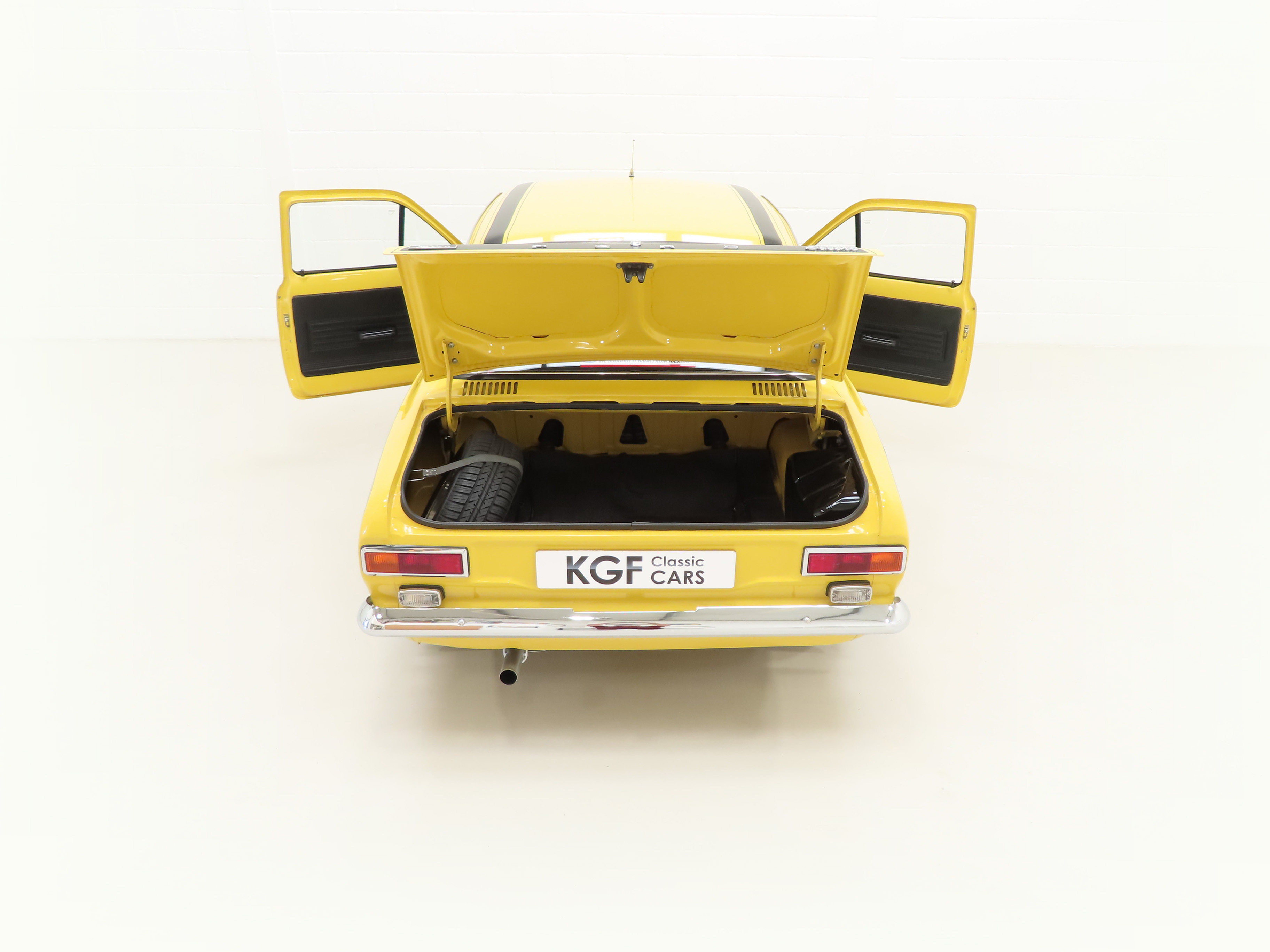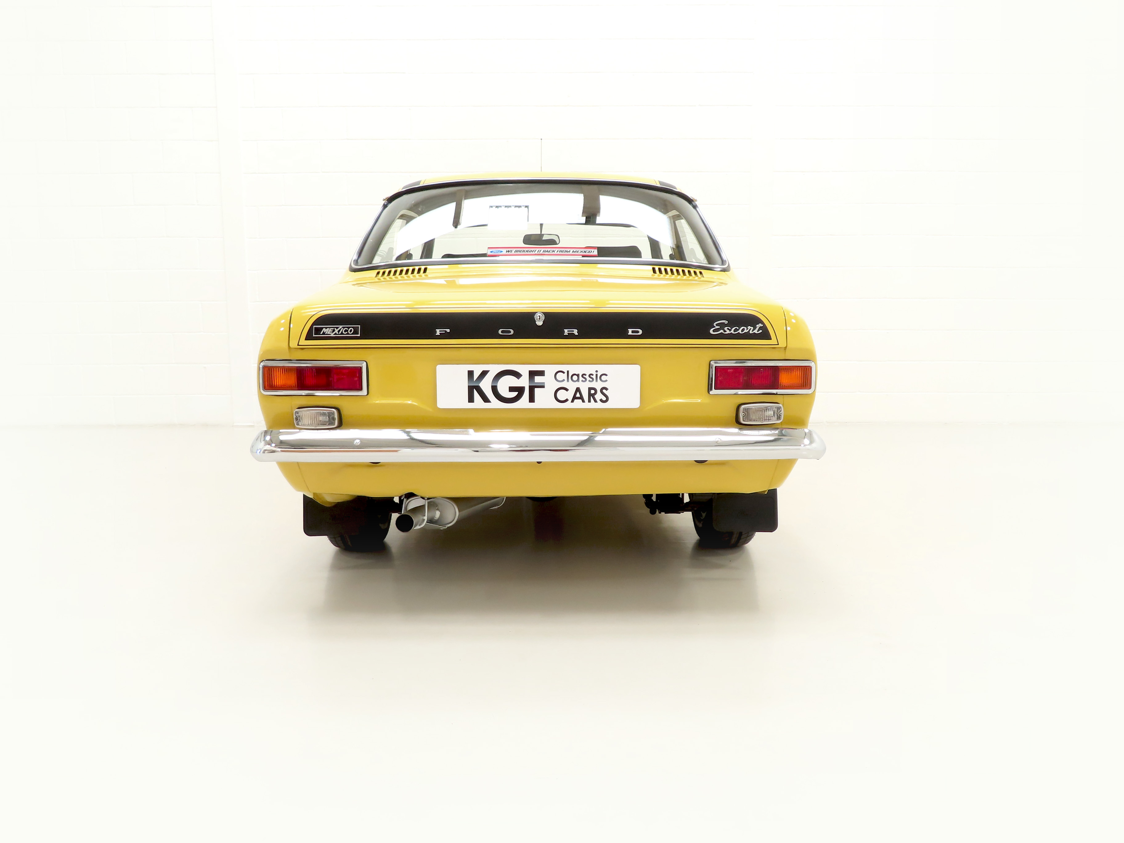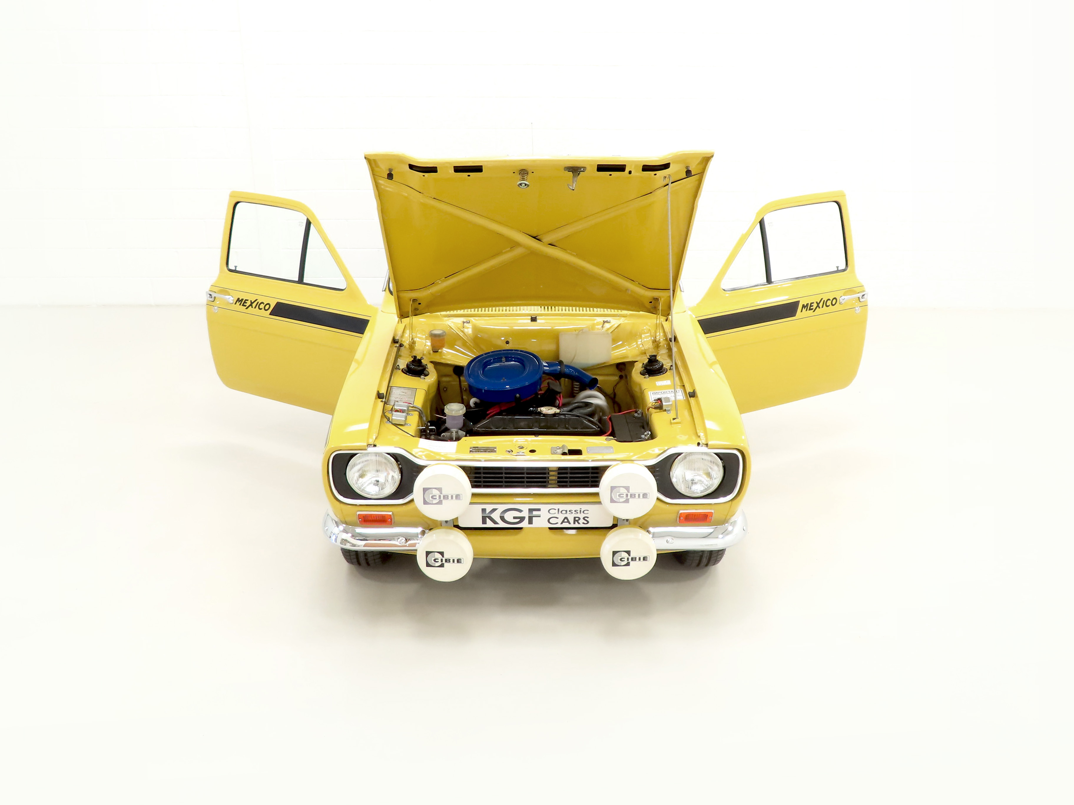 The road version of the rally winner and available only at your Ford Rallye Sport Centre was the draw of these special cars built at the Advanced Vehicle Operations (AVO) division. Finished in striking and desirable Daytona Yellow, (Code T), exactly as it left the factory in 1974, this genuine Mexico is absolutely stunning. Incredible detailing extends to the underside for those wishing to enter the show circuit of this proven national concours winner. All the vital components and strengthened AVO workmanship are laid bare for all to see. The chrome, Triplex glass and badges are in immaculate order and the lens units are FoMoCo. The contrasting Mexico stripes and Cibie Oscar lights are in perfect condition cementing the iconic rally look. One for the discerning collector.