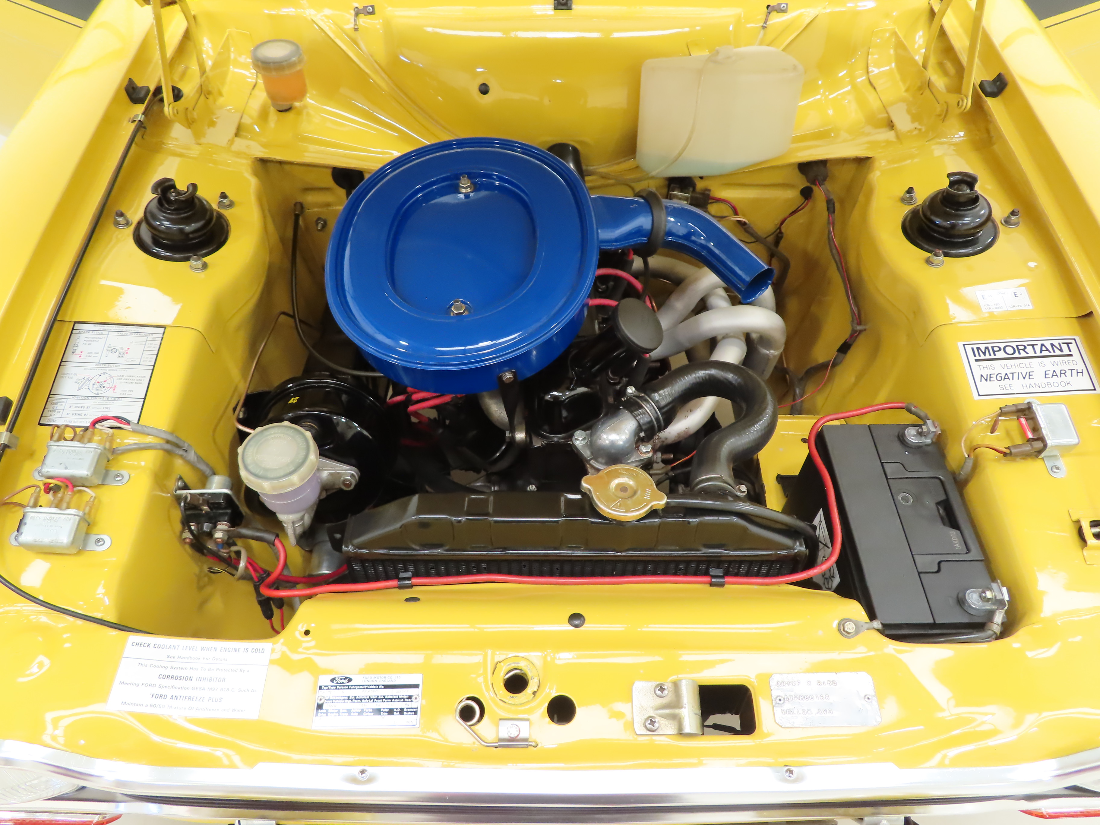 Spectators will stare wide-eyed in amazement under the bonnet of this iconic Escort Mexico as it is so clean, witnessed by all the awards! The four cylinder 1600 GT crossflow unit with the 711M block is quoted in the sales brochure at 86bhp to go up to a ton with little effort and hit sixty in under 11 seconds. The original AVO build plate remains fixed to the slam panel and even items such as the plug leads are Motorcraft items and period Lucas light relays remain fitted. The close ratio all-synchromesh 4-speed gearbox with heavy-duty three-rail shift ensures positive changes.