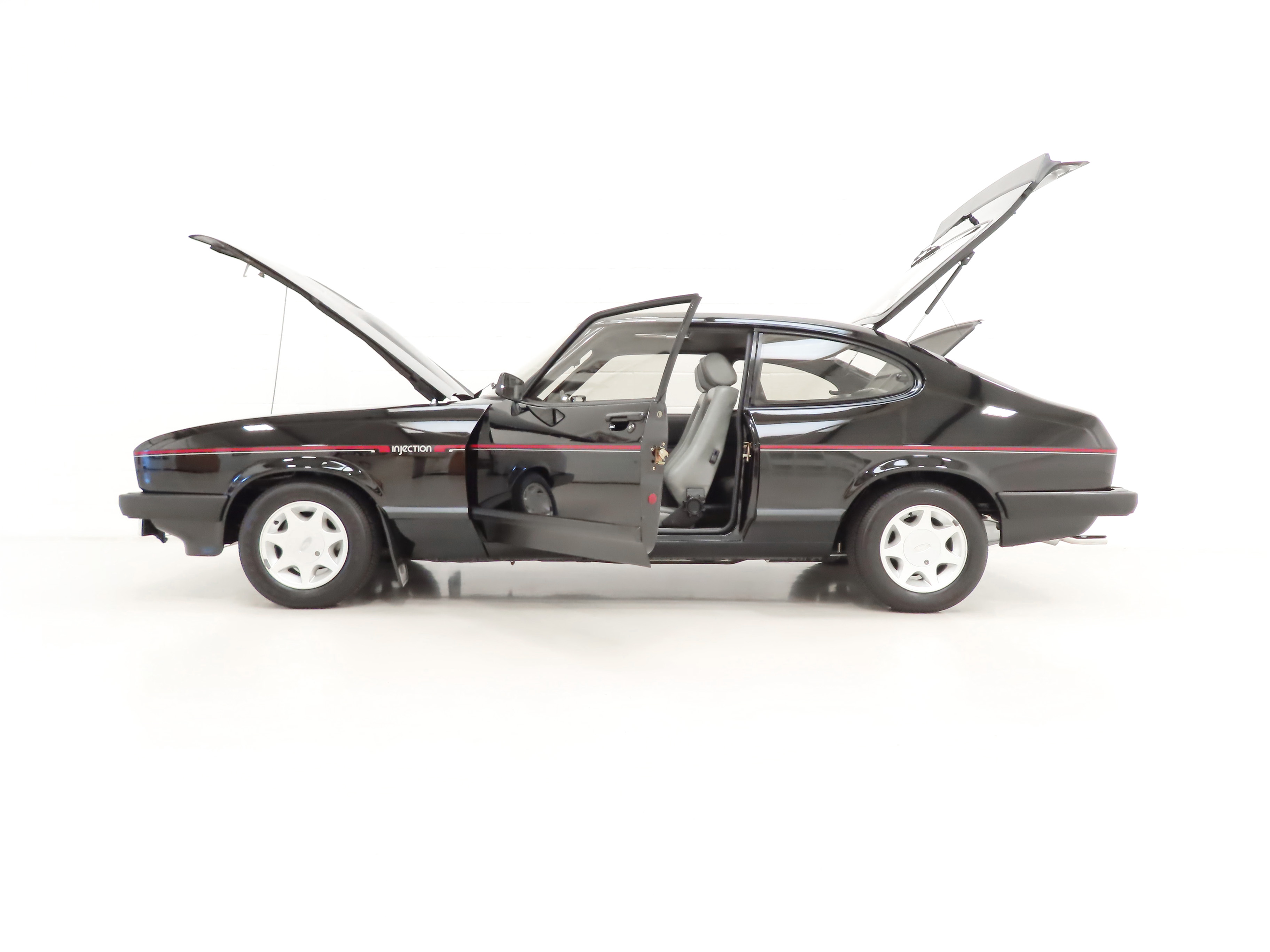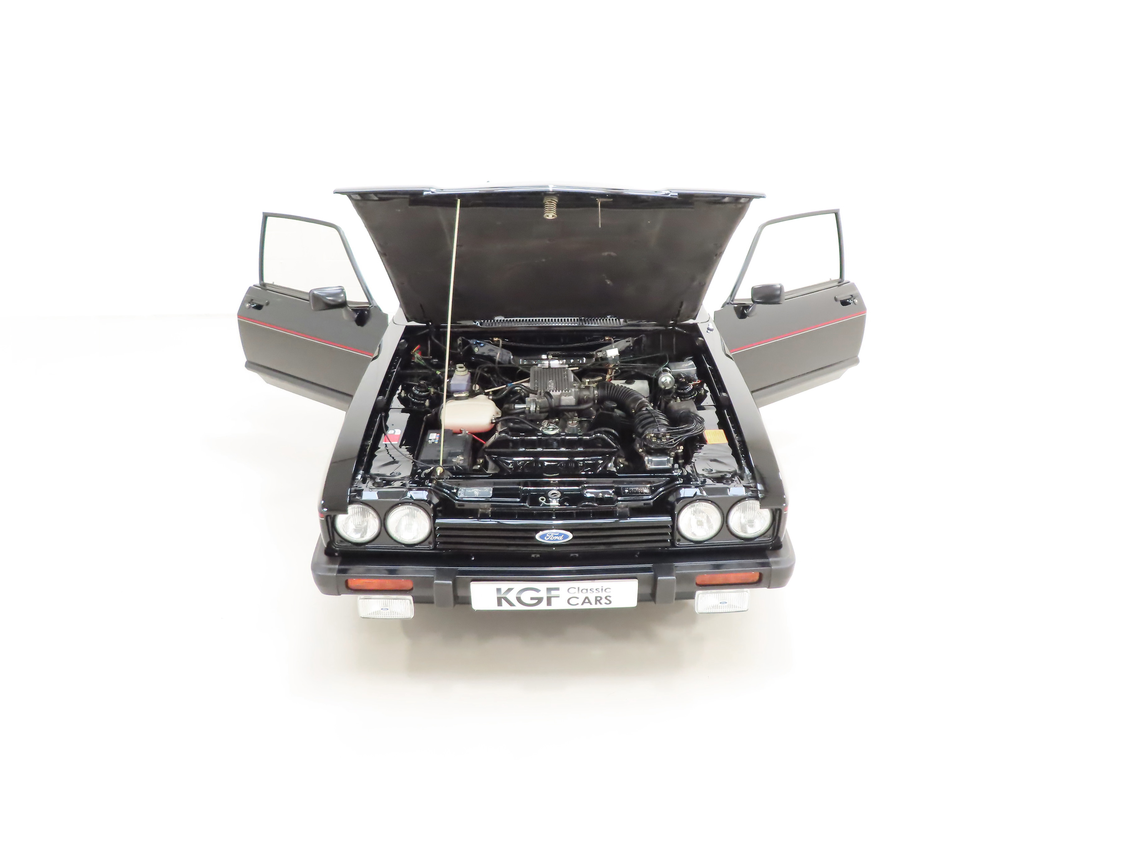 This unbelievable Ford Capri 2.8 Injection Special is exactly that, special! A genuine one owner example with a warranted 6,430 miles from new, this collector’s quality Capri is simply outstanding. Finished in factory optional Black, (Code A 9), the paintwork boasts a flawless finish throughout commensurate with the obvious ultra-low mileage credentials and total dedication to preservation from its one and only owner who writes in a letter in the history file that he has never washed the car, only polished it! The fully detailed underside portrays the days when the car attended shows, including a winning visit to Ford Fair whereby it rightly deserved its ‘Car of The Show’ prize. All dealer branding remains fitted including number plates, rear screen sticker and even the tax disc holder still showing the original 1985 disc! Be prepared to experience the thrill of buying the pinnacle of Ford Capri’s.