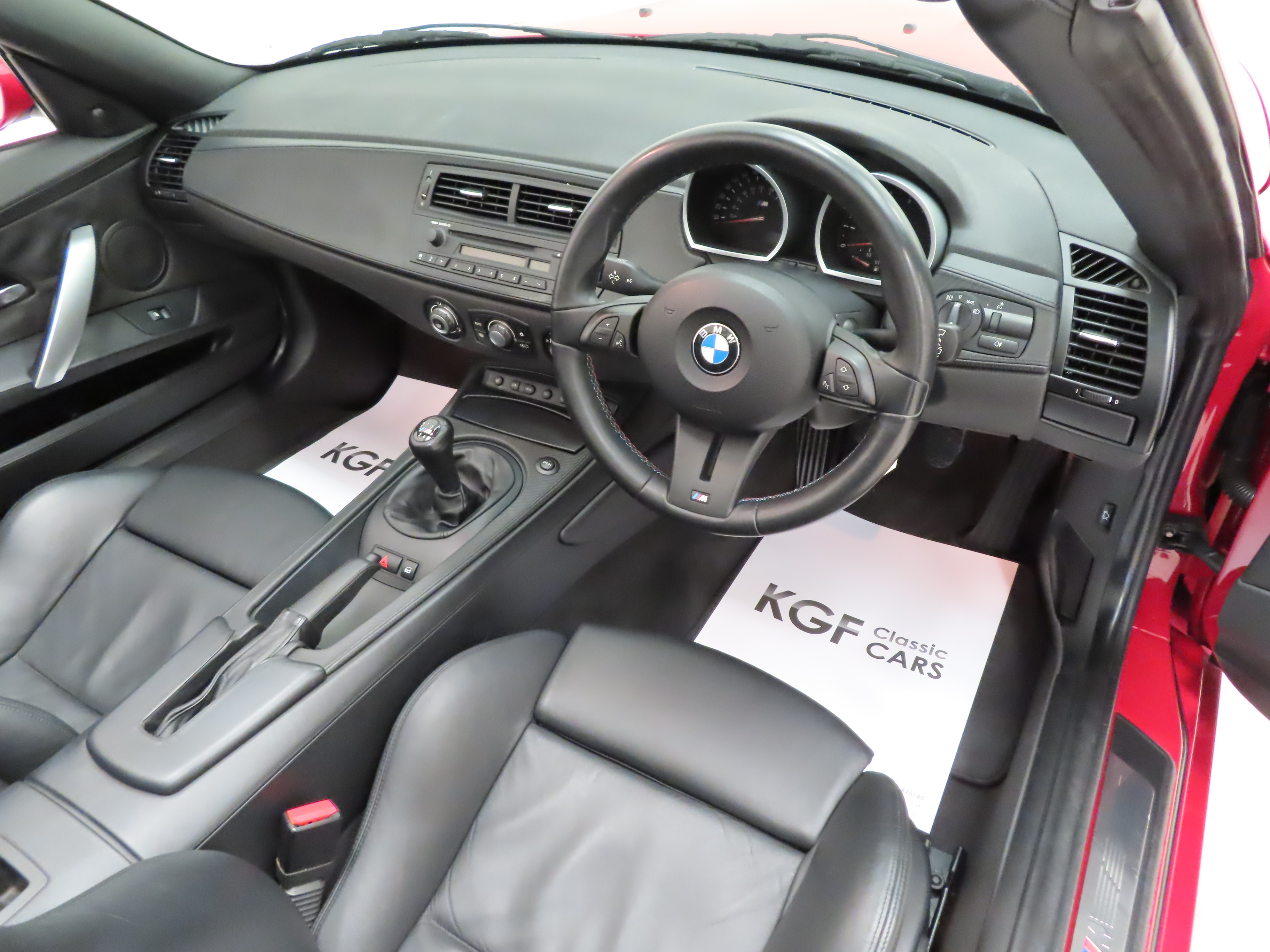 A stunning example in every respect, this Z4M performance example has covered just 29,349 miles from new with one owner. Finished in striking and signature brochure colour, Imola Red, (Code 405), the factory original paintwork boasts an exceptional deep uniform shine helped by the owner specifying expensive Gard X Protection treatment when the car was new. The pampered, enthusiast owned, low mileage and indoor stored existence is highly evident in the condition throughout with just a few tiny stone chips to the front and to the driver’s door edge. The hood and rear screen are in superb order. BMW Main Dealer number plates are fitted and the perfect unique M body styling and model designation badges leave in no doubt this is no ordinary Z4. Reflecting the cars dry usage/storage is the underside which is brilliantly clean. A highly prized and serious performance BMW, this is a car for the connoisseur.
